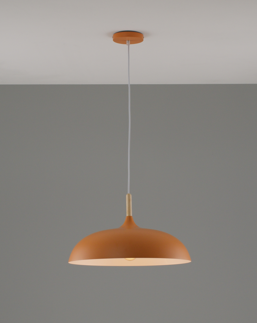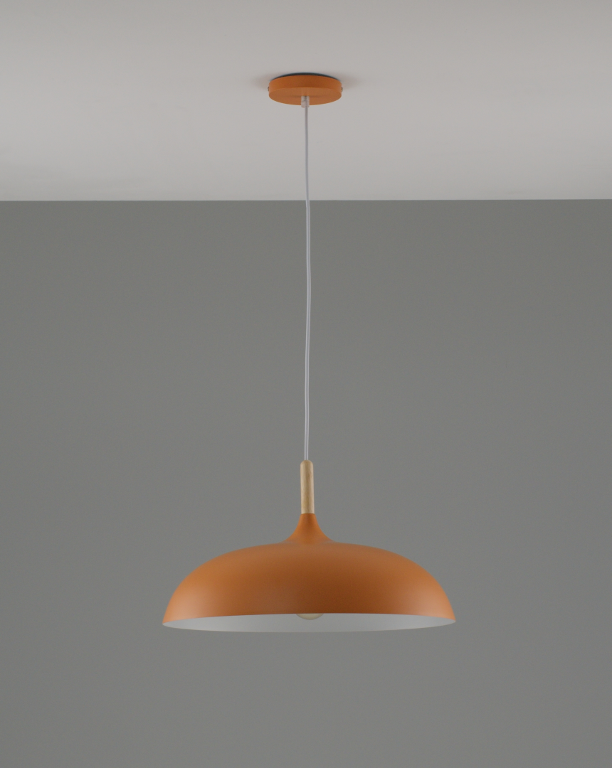 Подвесной светильник в стиле модерн с алюминиевым плафоном в оранжевом цвете и вставкой из дерева. Светильник Hygo станет ярким акцентом в интерьере и добавит ему сочных красок. Срок службы лампы до 50000 часов. При монтаже светильника, высоту можно отрегулировать.