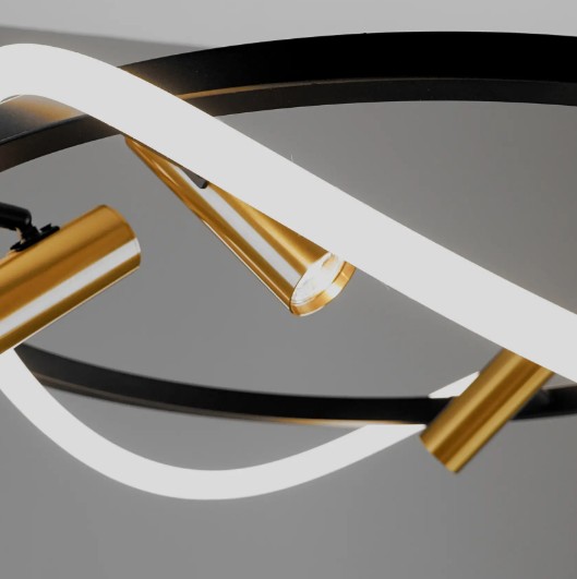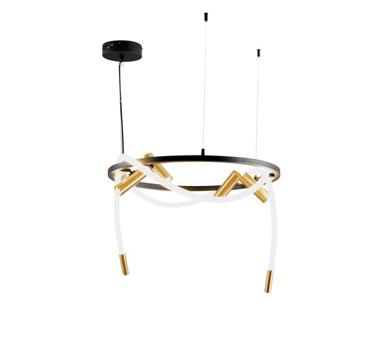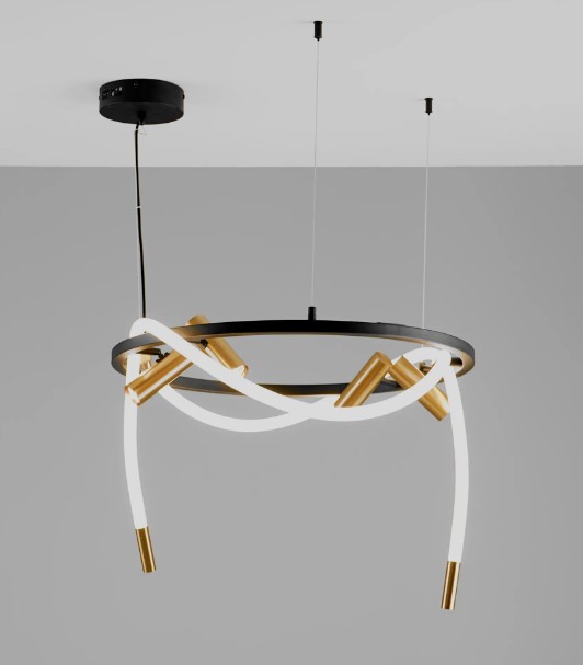 Запросить индивидуальное предложениеСовременный и лаконичный светильник серии True. Он состоит из светодиодной ленты мощностью 41 Вт и металлического каркаса черного цвета в форме круга. Лента имеет силиконовую оболочку для равномерного рассеивания света. Источник освещения свисает с разных сторон корпуса, создавая уникальный воздушный образ. Общая длина светильника - 60 см, что достаточно для освещения 15 м² комнаты. Высоту светильника можно регулировать с помощью подвесных тросов. Эта модель идеально дополнит современный интерьер.