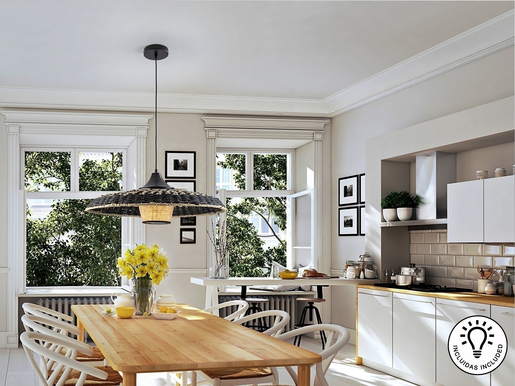 Fiji Подвесной светильник из бумаги и текстиля черный/натуральный