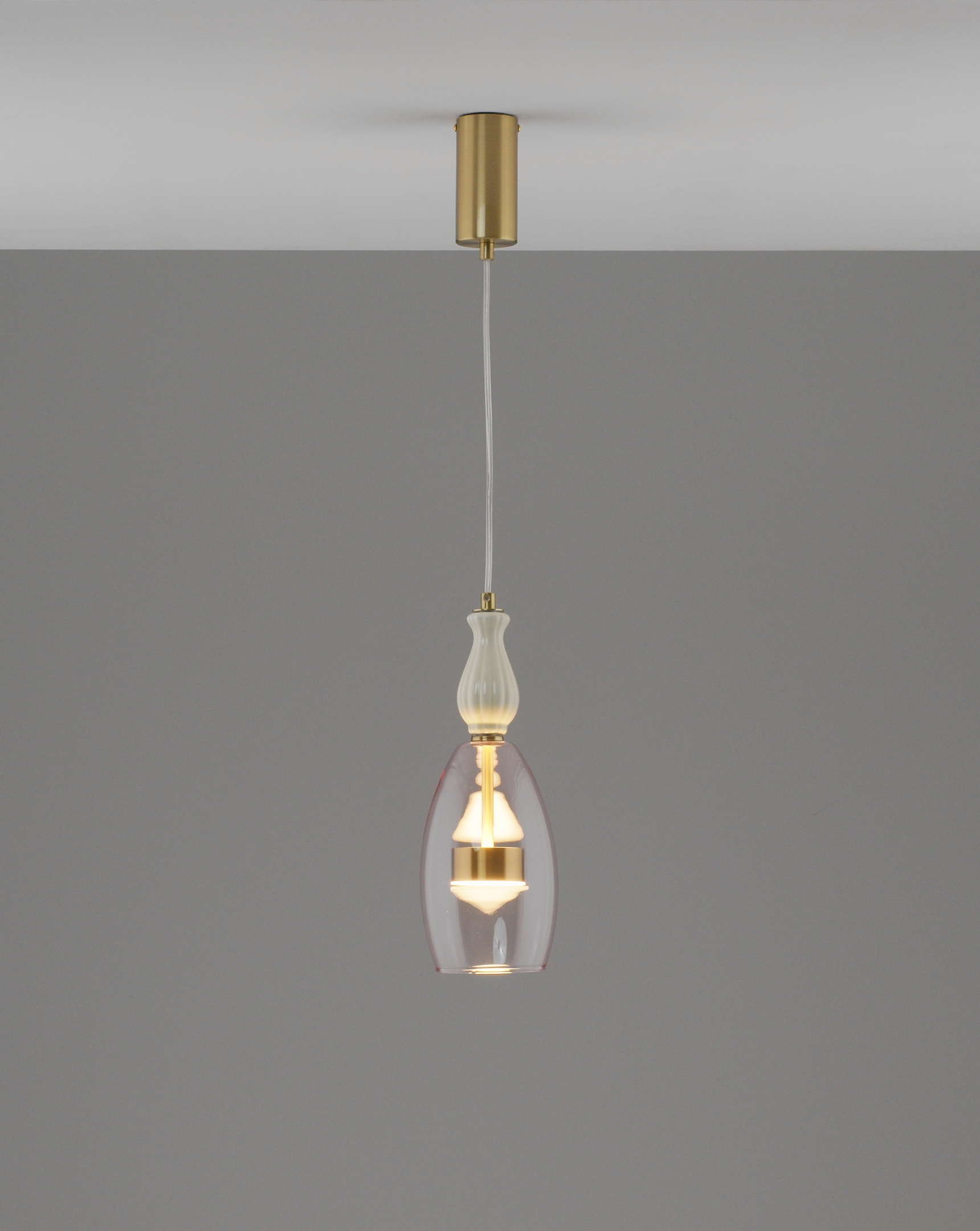 Материалы и цвета. Плафон выполнен из стекла, создающим мягкое освещение. Металлические элементы придают светильнику элегантность, а декоративные вставки в фигурных деталей делают его ярким интерьерным акцентом.