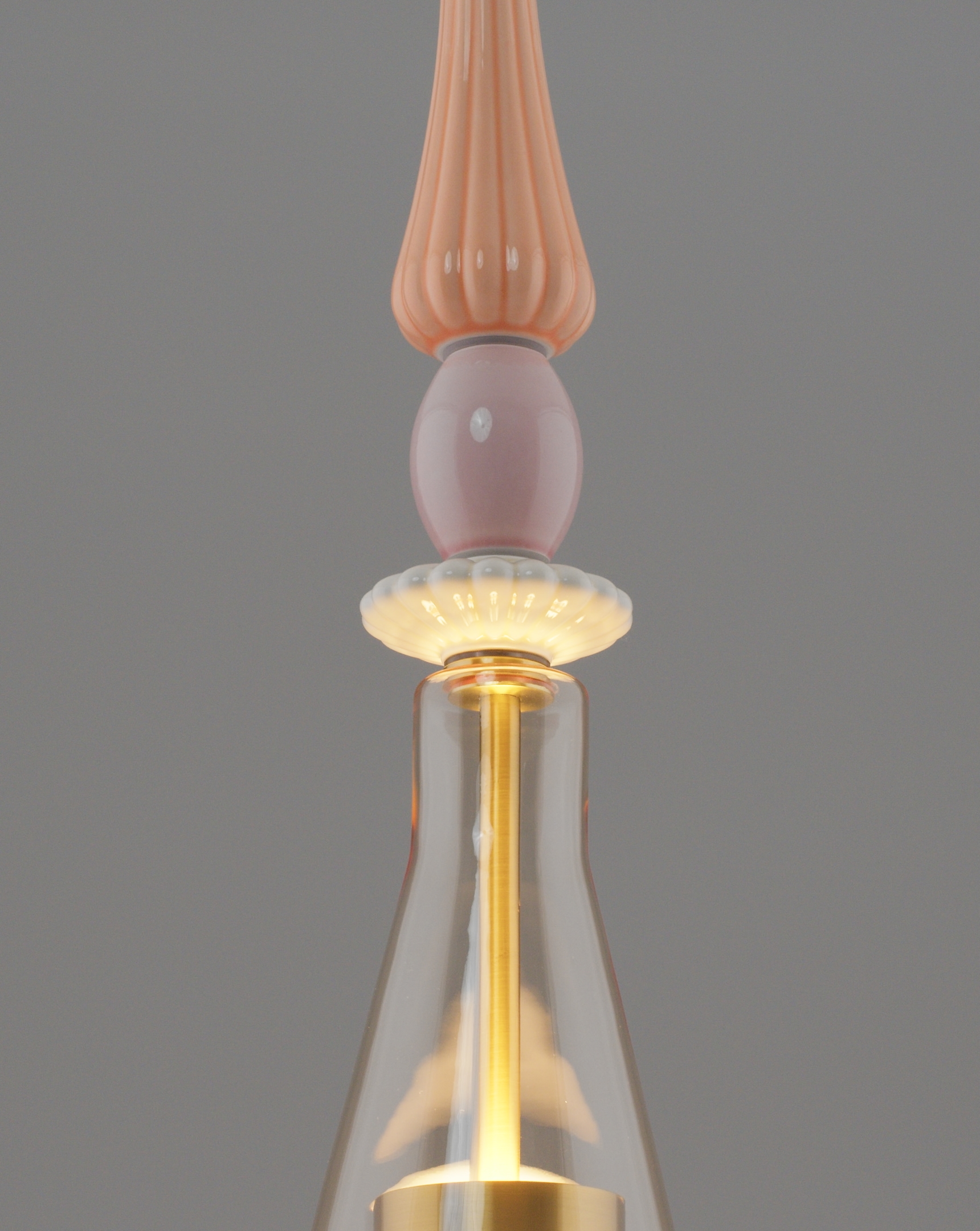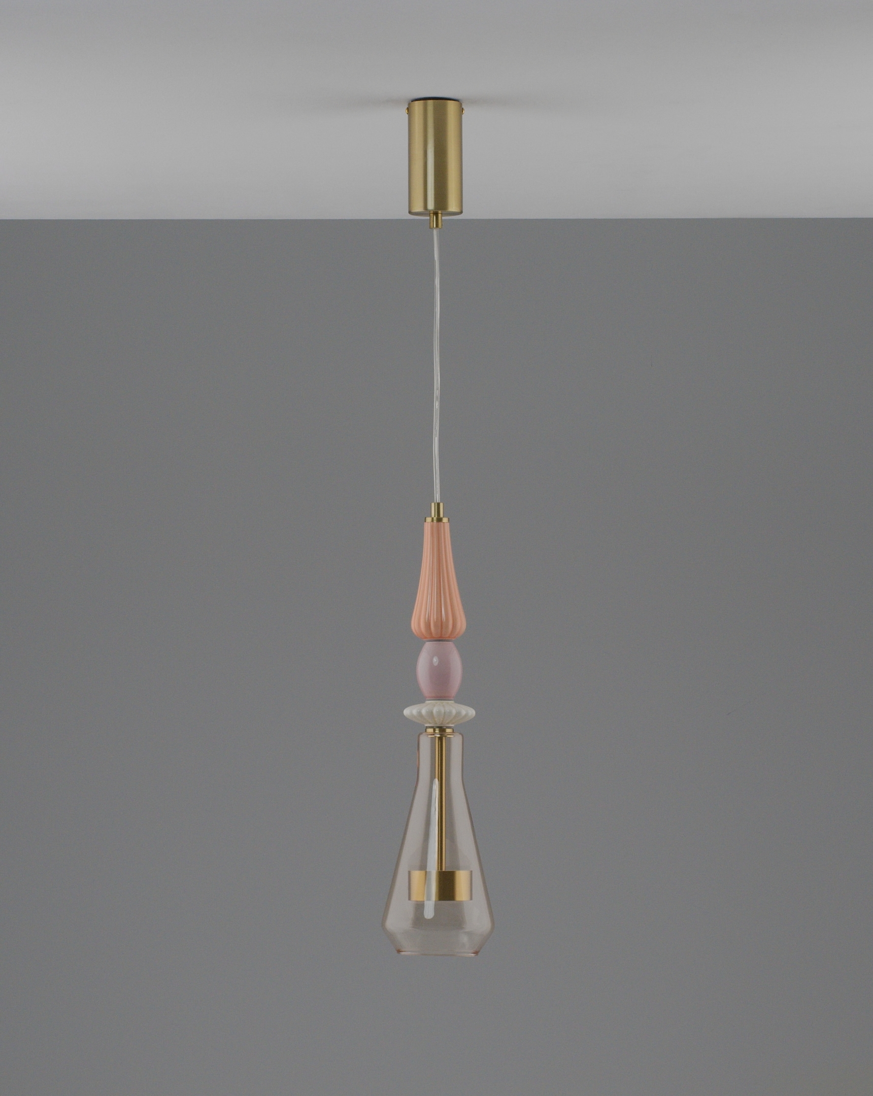 Материалы и цвета. Плафон выполнен из стекла, создающим мягкое освещение. Металлические элементы придают светильнику элегантность, а декоративные вставки в фигурных деталей делают его ярким интерьерным акцентом.