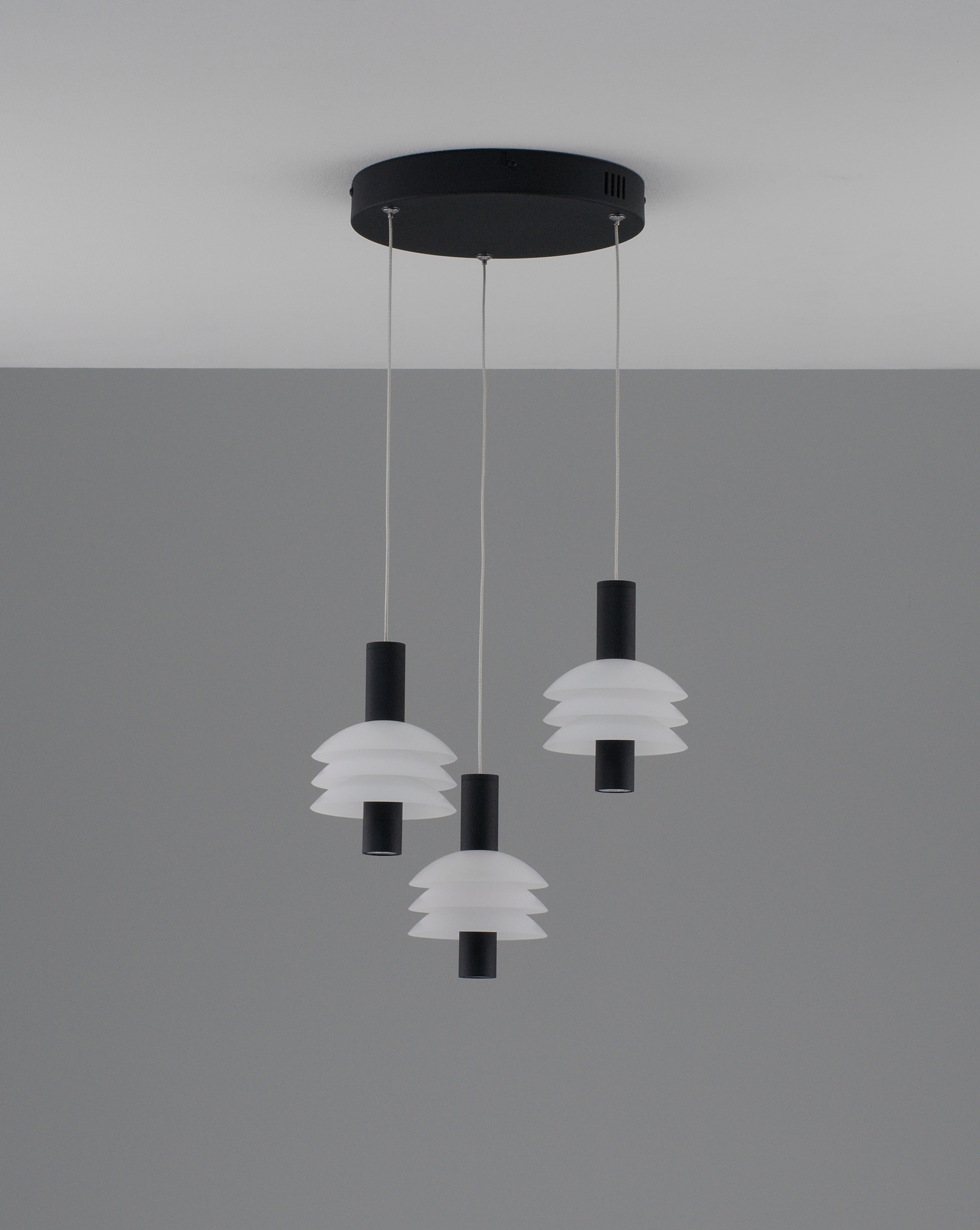Материалы и конструкция. Плафоны и арматура выполнены из прочного акрила и металла в черном матовом цвете с белыми акцентами, что делает конструкцию не только стильной, но и долговечной. Плафоны равномерно рассеивают свет, обеспечивая комфортное и мягкое освещение в интерьере.