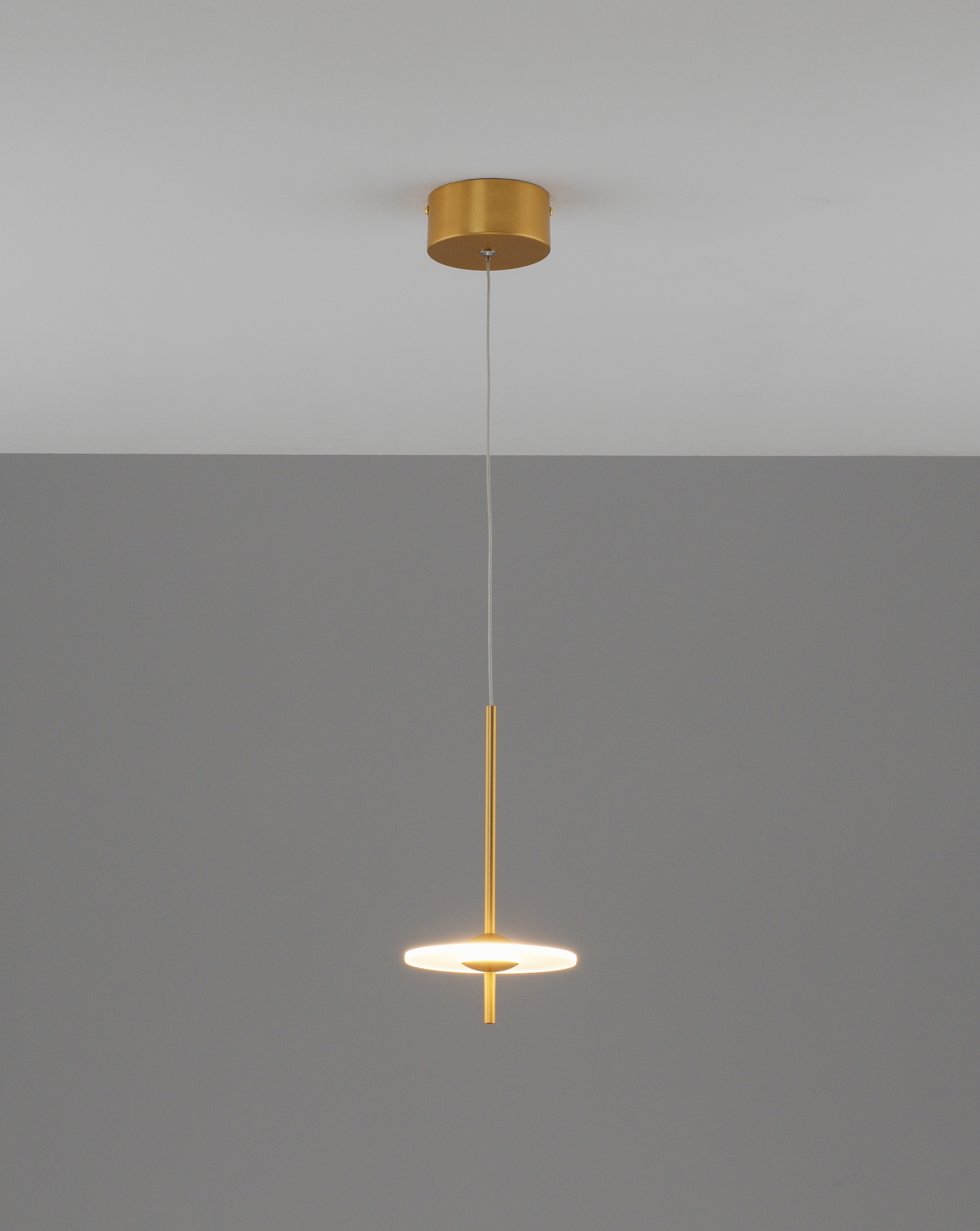 Дизайн и материалы. Светильник Ella сочетает в себе изысканный стиль хай-тек и элементы современного минимализма. Плафон выполнен из акрила с золотым металлическим каркасом, что придает светильнику утонченный вид. Особенностью дизайна является уникальная конструкция в виде кольца, рассеивающего свет по краям, создавая мягкое и равномерное освещение. Белый акриловый плафон гармонично сочетается с золотыми деталями, придающими светильнику роскошный и элегантный вид.