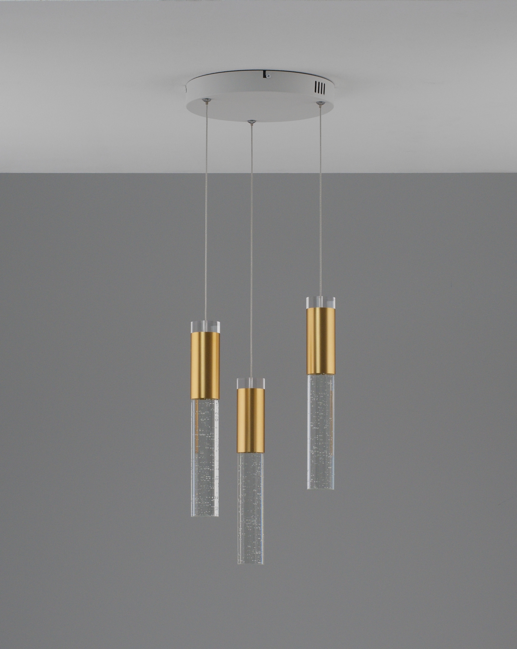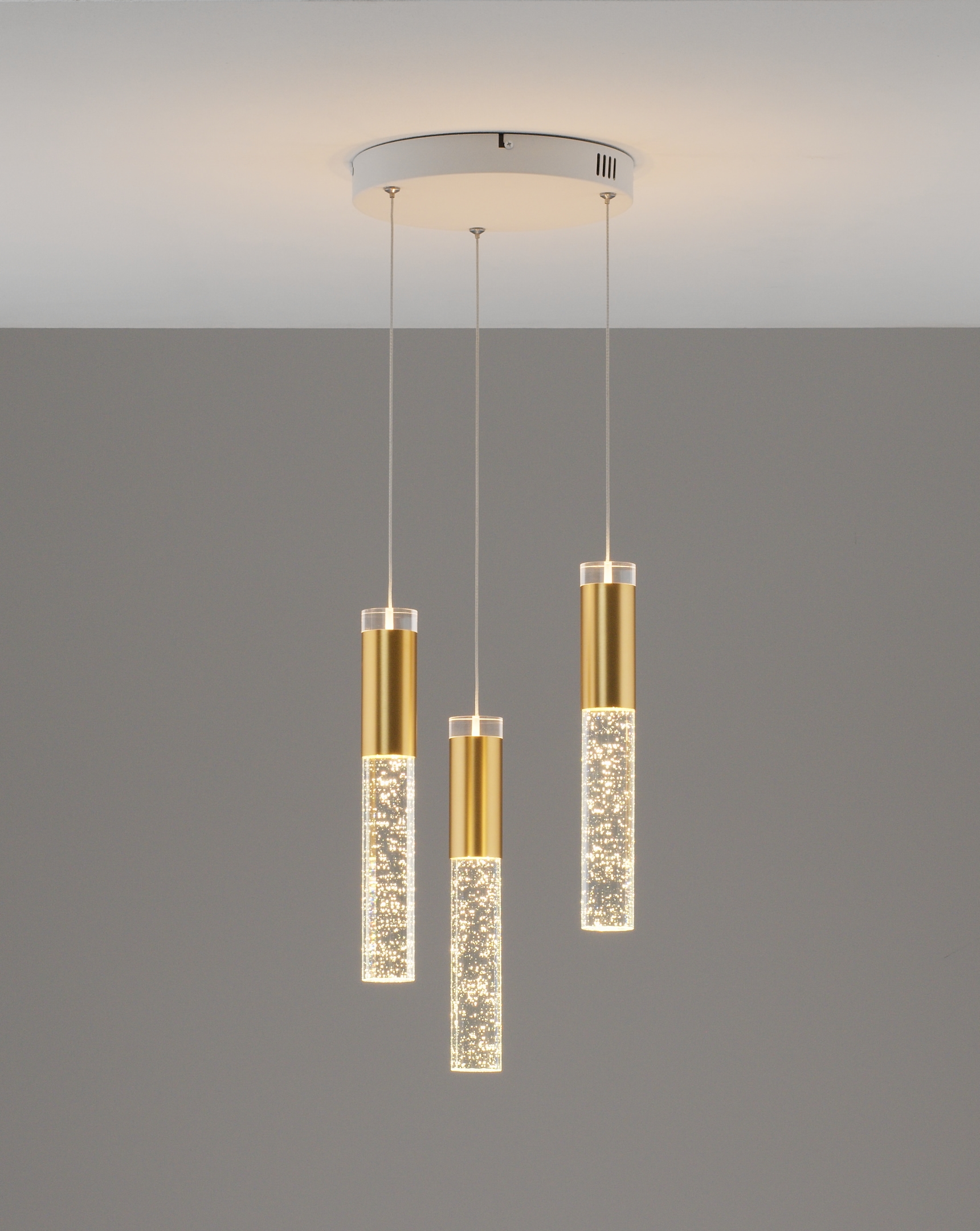 Функциональность. Светильник оснащен тремя встроенными LED-лампами мощностью 22 Вт, который позволит равномерн6о осветить площадь до 15 м², обеспечивая комфортное и мягкое освещение в интерьере. Высоту каждого подвеса можно отрегулировать (от 20 до 140 см) при монтаже, что позволяет адаптировать светильник под различные интерьеры и потребности.