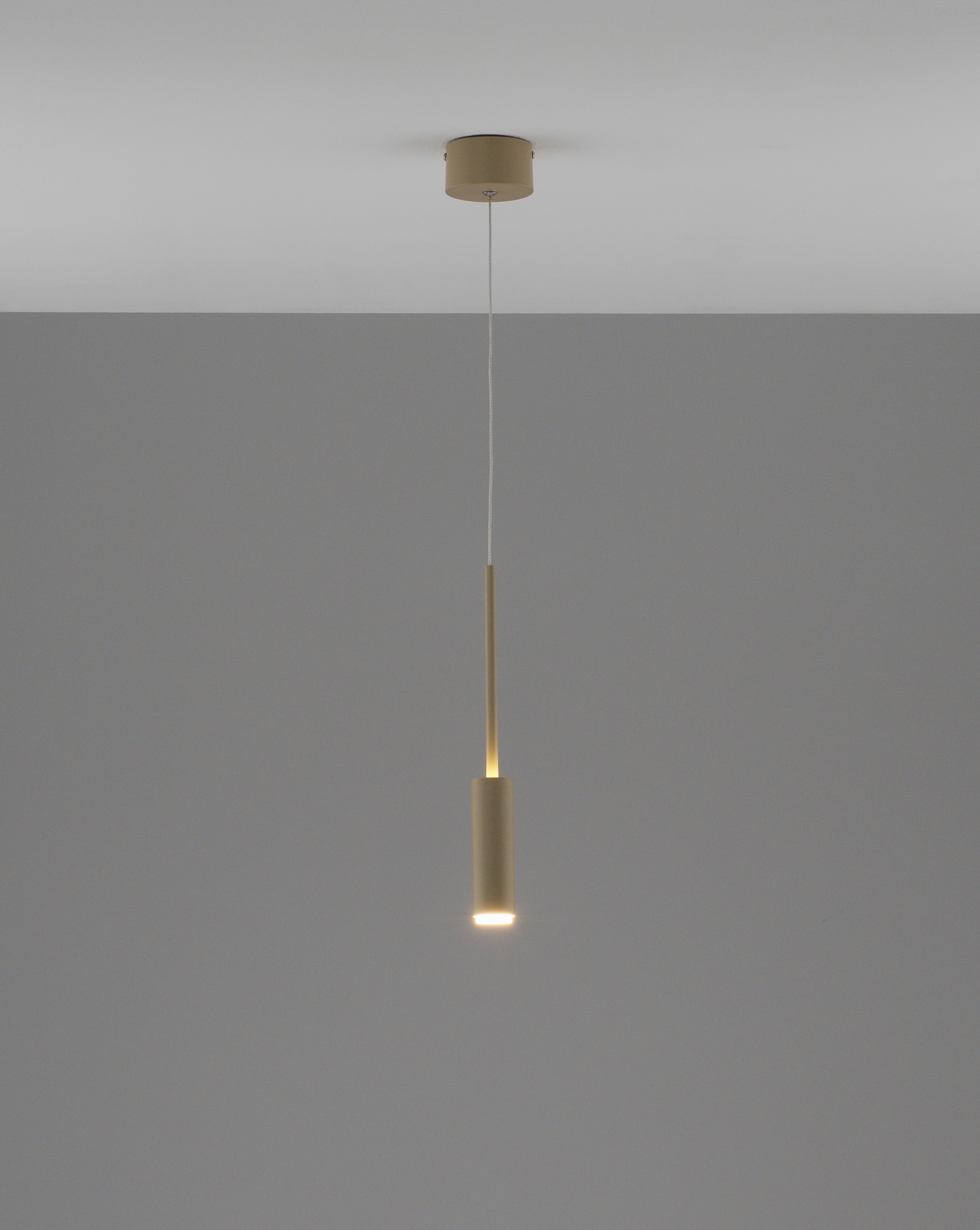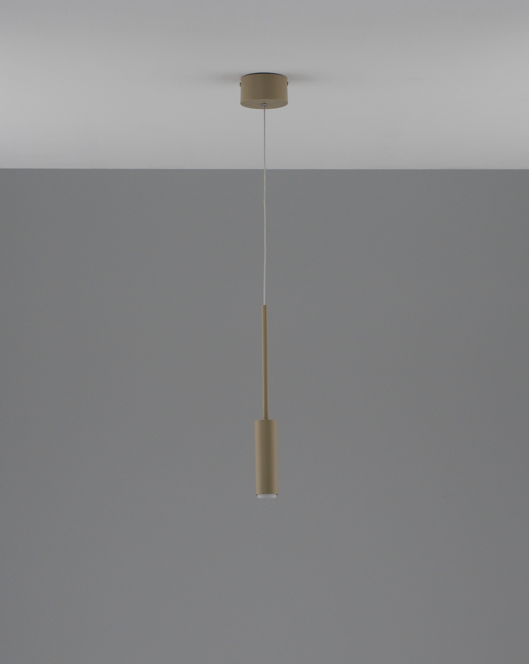 Особенности дизайна и материалы. Светильник имеет современный и элегантный дизайн в стиле хай-тек. Светильник обладает цилиндрическим плафоном, выполненным в сочетании металла и акрила, который подчеркивает современный стиль и придает изделию элегантный и минималистичный вид. Внешняя поверхность выполнена в матовом бежевом цвете, что добавляет утонченности и мягкости.