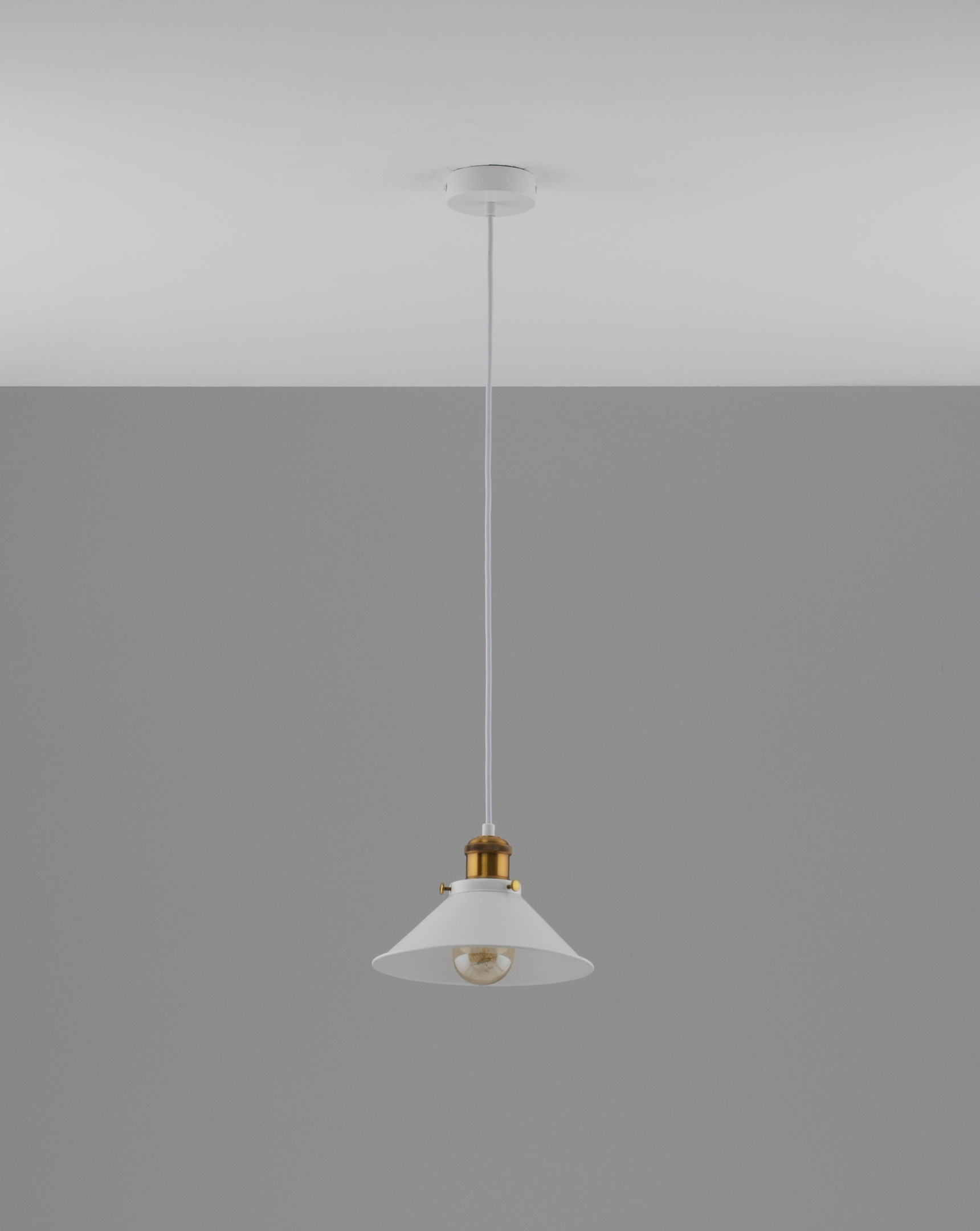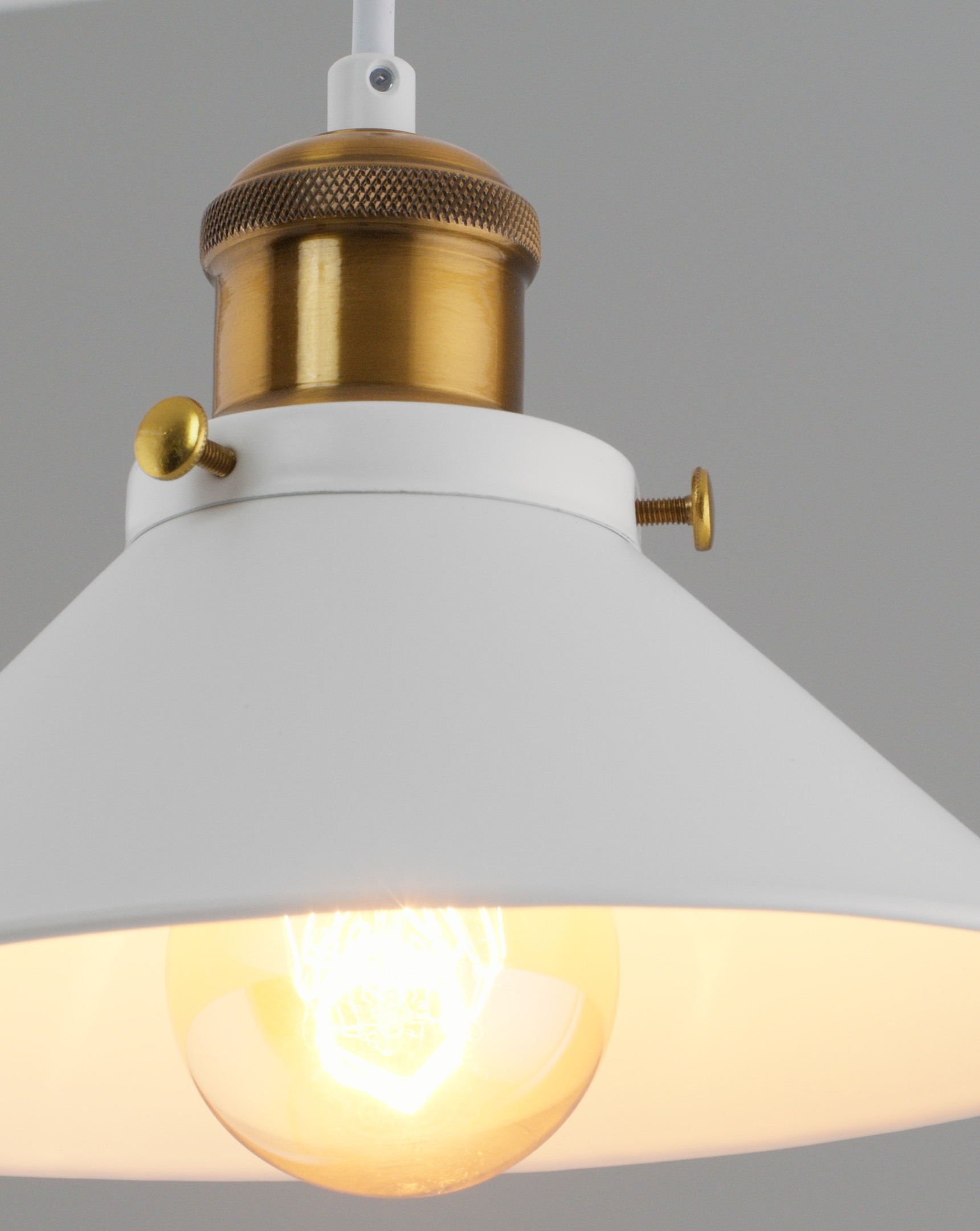 Дизайн и материалы. Представляет собой элегантное сочетание белого с золотыми декоративными элементами, что придает ему стильный и индустриальный вид, характерный для стиля лофт. Плафон в виде широкого металлического купола, выполнен в белом цвете, что делает этот светильник универсальным для множества интерьеров. Золотые элементы на корпусе добавляют роскоши и утонченности.