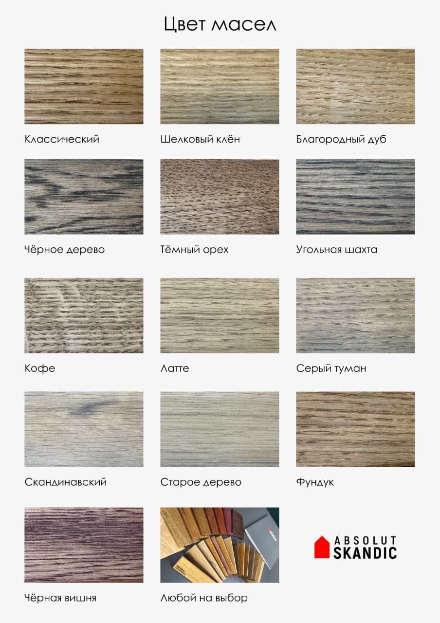 Масло, морилка, краска, лак, цвета по каталогам RAL и NCS.