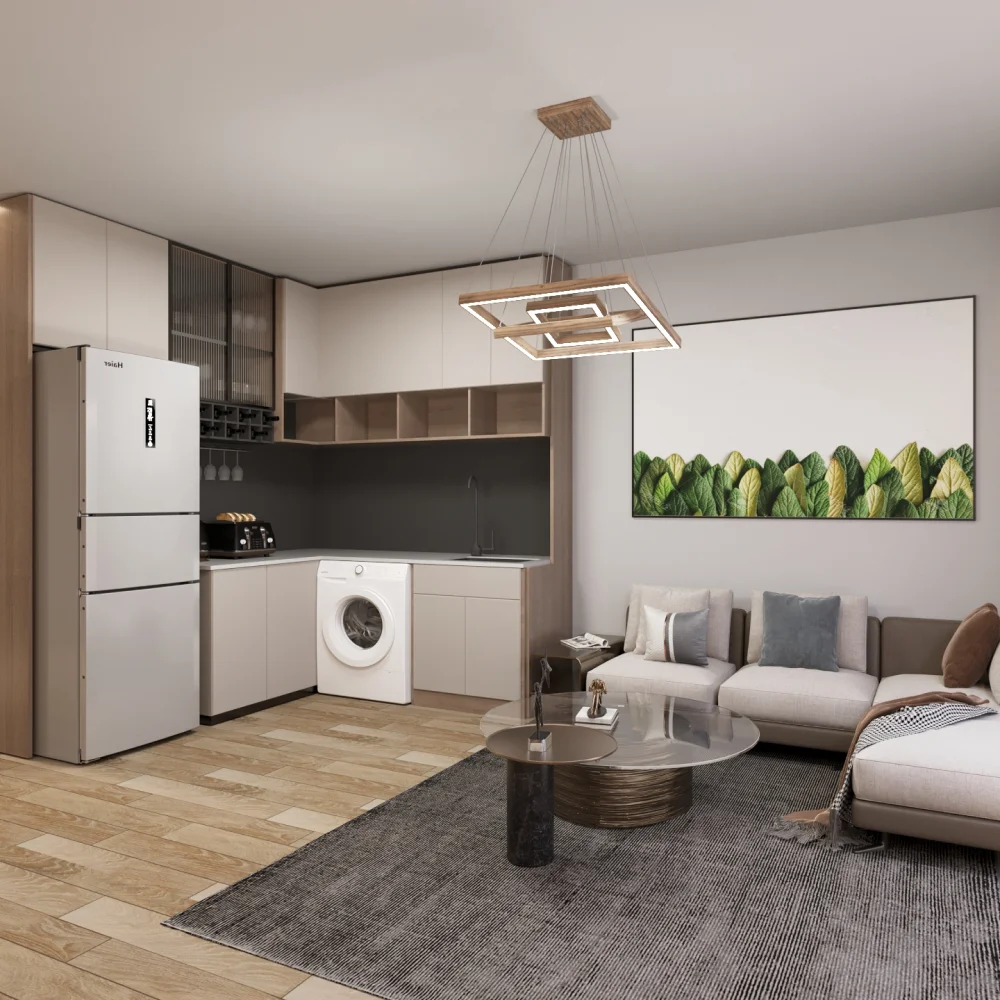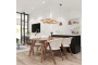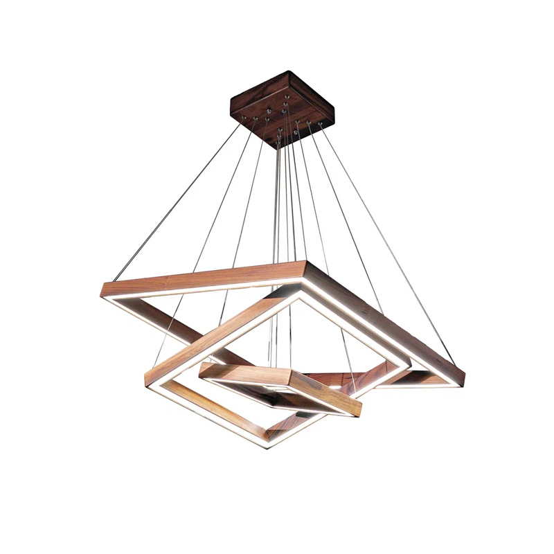 Лаконичный светодиодный светильник - трансформер, который меняет свою форму и систему расположения элементов в зависимости от высоты тросов. Отрегулировать их можно по разному - выберите параллельное расположение деревянных элементов или разверните один из них перпендикулярно.