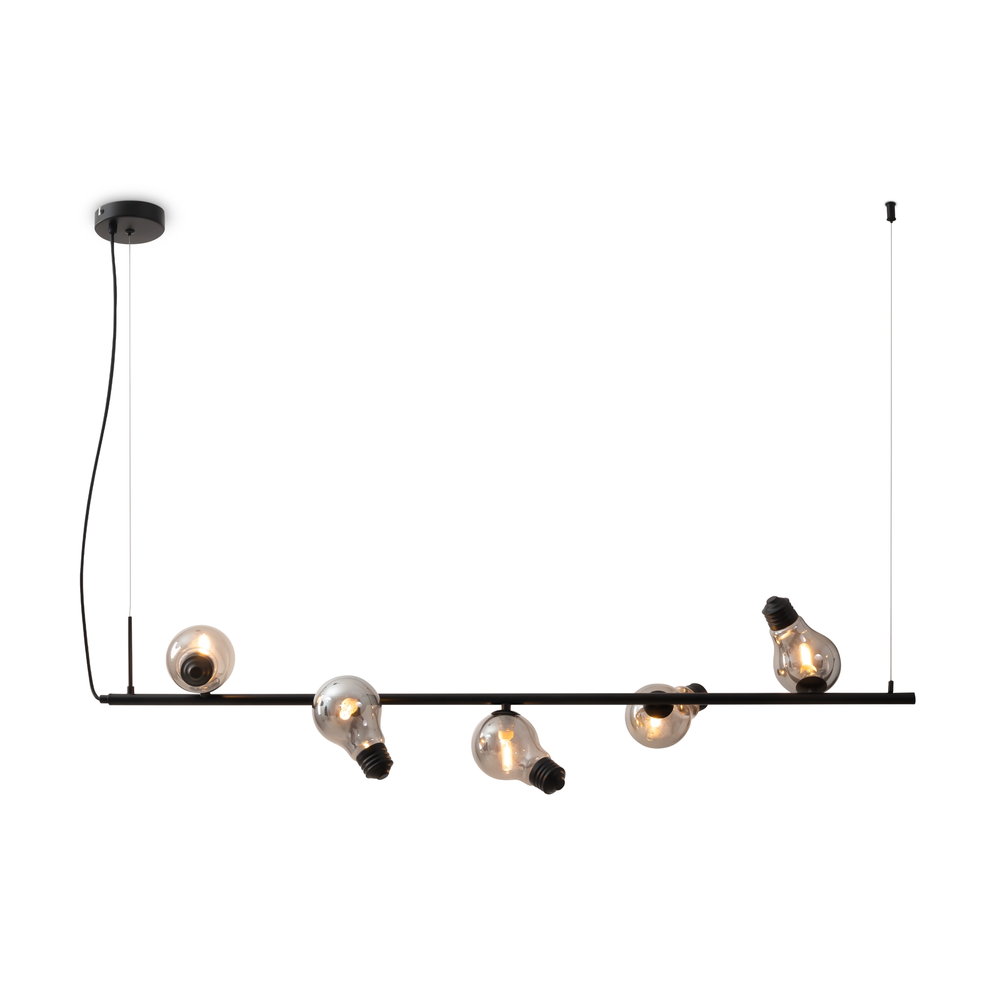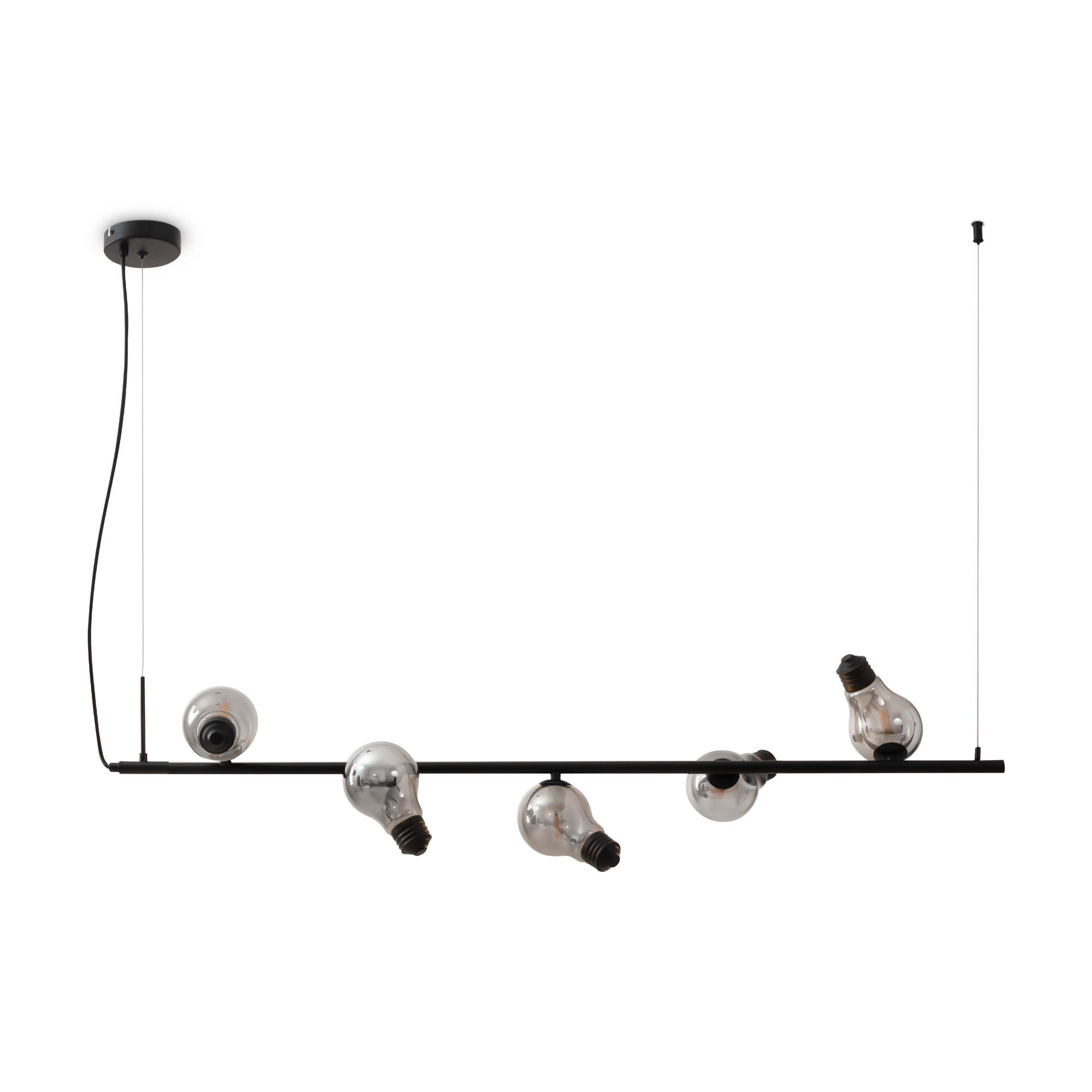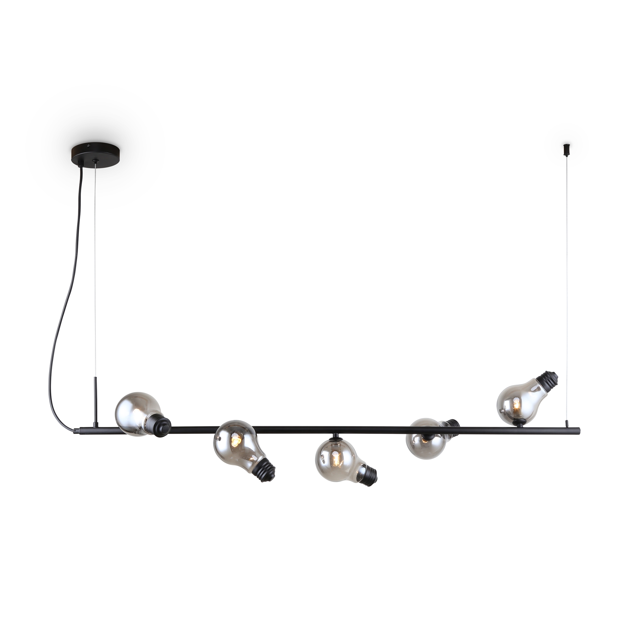 Запросить индивидуальное предложениеМеталлическая арматура, цвета — чёрный и латунь. Прозрачные плафоны-лампочки из стекла в тон арматуры хаотично “разбросаны” по острову светильника. Подвесы регулируются по высоте. Источник света — лампа с цоколем G9.