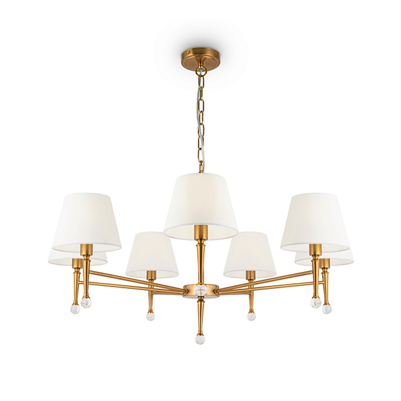 Запросить индивидуальное предложениеЭлегантность и комфорт американской классики запечатлены в дизайне серии Rosemary. Сдержанный и визуально легкий силуэт металлической арматуры подчеркивается благородным оттенком латуни и никеля. Традиционную для классического стиля симметрию разбавляют декоративные капли из прозрачного хрусталя. Преломляя лучи света, они дарят радужные блики и освежают композицию. Абажуры из красивой текстурированной ткани завершают лаконичный и изящный образ. Они представлены в двух оттенках: белом и черном. Широкий ассортимент серии включает люстры на 5, 7 и 12 ламп, а также настольный светильник, торшер и бра. Это готовый комплексный ансамбль для общей и зональной подсветки гостиных и спален, выполненных в лучших традициях современной классики.