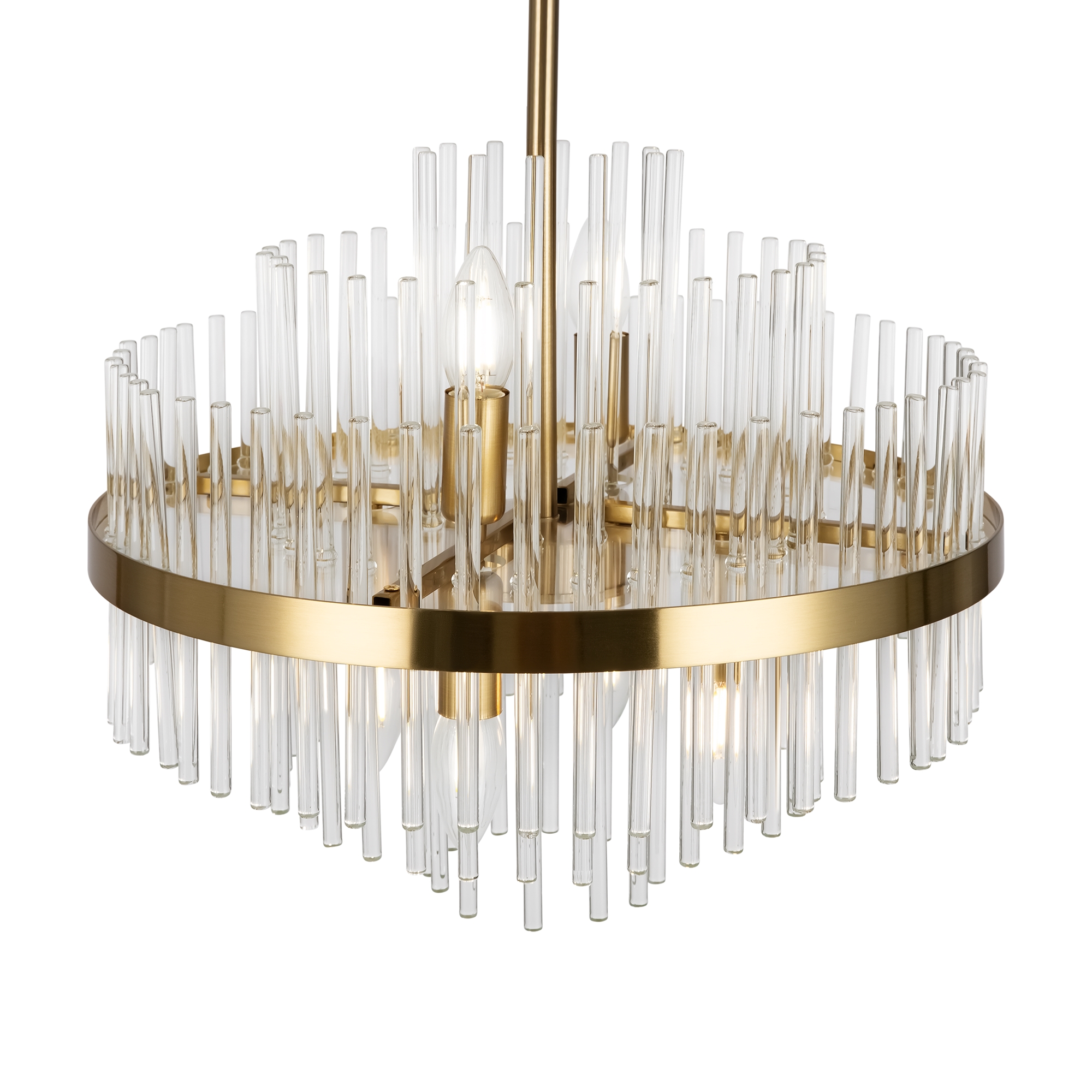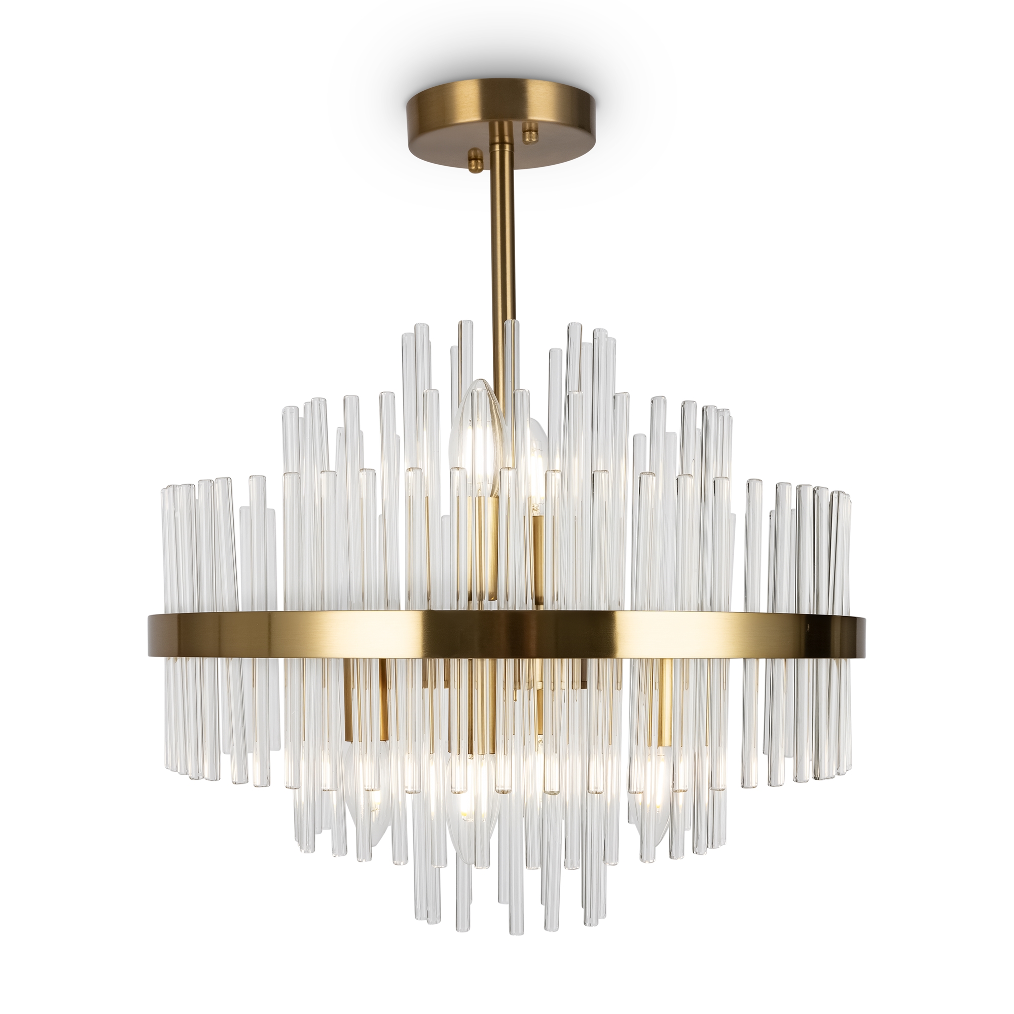 Запросить индивидуальное предложениеСерия с праздничным настроением щедрого ар-деко. Многоуровневая композиция – интерпретация образа солнечной сферы, одного из самых часто цитируемых символов в дизайне. Арматура светильника выполнена из металла и окрашена в благородный оттенок латуни. Декоративная стеклянная колоннада красиво преломляет световые лучи, рассеивая их вверх и вниз. Такой прием визуально вытягивает помещение и делает его более просторным. Центр композиции обрамляет металлическое кольцо, окрашенное в тон арматуре. Светильник, объединивший два трендовых силуэта – сферу и вытянутые трубки – станет главным акцентом в интерьере гостиной, помещениях HoReCa, кафе и ресторанов. Серия включает люстры двух диаметров, предназначенные для обстановок, оформленных в стиле ар-деко, неоклассика, mid-century modern.