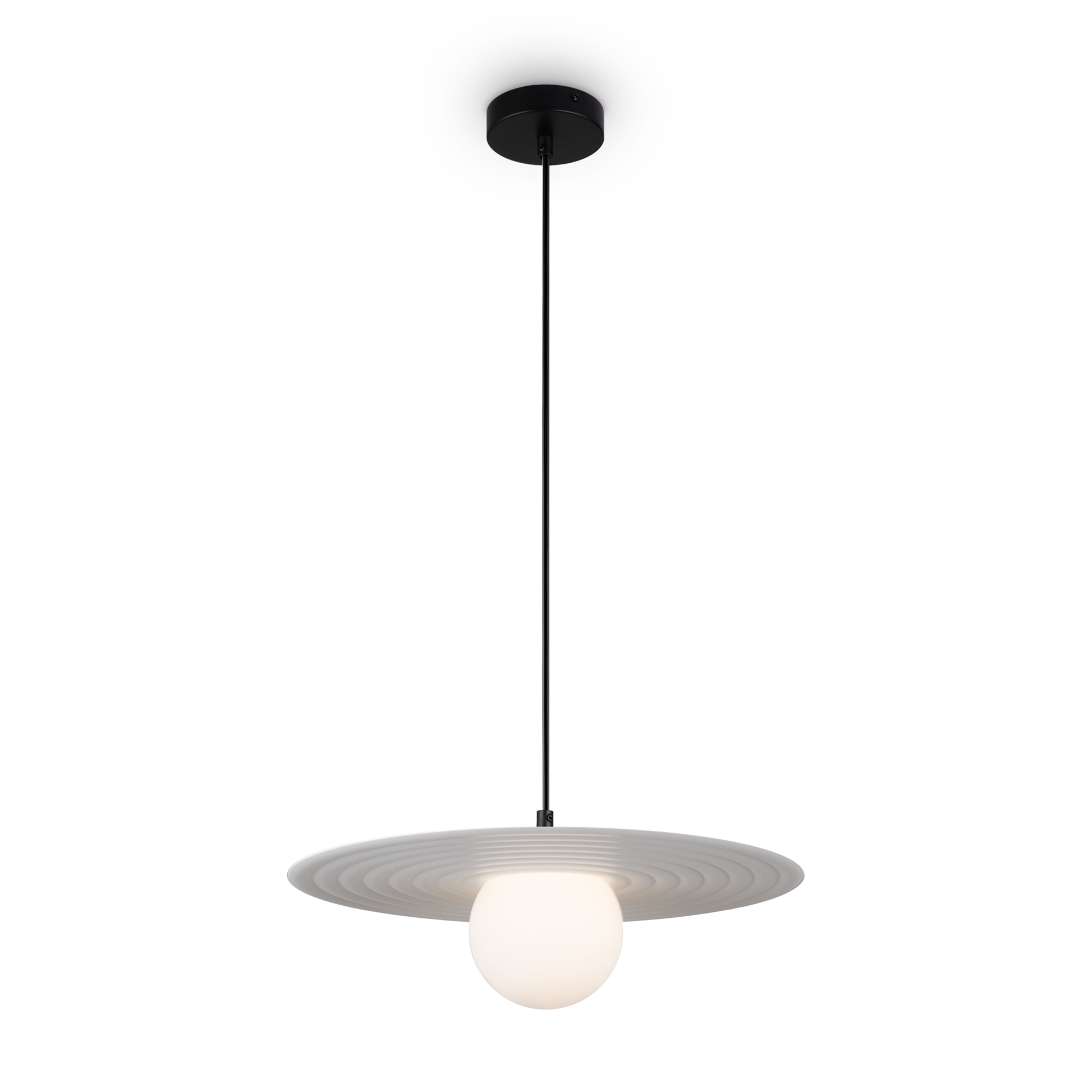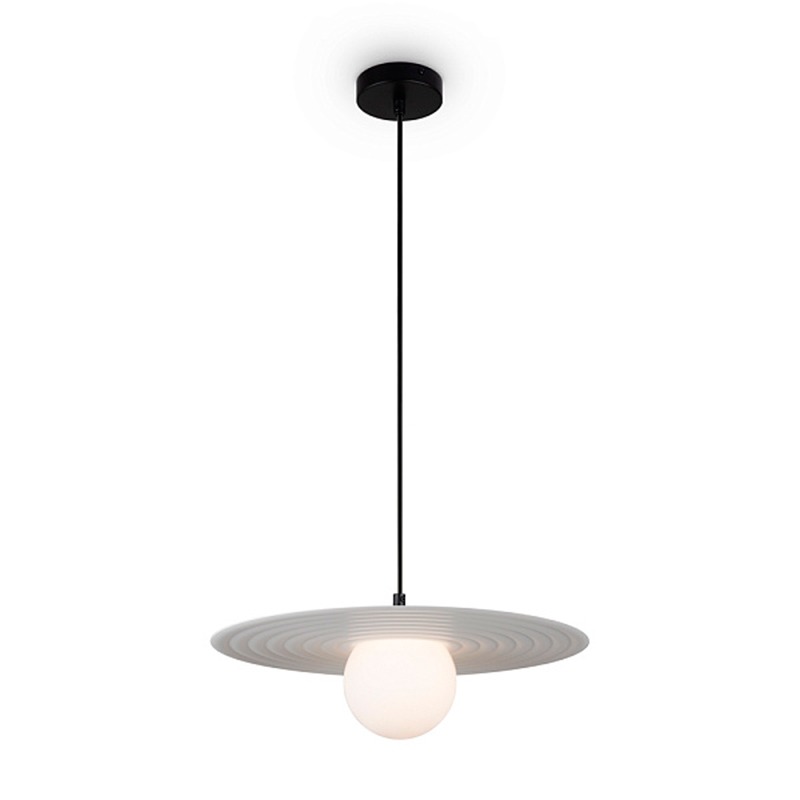 Запросить индивидуальное предложениеАрматура — металл, цвета — чёрный и белый. Матовый белый плафон с декоративным элементом — металлической тарелкой. Можно регулировать минимальную и максимальную высоту. Лампа с цоколем G9 служит источником света.