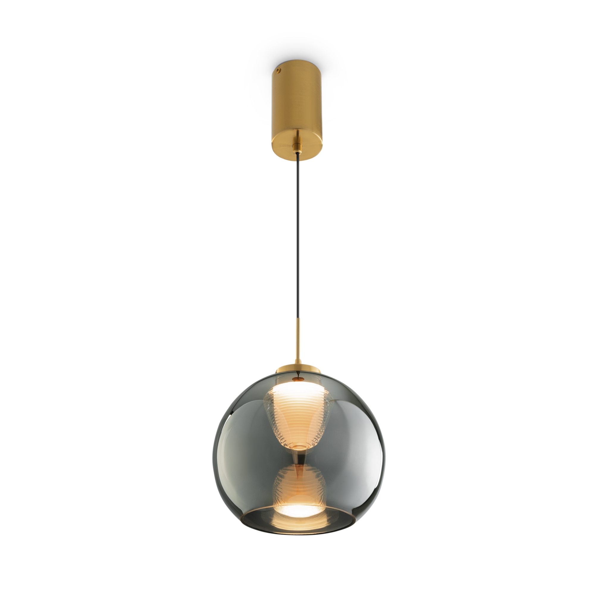 Запросить индивидуальное предложениеАрматура — металл, цвет — латунь. Плафоны из прозрачного стекла с дымчатым оттенком в форме овала, круга или конуса. Универсальный минималистичный дизайн позволяет составлять комбинации из нескольких подвесов. Регулируемая высота. Тренд «invisible light» - LED-источник света утоплен в основание плафона. Цветовая температура - 3000К.