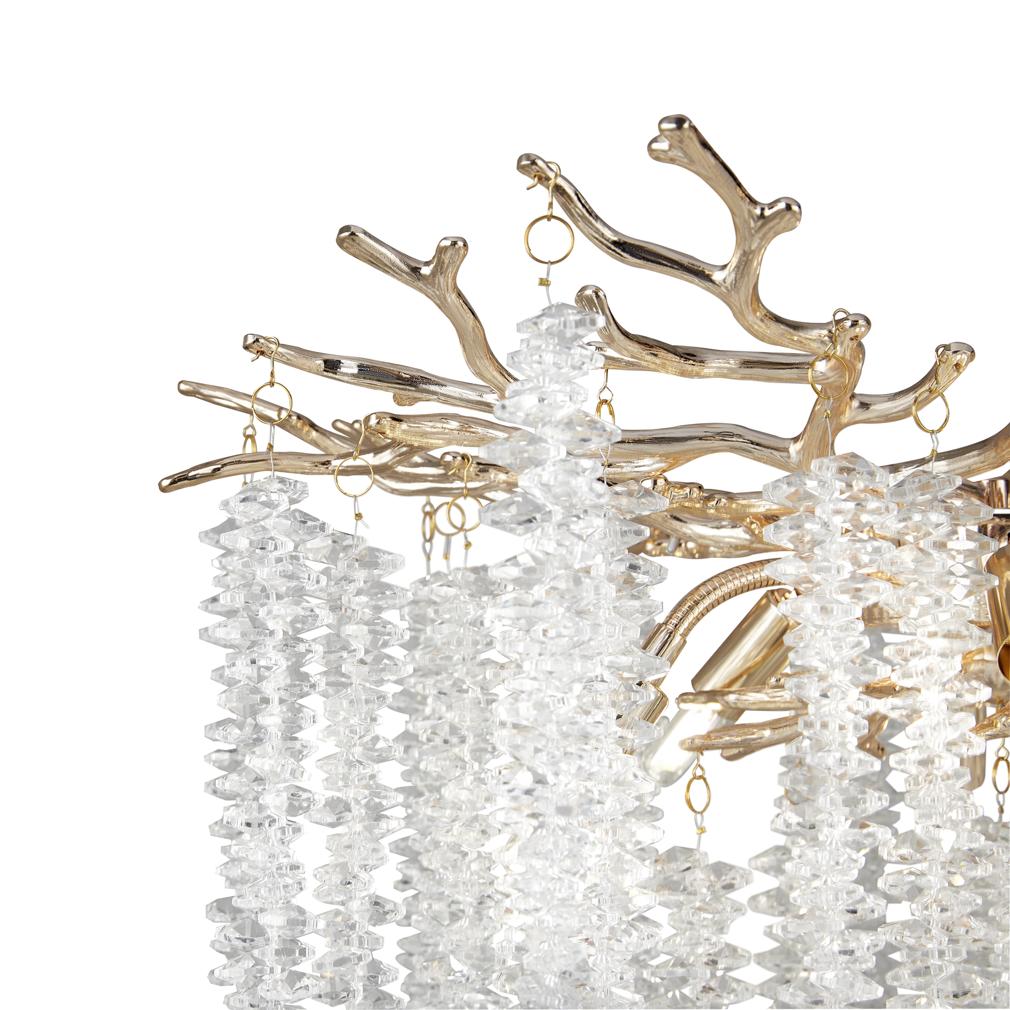 Запросить индивидуальное предложениеМатериалы арматуры —металл, цвет — золото. Хрустальные декоративные элементы напоминают капельки - создают глубокие переливы света. Дизайн в трендовой растительной тематике. Источник света — лампа с цоколем G9 и с поворотной функцией.