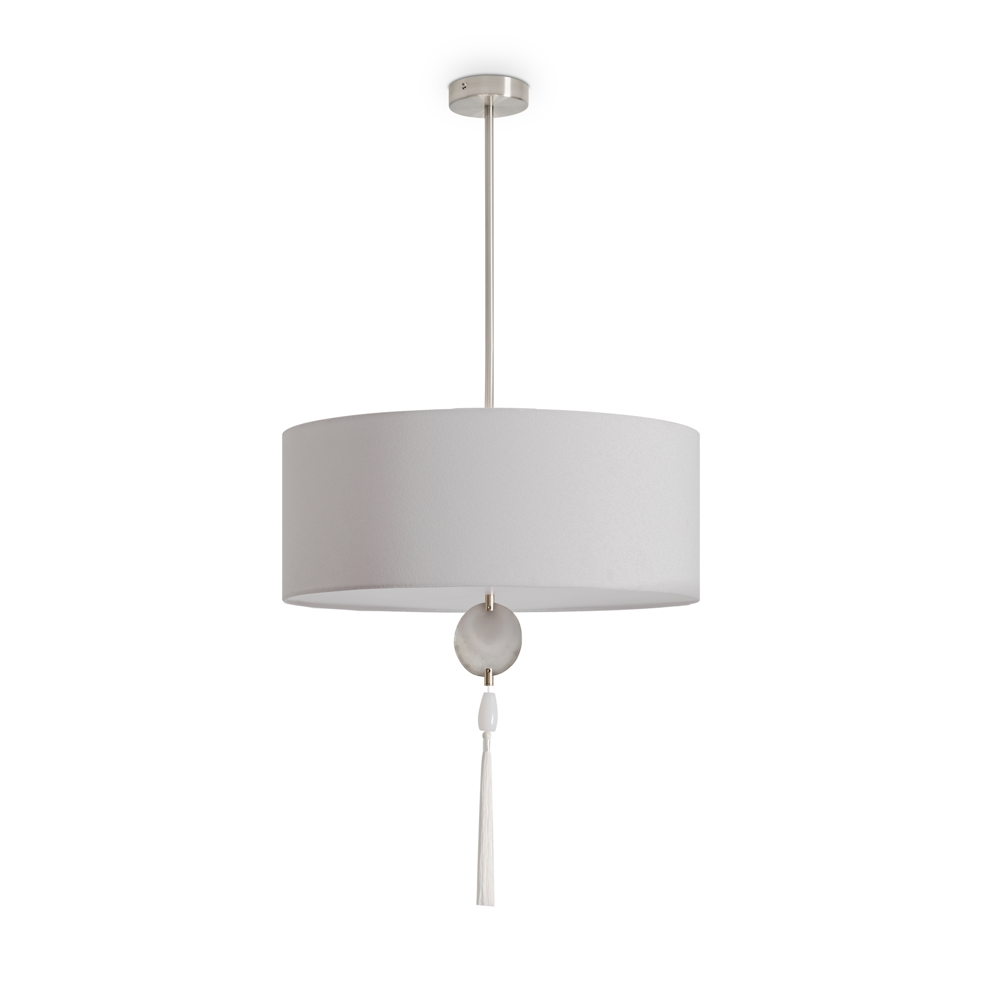 Запросить индивидуальное предложениеИзюминкой серии Agate являются декоративные элементы из натурального камня агат. Каждый камень уникален: его цвет и текстура неповторимы, что делает каждый светильник особенным. Цоколь E14 обеспечивает возможность использования широкого спектра ламп — от тёплых LED до классических, — позволяя настраивать освещение под любую задачу. Металл в цвете никель придаёт конструкции лаконичную элегантность, а декоративные кисточки мягко акцентируют светло-серый оттенок ткани абажура, добавляя интерьеру изысканности. Благодаря этому вы можете создать как яркое и функциональное освещение для повседневных нужд, так и мягкое, приглушённое свечение, наполняющее пространство уютом и атмосферой романтики.