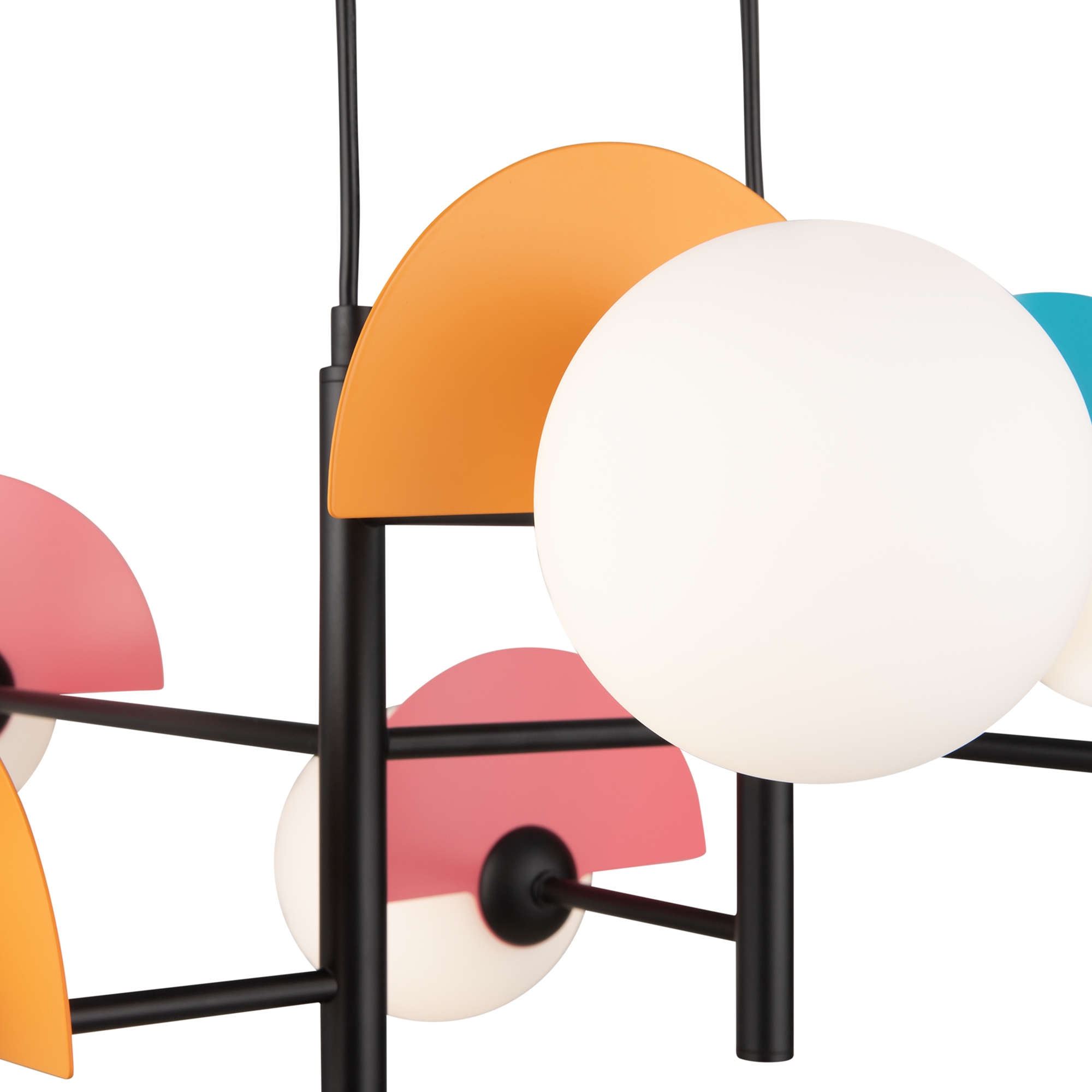 Запросить индивидуальное предложениеАрматура — металл, цвет — разноцветный или латунь. Белые матовые плафоны из стекла украшены металлическими золотыми или цветными лепестками. Динамичный дизайн для интерьеров в стиле Мемфис. Разнообразие форм в одной конструкции позволяет создать яркое освещение в больших комнатах. Высота регулируется. Источником света служит лампа с цоколем G9.