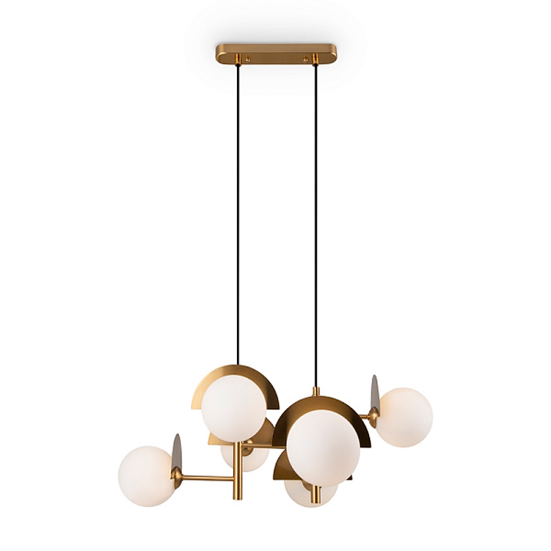 Запросить индивидуальное предложениеАрматура — металл, цвет — разноцветный или латунь. Белые матовые плафоны из стекла украшены металлическими золотыми или цветными лепестками. Динамичный дизайн для интерьеров в стиле Мемфис. Разнообразие форм в одной конструкции позволяет создать яркое освещение в больших комнатах. Высота регулируется. Источником света служит лампа с цоколем G9.