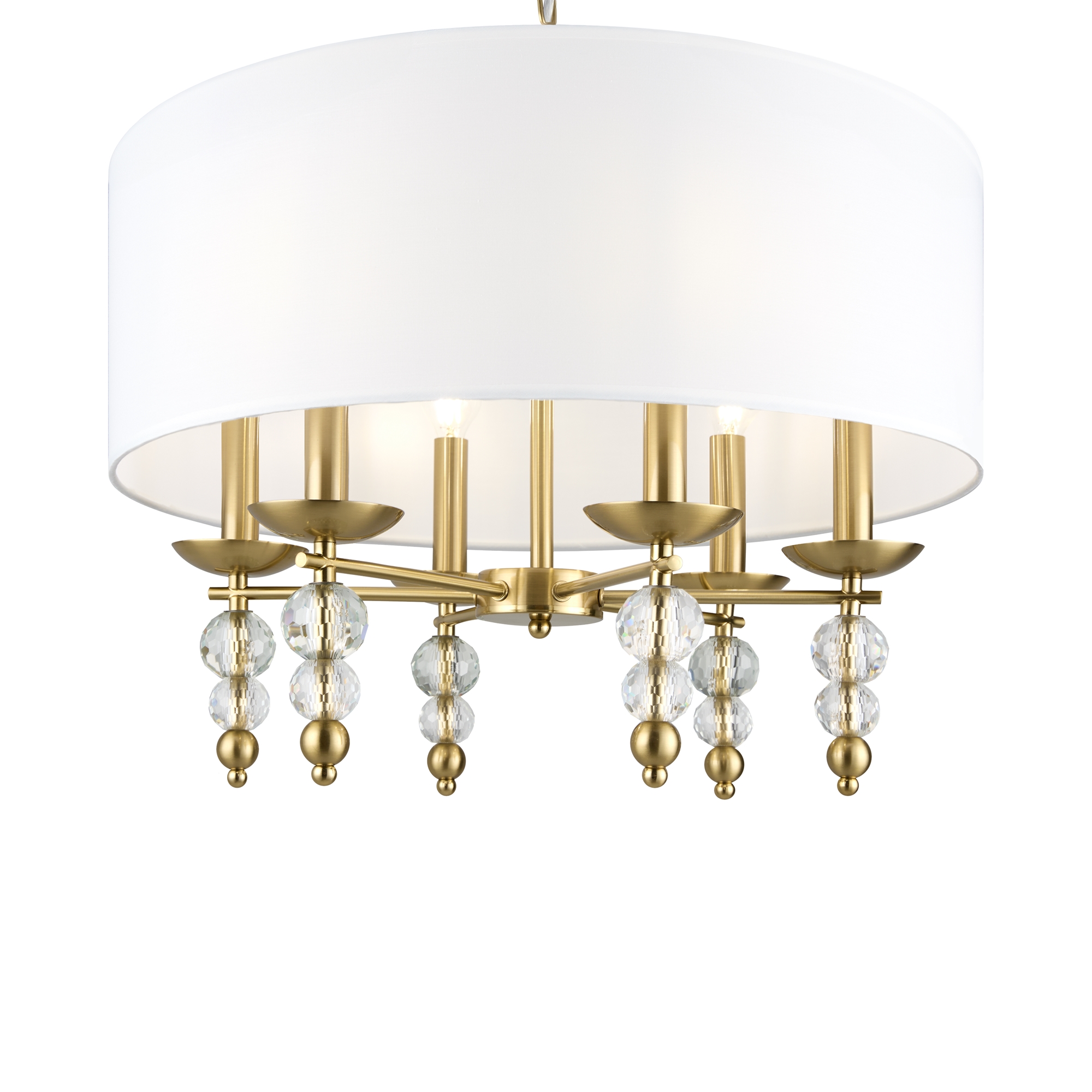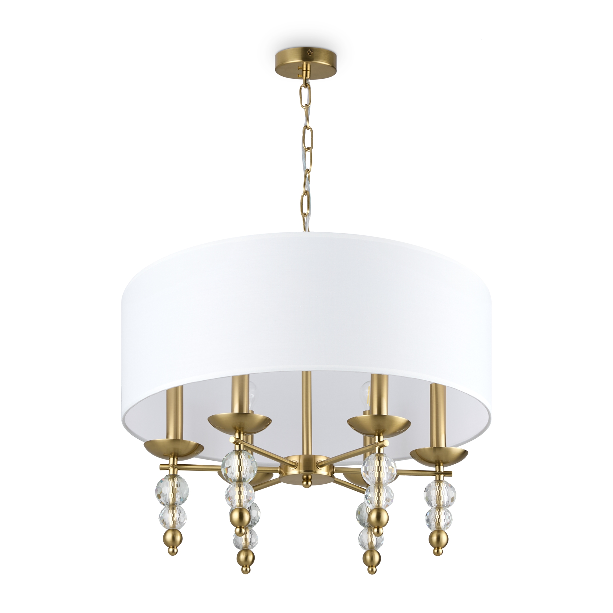 Запросить индивидуальное предложениеМатериал абажура — ткань, цвет — белый. Металлическая арматура в цвете латунь обрамлена хрустальными бусинами. Источник света — лампы с цоколем Е14. Степень защиты — IP20.