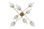 Эстетика конструктивизма, с характерной для неё геометрией и лаконичностью, отчетливо прослеживается в дизайне серии Damask. Металлическая арматура выполнена в благородном оттенке латуни. Её четкие линии, пронизывающие плафоны, привлекают внимание и создают эффектный визуальный образ. Строгую геометрию арматуры разбавляют округлые шаровидные плафоны, выполненные из матового белого стекла. В серии – потолочные люстры на 6, 8 ламп и бра для комплексной подсветки интерьера. Оригинальный дизайн легко адаптируется в современном пространстве и сможет подчеркнуть достоинства обстановки, оформленной в стиле mid-century modern, конструктивизм, минимализм, техно.