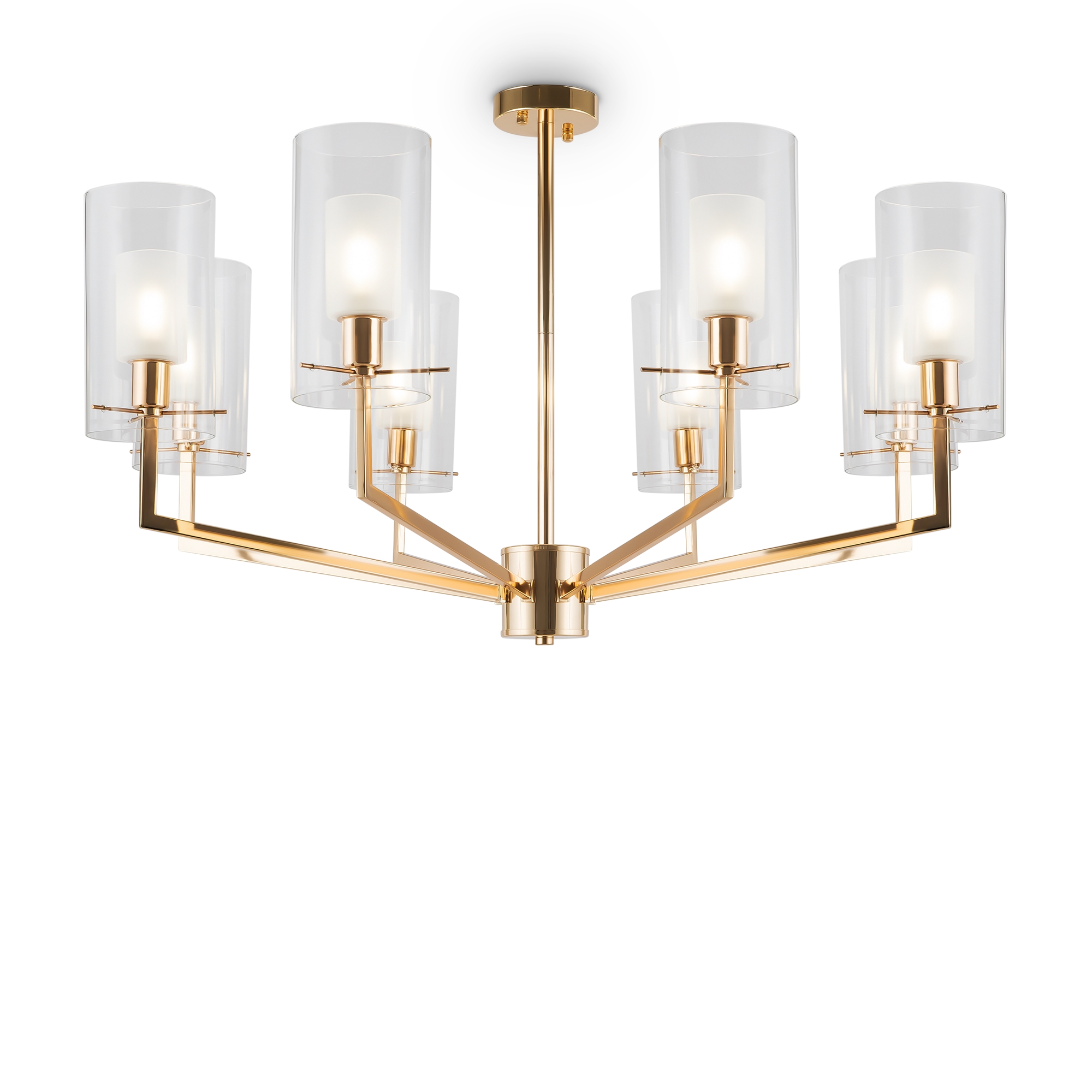 Запросить индивидуальное предложениеИзюминка серии Felicity – оригинальный дизайн, объединивший элегантную неоклассику и лаконичную геометрию. Визуально легкий образ создается благодаря воздушным плафонам. Они выполнены из двойного стекла – матового внутри и прозрачного снаружи. Такое решение обеспечивает мягкое, слегка рассеянное и комфортное для зрения освещение. Металлическая арматура окрашена в цвет французского золота – оттенок, актуальный как для классических, так и для современных интерьерных решений. Симметричное расположение геометричных рожков подчеркивает утонченность и строгость композиции. Элегантный дизайн актуален для современных, неоклассических и эклектичных интерьеров, позволяет расставить акценты, не перегружая обстановку. Серия включает люстры на 6, 8, 9 ламп и бра – можно организовать комплексные сценарии освещения в единой стилистике.