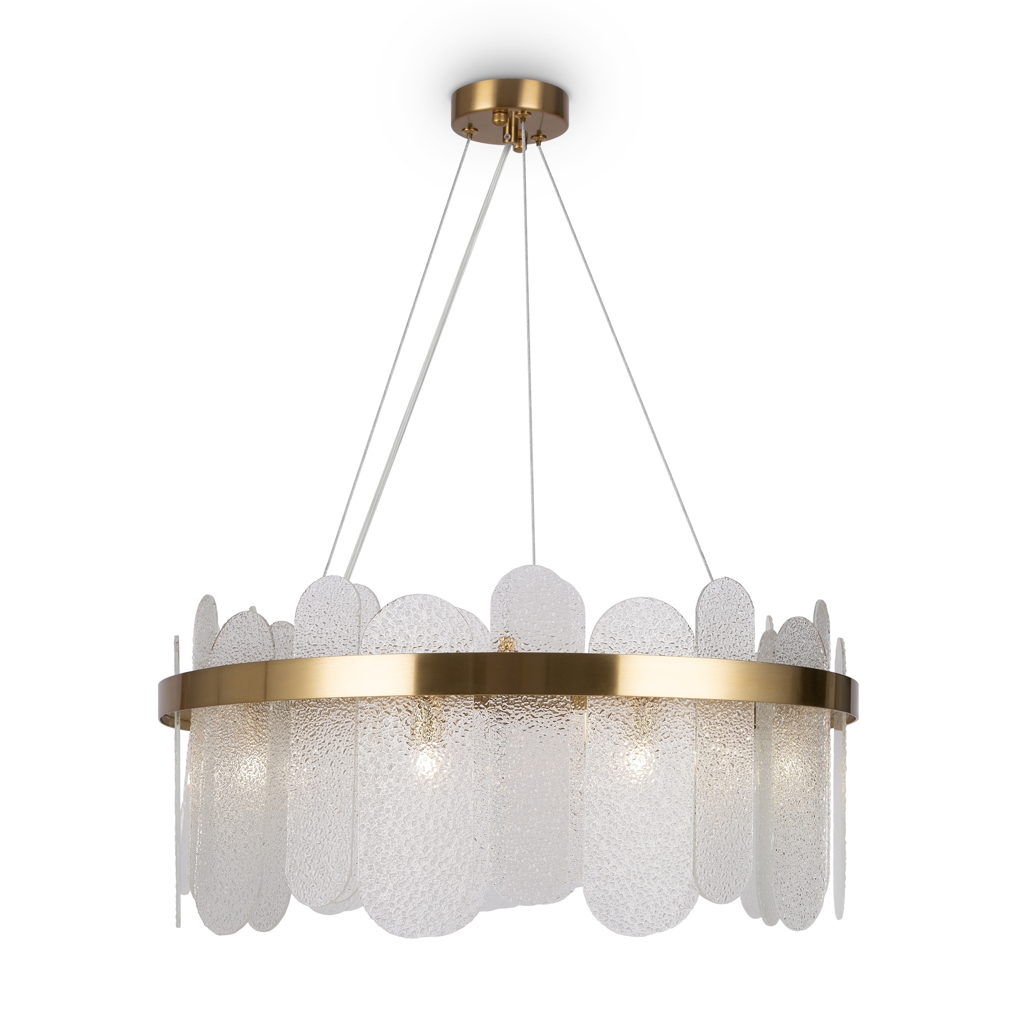 Запросить индивидуальное предложениеИзящный силуэт светильников Deserto легко интегрируется как в классический, так и в современный интерьер, благодаря удачному сочетанию традиционной палитры и трендового декора. Металлическая арматура благородного оттенка латуни служит идеальной оправой для стеклянных элементов. Их модная фактурная поверхность создает эффект «замороженного стекла». Такой прием добавляет дизайну индивидуальности и образует красивую игру световых бликов и переливов – лучи света мягко преломляются рельефным узором. Серия включает две подвесные люстры различного диаметра, а также бра для эффектной зональной подсветки. Элегантные светильники отлично подойдут для интерьеров в стиле неоклассика, ар-деко, модерн, эклектика.