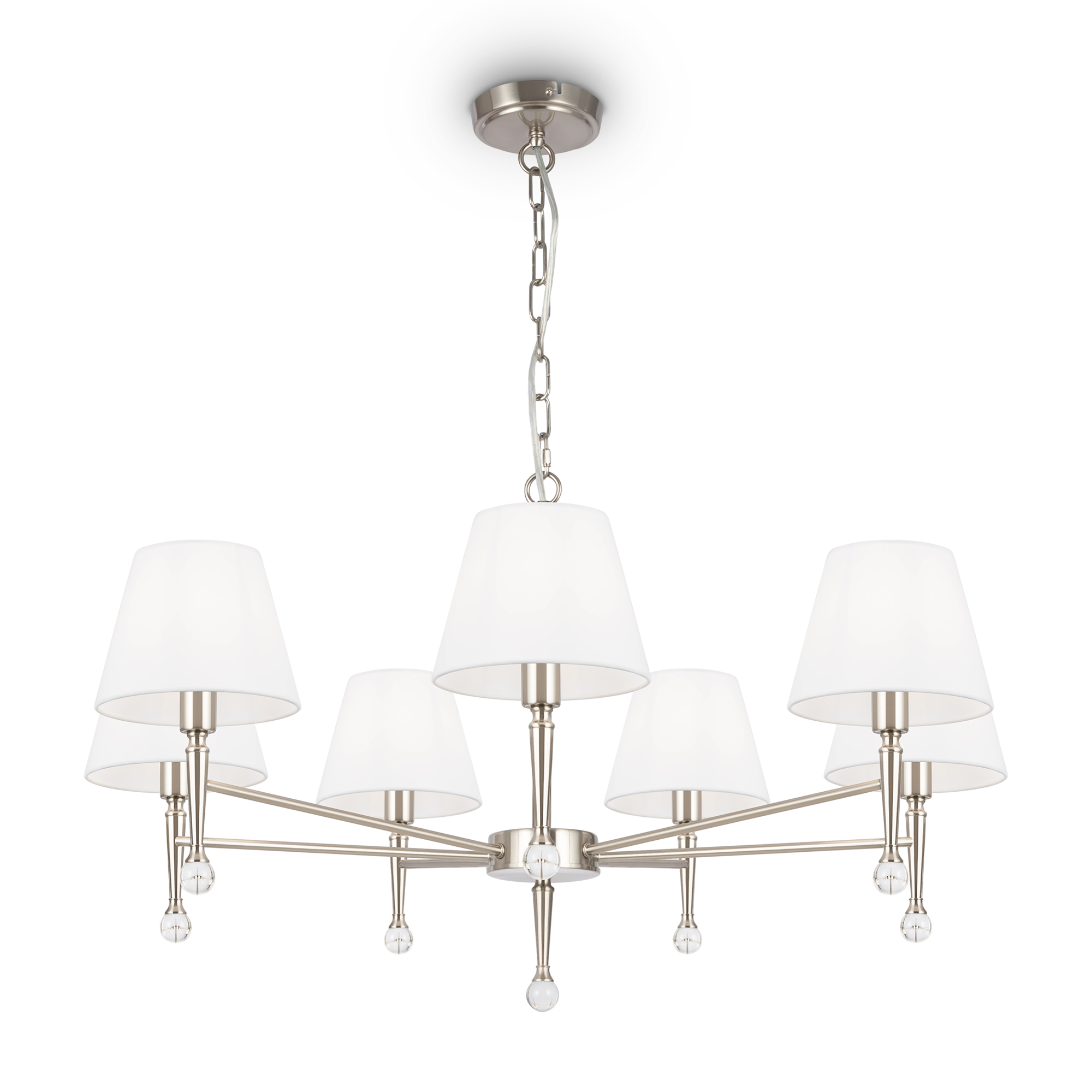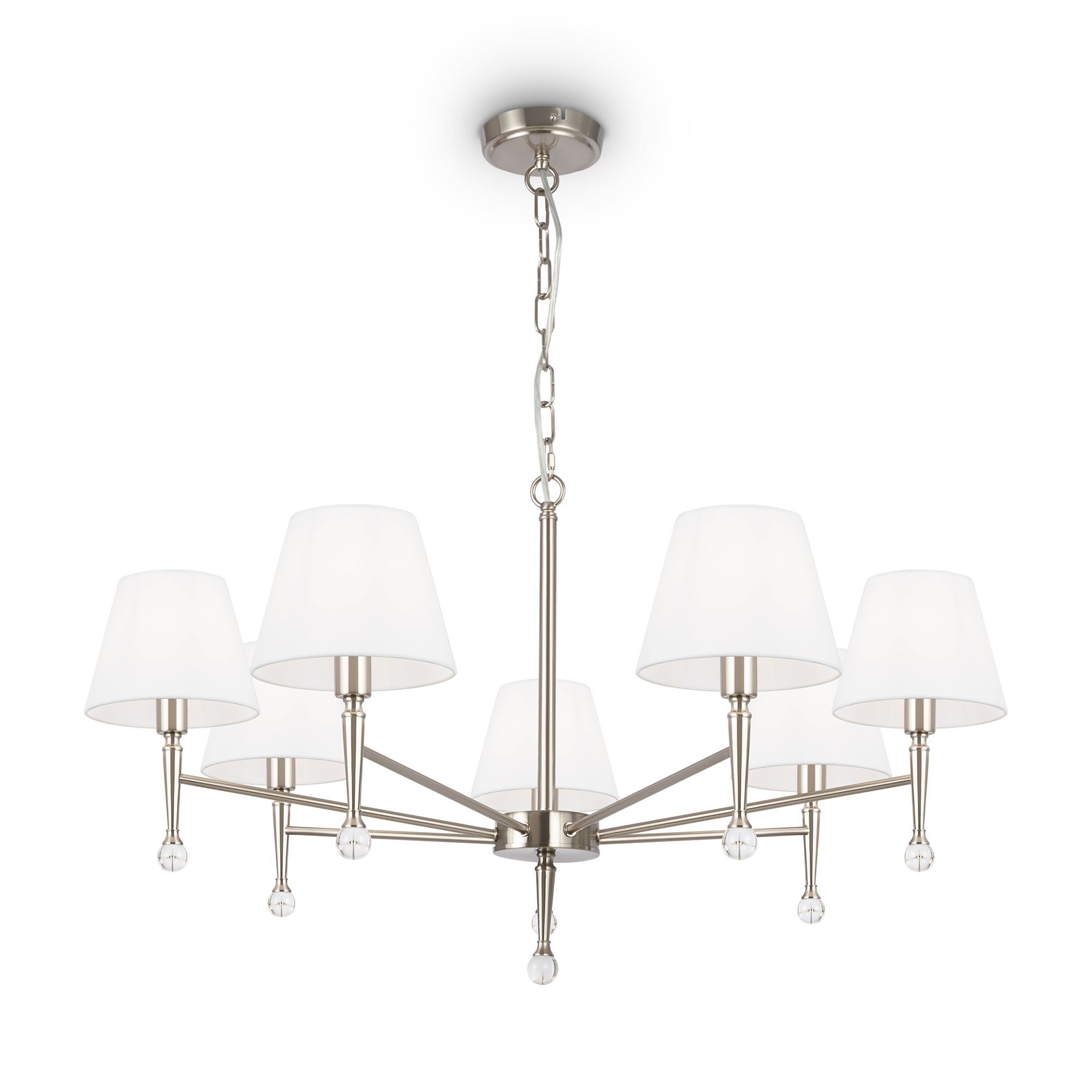 Запросить индивидуальное предложениеЭлегантность и комфорт американской классики запечатлены в дизайне серии Rosemary. Сдержанный и визуально легкий силуэт металлической арматуры подчеркивается благородным оттенком латуни и никеля. Традиционную для классического стиля симметрию разбавляют декоративные капли из прозрачного хрусталя. Преломляя лучи света, они дарят радужные блики и освежают композицию. Абажуры из красивой текстурированной ткани завершают лаконичный и изящный образ. Они представлены в двух оттенках: белом и черном. Широкий ассортимент серии включает люстры на 5, 7 и 12 ламп, а также настольный светильник, торшер и бра. Это готовый комплексный ансамбль для общей и зональной подсветки гостиных и спален, выполненных в лучших традициях современной классики.