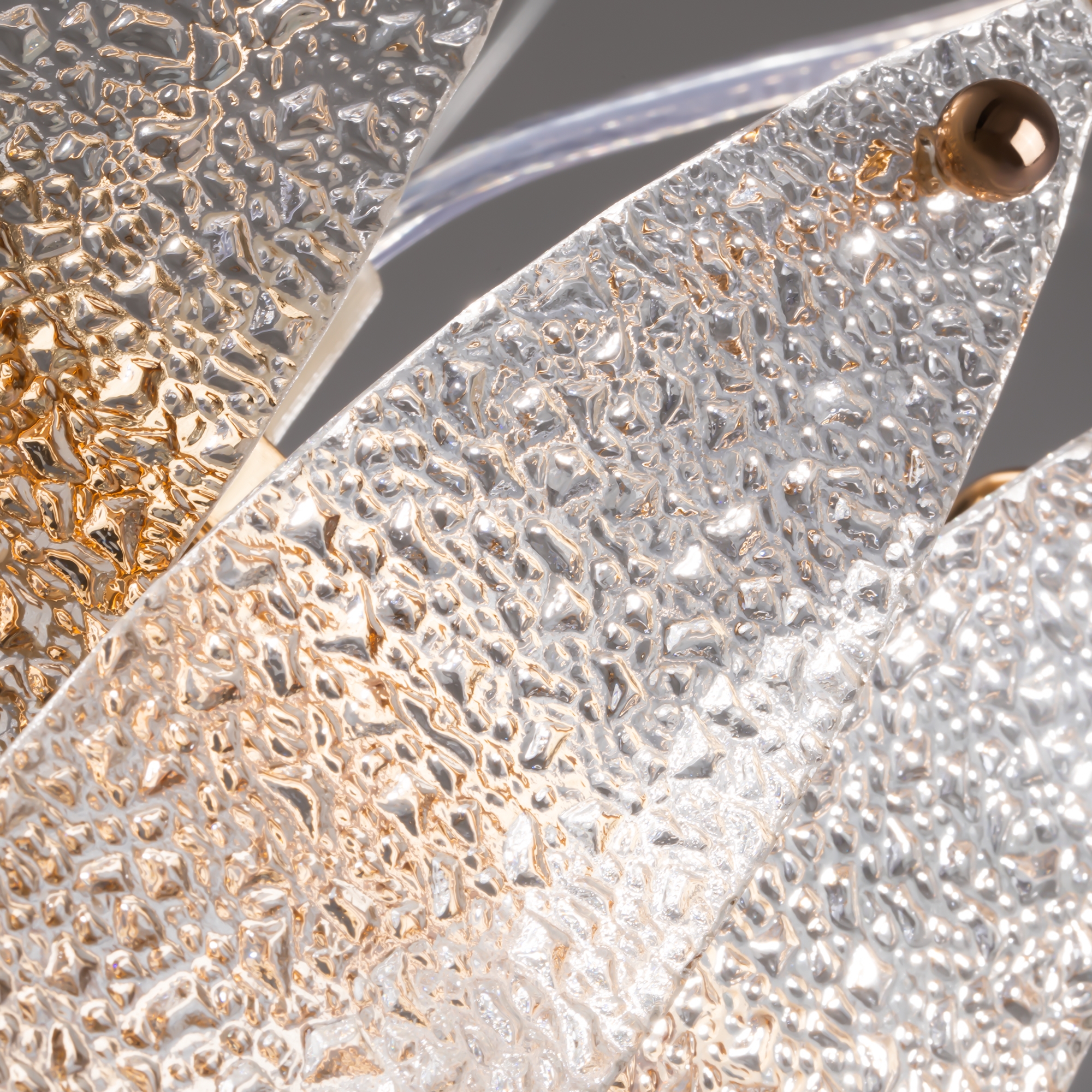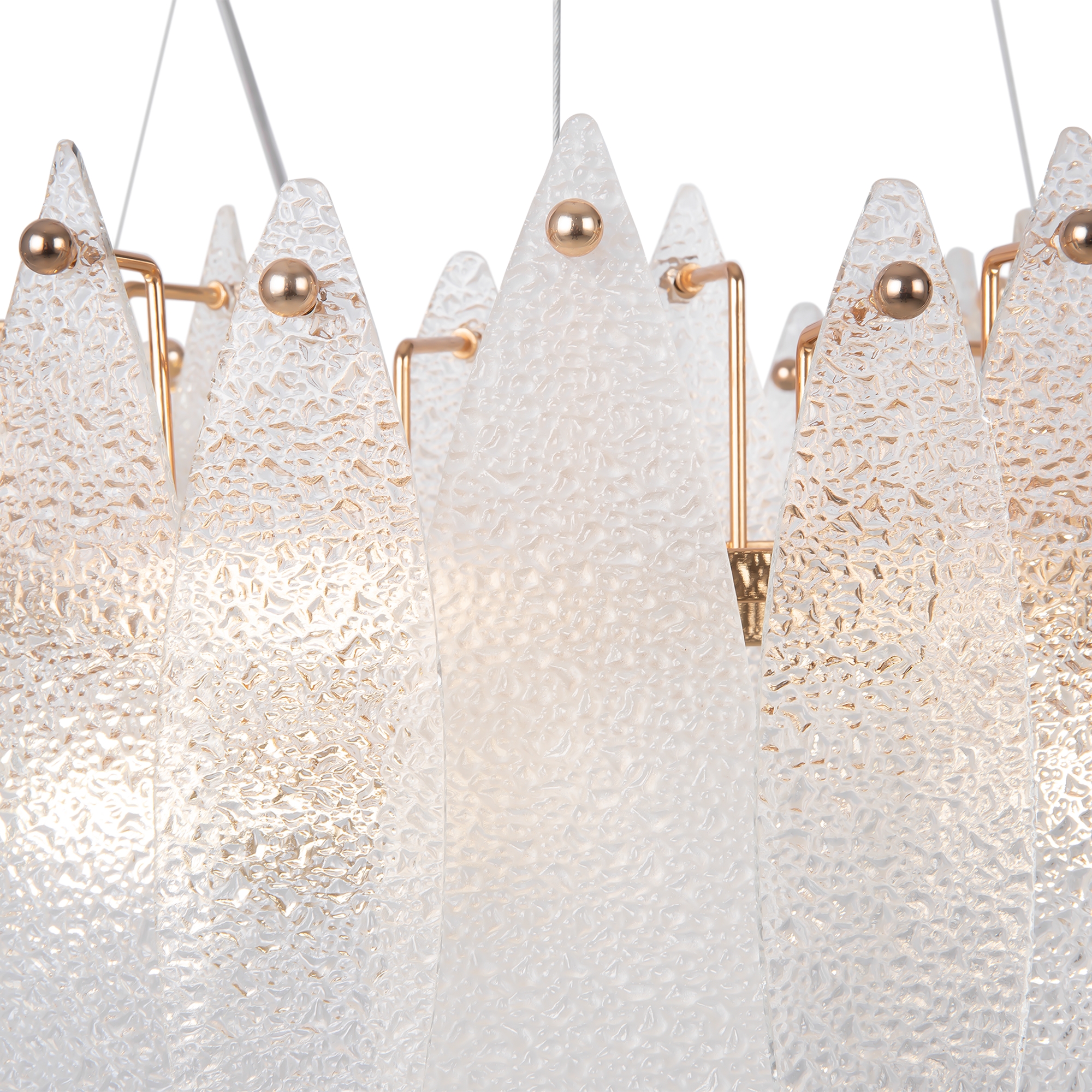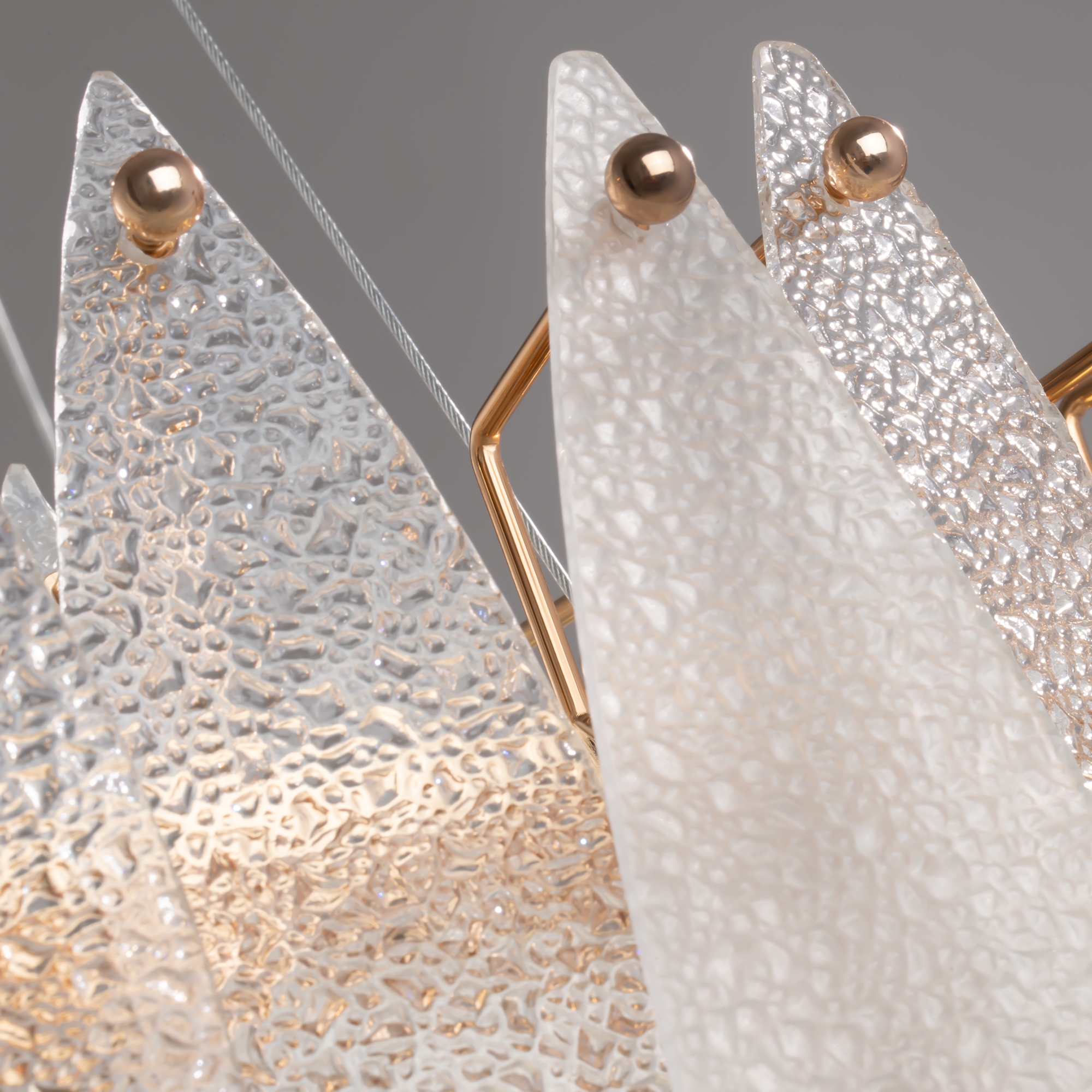 Запросить индивидуальное предложениеLucrecia – серия с выразительным характером и романтичным настроением. Визуально легкий силуэт составляют несколько рядов стеклянных подвесок, обрамляющих металлическую окружность. Обтекаемые контуры лепестков и живописная фактура «замороженного» стекла – тренд светодизайна. Металлические элементы, окрашенные в цвет французского золота, подчеркивают праздничное настроение модели. Расположенные вдоль окружности источники света обеспечивают равномерное распределение светового потока. Отражаясь и преломляясь в декоре, он образует красочную игру бликов и переливов. Длина тросов регулируется, что позволяет адаптировать подвесные светильники под любую высоту потолков. Серия включает бра и люстры на 5 и 8 ламп. С помощью такого светового ансамбля легко организовать комплексное освещение гостиной, спальни или столовой. Воздушный невесомый дизайн интегрируется в современные и классические стили – от фьюжн и шебби-шика до ар-деко. Материал арматуры – металл. Цвет – французское золото.