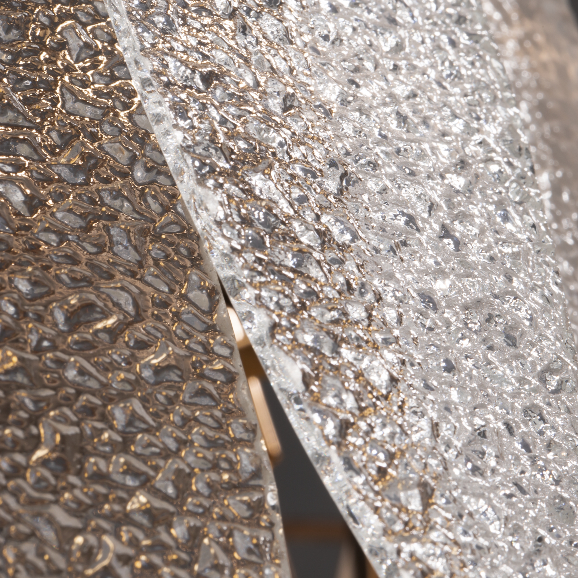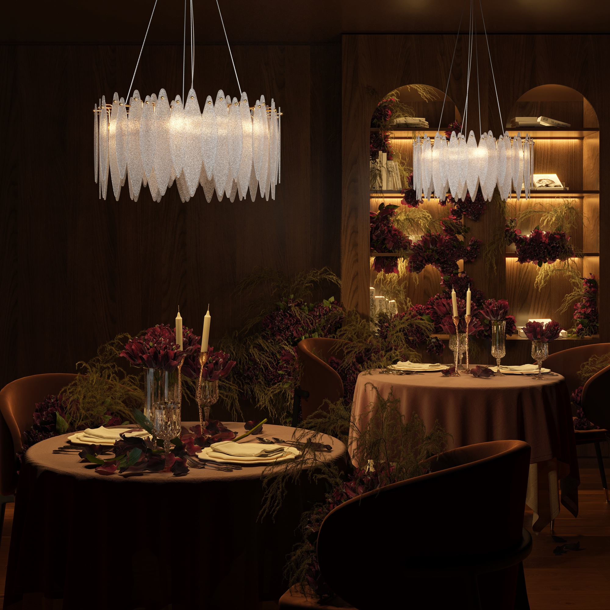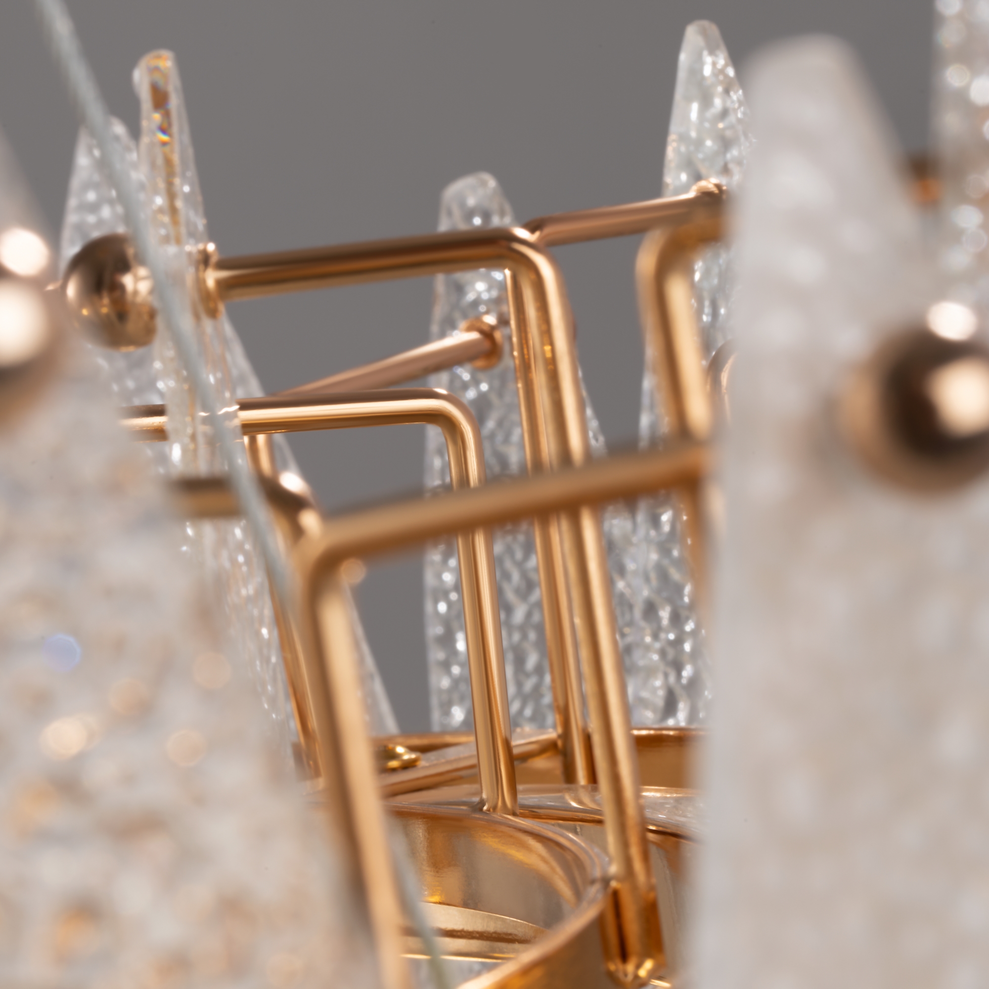 Запросить индивидуальное предложениеLucrecia – серия с выразительным характером и романтичным настроением. Визуально легкий силуэт составляют несколько рядов стеклянных подвесок, обрамляющих металлическую окружность. Обтекаемые контуры лепестков и живописная фактура «замороженного» стекла – тренд светодизайна. Металлические элементы, окрашенные в цвет французского золота, подчеркивают праздничное настроение модели. Расположенные вдоль окружности источники света обеспечивают равномерное распределение светового потока. Отражаясь и преломляясь в декоре, он образует красочную игру бликов и переливов. Длина тросов регулируется, что позволяет адаптировать подвесные светильники под любую высоту потолков. Серия включает бра и люстры на 5 и 8 ламп. С помощью такого светового ансамбля легко организовать комплексное освещение гостиной, спальни или столовой. Воздушный невесомый дизайн интегрируется в современные и классические стили – от фьюжн и шебби-шика до ар-деко. Материал арматуры – металл. Цвет – французское золото.