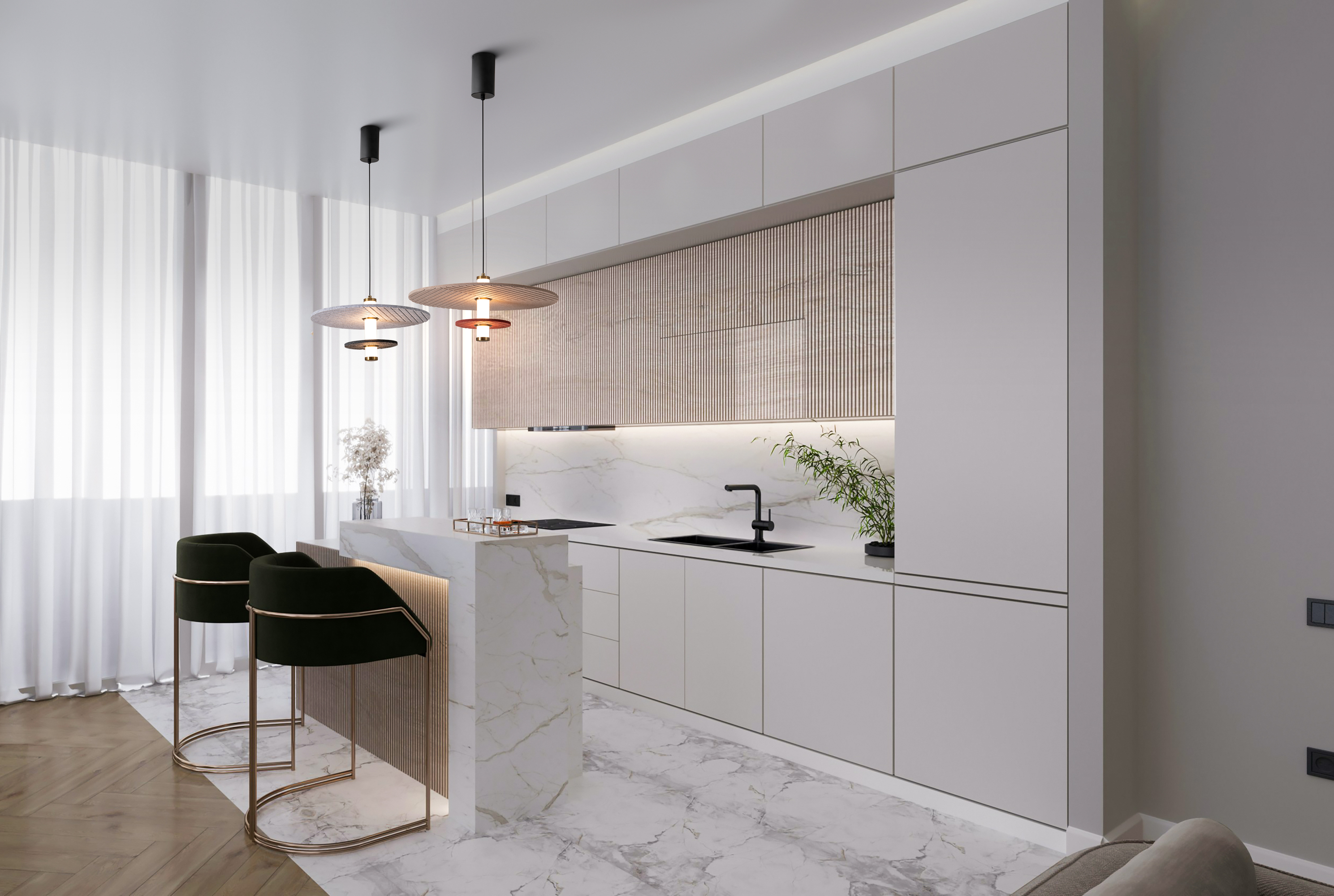 Запросить индивидуальное предложениеСерия Acoustic это светильники, созданные не только для комфортного освещения интерьера, но и для эффекта шумоподавления. Только представьте, что можно создать безупречное освещение и при этом адаптировать акустику помещения. Сердце серии — фетровые абажуры, которые предназначены для поглощения лишнего шума. Эта уникальная особенность ценится в шумных ресторанах, оживленных кафе или просторных офисах open space, превращая пространство в уютное место для комфортного общения и работы. Помимо фетровых абажуров, в дизайне серии Acoustic используется LED источник света в виде матовой трубки. Этот световой элемент равномерно рассеивает мягкий свет, создавая приятную атмосферу без резких теней и бликов, что особенно важно в пространствах, рассчитанных на длительное нахождение людей. Матовая поверхность трубки визуально смягчает яркость, что способствует улучшению восприятия света и создает расслабляющую обстановку. Дизайн светильников — это графичный рисунок на круглых декоративных элементах. Он создает иллюзию движения, словно бы звуковые волны застыли в воздухе. Двухъярусная конструкция плафонов добавляет глубины и объема. В серии представлены два трендовых сочетания: теплый бежевый в паре с терракотовым создает атмосферу уюта и тепла, напоминая о песчаных пляжах и закатах. Сочетание серого с графитом — воплощение городской элегантности, идеальное решение для современных минималистичных пространств. Серия Acoustic — выбор ценителей многофункциональности и эстетики.