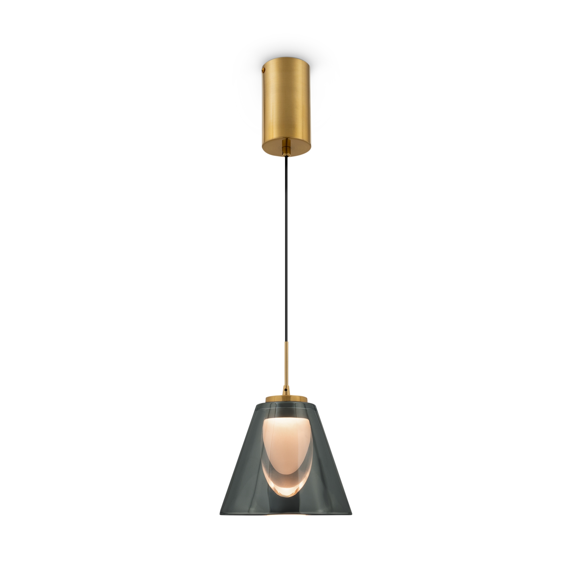 Запросить индивидуальное предложениеАрматура — металл, цвет — латунь. Плафоны из прозрачного стекла с дымчатым оттенком в форме овала, круга или конуса. Универсальный минималистичный дизайн позволяет составлять комбинации из нескольких подвесов. Регулируемая высота. Тренд «invisible light» - LED-источник света утоплен в основание плафона. Цветовая температура - 3000К.