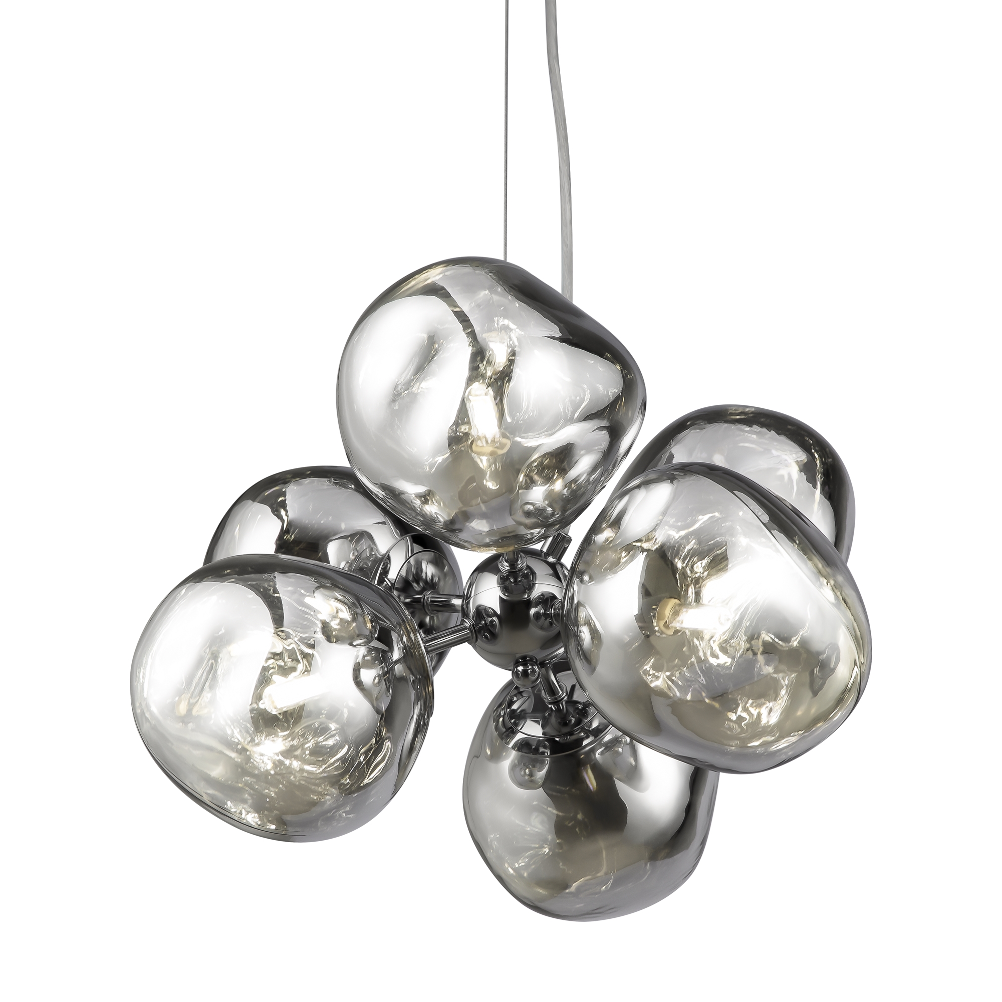 Запросить индивидуальное предложениеСерия светильников Ejection бросает вызов обыденности. Металлическая арматура, сверкающая хромированным блеском, служит основой для рельефных плафонов из искристого стекла с серебристым напылением и зеркальным эффектом. Необычная форма абажуров создает в пространстве мистические переливы света. Они, словно капли росы, застывшие в воздухе, отражают окружающий мир, создавая иллюзию бесконечного пространства. На гладкой поверхности стекла, как в зеркальном калейдоскопе, рождаются блики, наполняя пространство ореолами чистого света. Серия светильников Ejection — это безупречная гармония между металлом и стеклом. Все модели оснащены сменными источниками освещения, что обеспечивает гибкость в настройке световой атмосферы и долговечность использования.