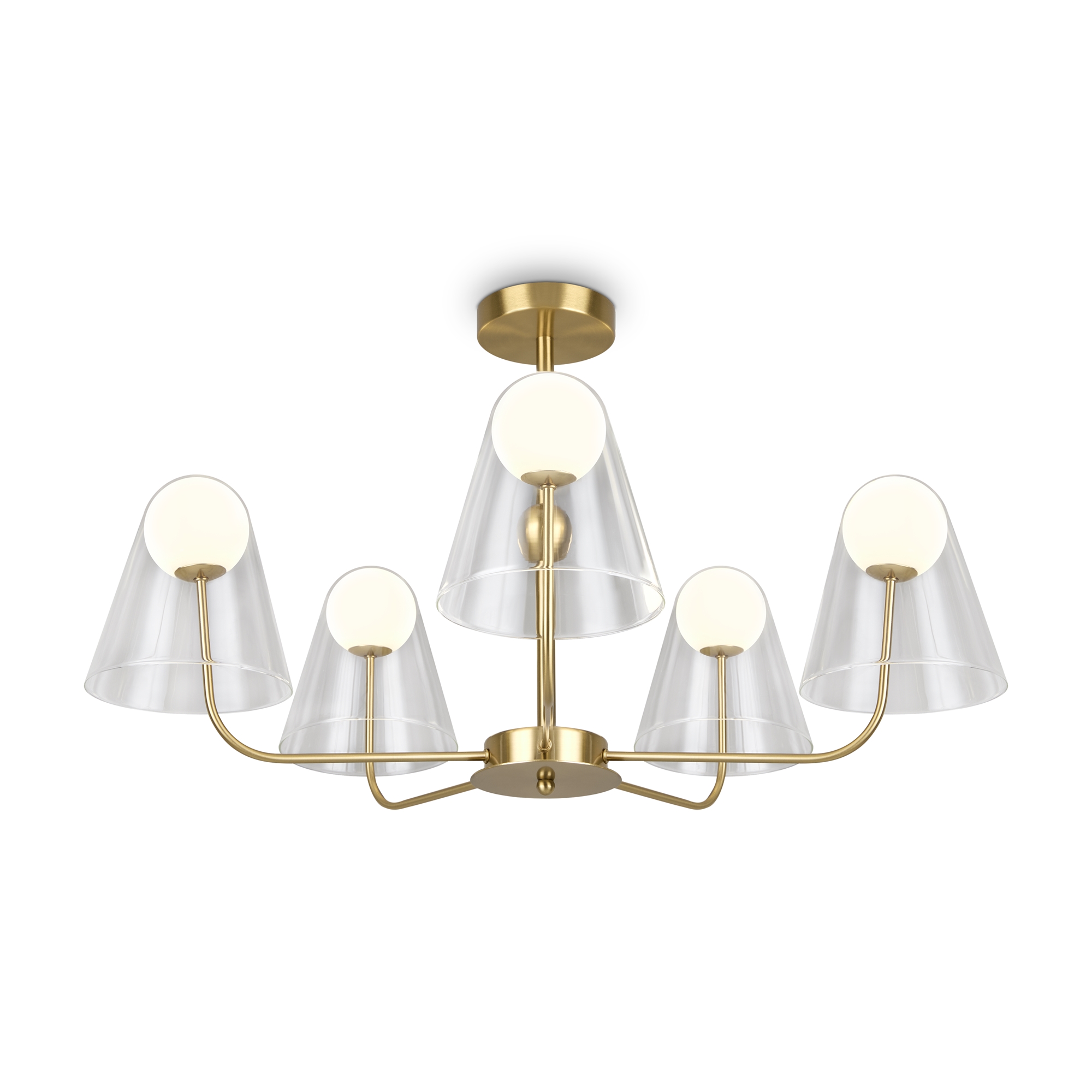 Запросить индивидуальное предложениеАрматура — металл, цвет — латунь. Двойные плафоны из стекла. Внешний — прозрачный в форме конуса плавно обрамляет контуры внутреннего матового сферического плафона. Свежий взгляд в дизайне на комбинацию форм и фактур. Источником света служит лампа с цоколем G9.