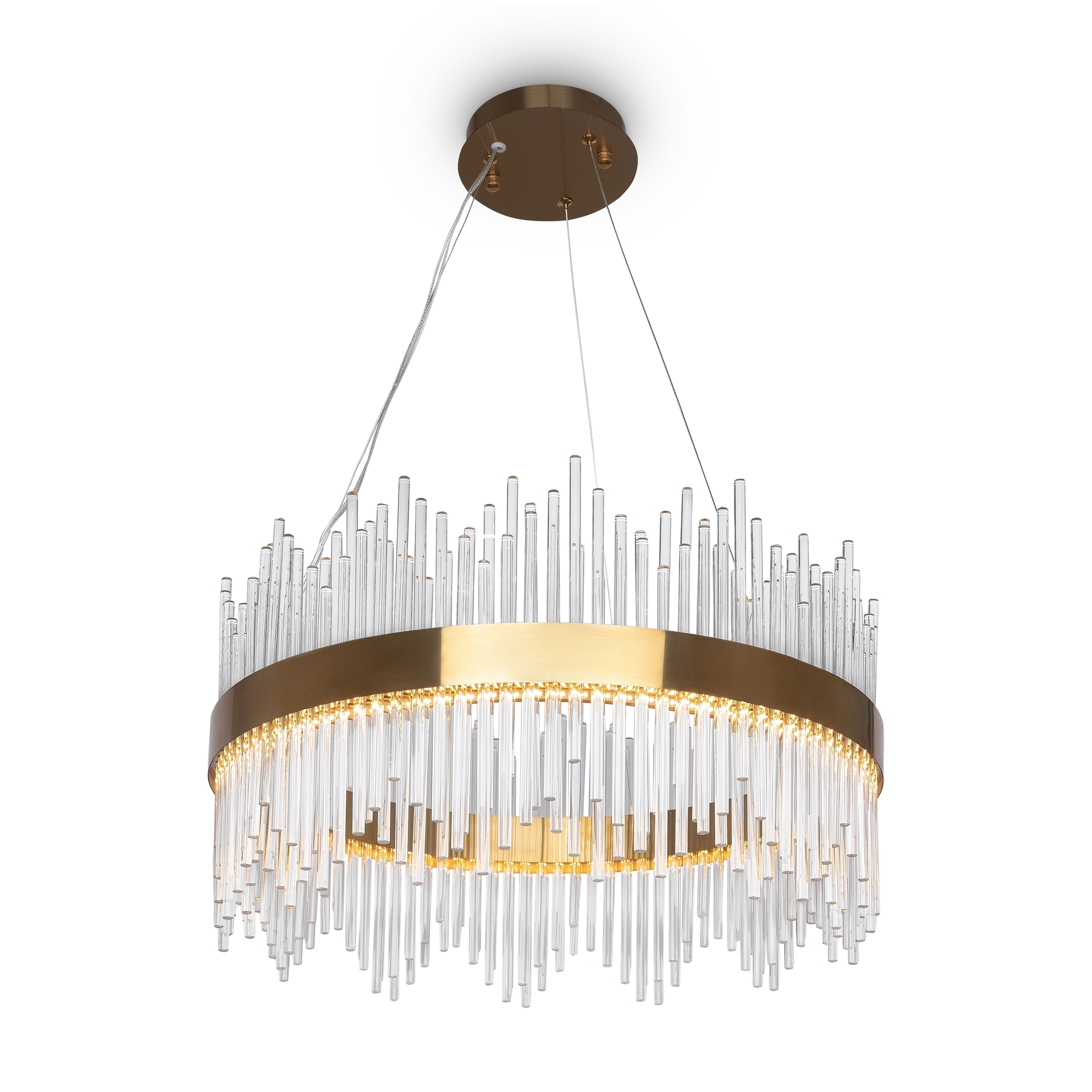 Запросить индивидуальное предложениеСовременный дизайн часто вдохновляется природными формами, а серия Chalice повторяет одну из них, формируя облик струящегося водопада света. Симметрично расположенный декор создает динамичный рисунок переливающихся волн, а лучи света, преломляясь в стеклянной поверхности, подчеркивают иллюзию движения. Металлическая арматура окрашена в золотой оттенок, который легко интегрируется как в современные, так и в классические обстановки. Визуально незаметные тросы поддерживают идею невесомости композиции, а LED-источники света обеспечивают яркое освещение. Три подвесные люстры различного диаметра и мощности позволяют выбрать оптимальный вариант с учетом размеров помещения. Серия займет достойное место в гостиных, помещениях HoReCa, выполненных в стиле ар-деко, модерн, неоклассика, эклектика.