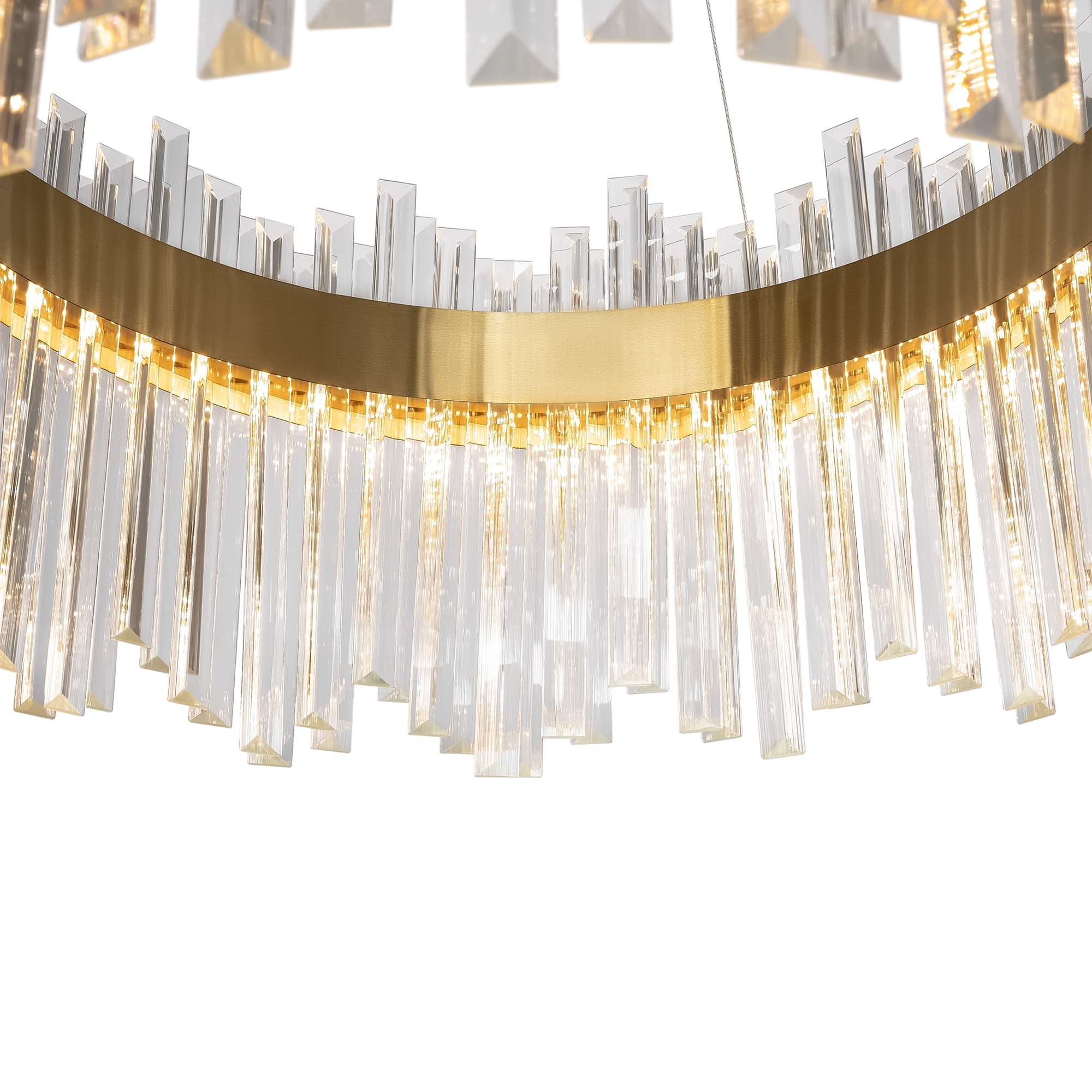 Запросить индивидуальное предложениеСовременный дизайн часто вдохновляется природными формами, а серия Chalice повторяет одну из них, формируя облик струящегося водопада света. Симметрично расположенный декор создает динамичный рисунок переливающихся волн, а лучи света, преломляясь в стеклянной поверхности, подчеркивают иллюзию движения. Металлическая арматура окрашена в золотой оттенок, который легко интегрируется как в современные, так и в классические обстановки. Визуально незаметные тросы поддерживают идею невесомости композиции, а LED-источники света обеспечивают яркое освещение. Три подвесные люстры различного диаметра и мощности позволяют выбрать оптимальный вариант с учетом размеров помещения. Серия займет достойное место в гостиных, помещениях HoReCa, выполненных в стиле ар-деко, модерн, неоклассика, эклектика.