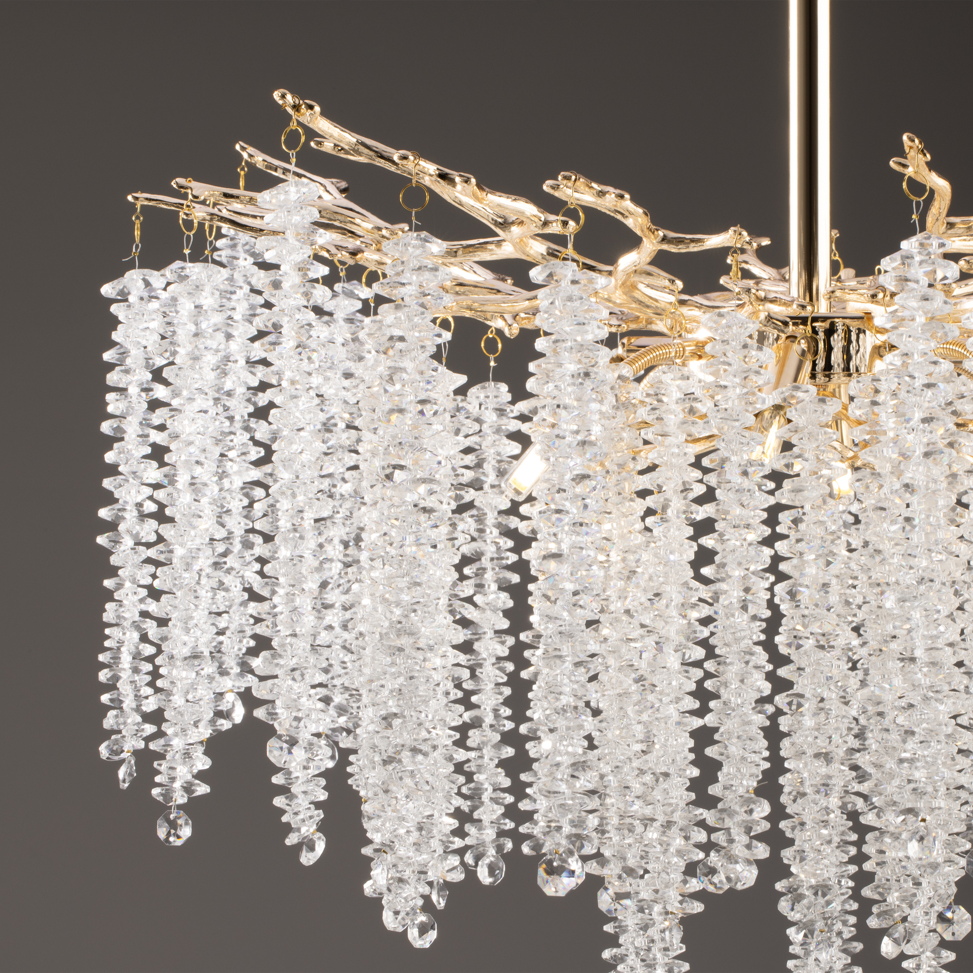 Запросить индивидуальное предложениеМатериалы арматуры —металл, цвет — золото. Хрустальные декоративные элементы напоминают капельки - создают глубокие переливы света. Дизайн в трендовой растительной тематике. Источник света — лампа с цоколем G9 и с поворотной функцией.