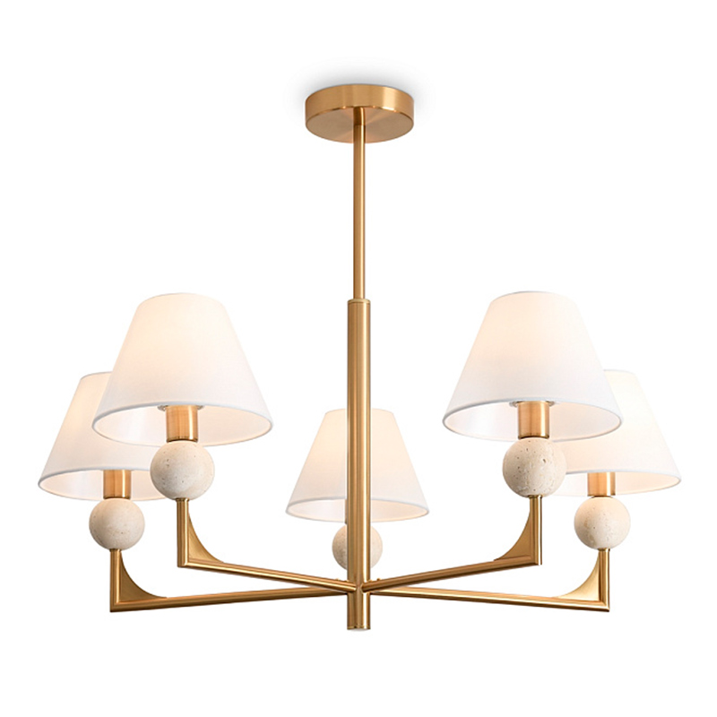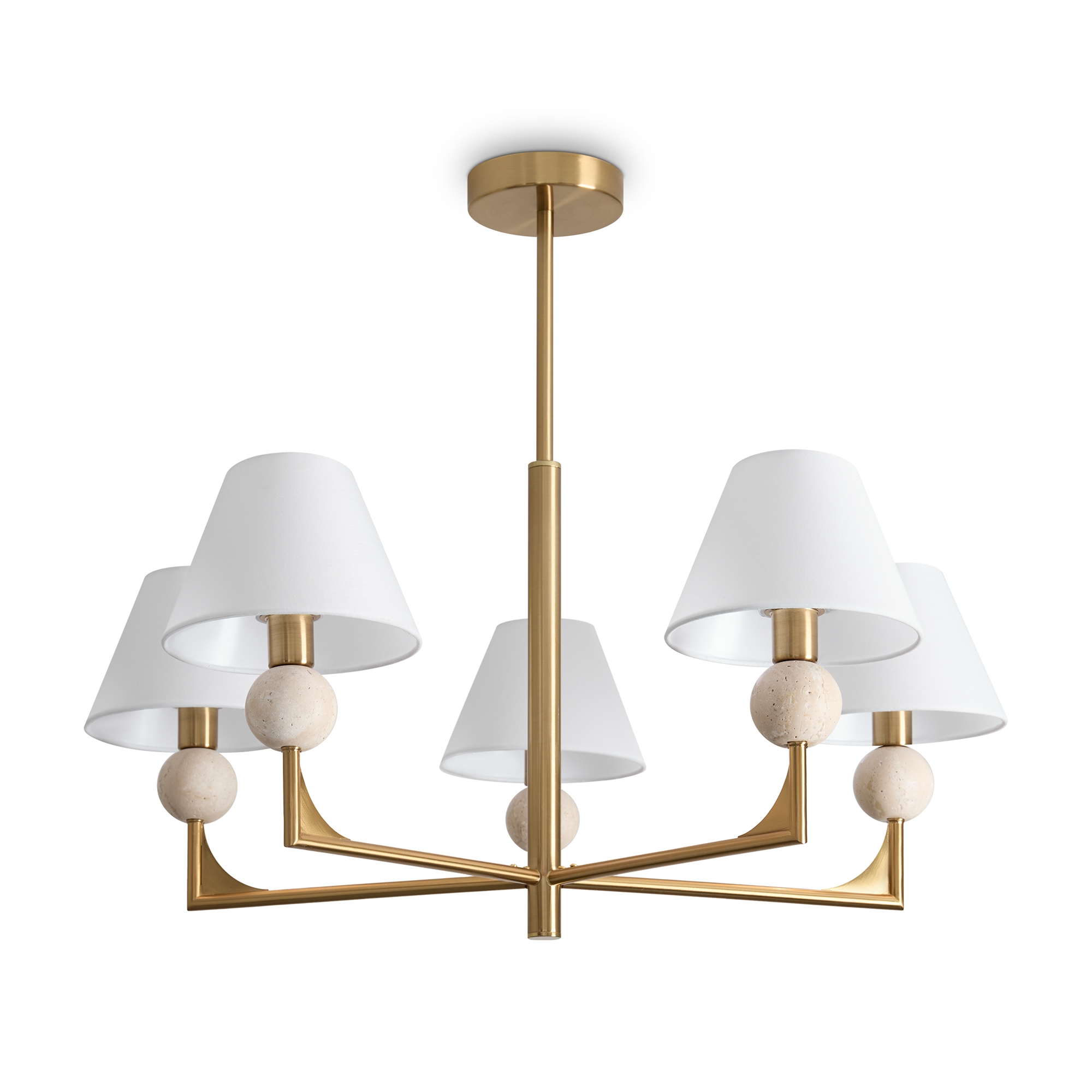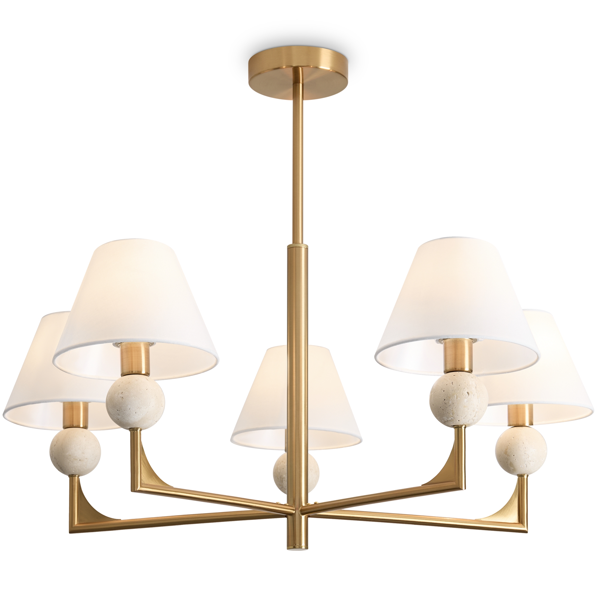 Запросить индивидуальное предложениеВ светильниках серии Riley каждая деталь рассказывает историю о союзе природных материалов и классической эстетики. Латунная металлическая арматура служит изящным обрамлением для элементов из травертина — камня с богатой текстурой и историей, который веками использовался в архитектуре роскошных дворцов и вилл. Белоснежные тканевые абажуры потолочных и настенных моделей создают мягкое, обволакивающее освещение. Серия Riley воплощает баланс фактур: благородная латунь, натуральный травертин и нежная ткань абажуров сливаются в единую композицию, создавая в классических пространствах атмосферу утонченной элегантности.