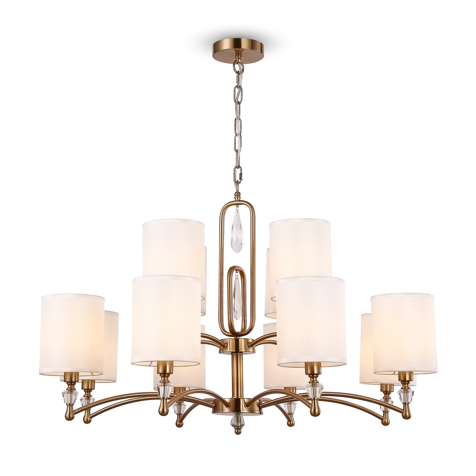 Запросить индивидуальное предложениеКлассика – это любовь, которая длится вечно. В современных интерпретациях традиционные формы обретают легкость и лаконичность, но по-прежнему остаются синонимом роскоши и благородства. Достаточно взглянуть на серию Riverside, чтобы убедиться в этом. Первое, на что стоит обратить внимание – это облегченная конструкция в форме арки без традиционного центрального стержня. За счет этого композиция кажется воздушной, а элегантный хрустальный элемент добавляет ей особый шарм. Металлическая арматура с изящно изогнутыми рожками предлагает 2 цветовых решения: латунь и никель. Тканевые матовые абажуры белоснежного оттенка завершают цельный образ и служат естественным рассеивателем для источников света. Используйте светильник в гостиных, спальнях, столовых и прихожих, выполненных в стиле неоклассика, классика, ар-деко, модерн. Широкая линейка предлагает различные типы светильников для комплексной зональной и основной подсветки: подвесные люстры на 12, 8, 7 и 5 плафонов, бра, настольную лампу и торшер.