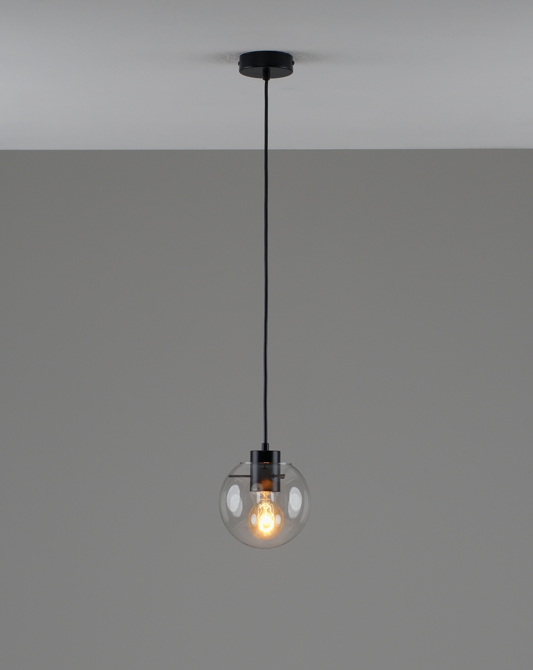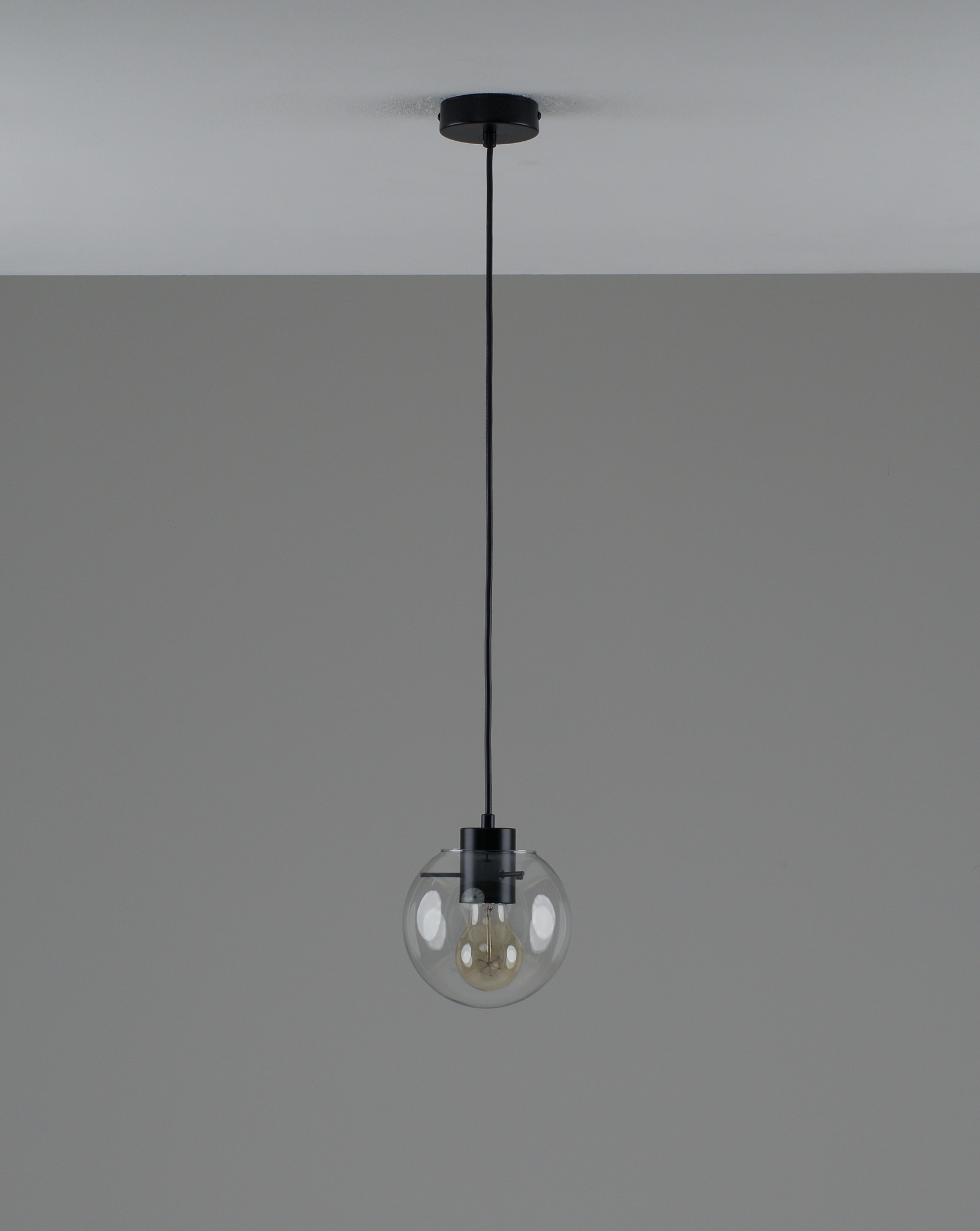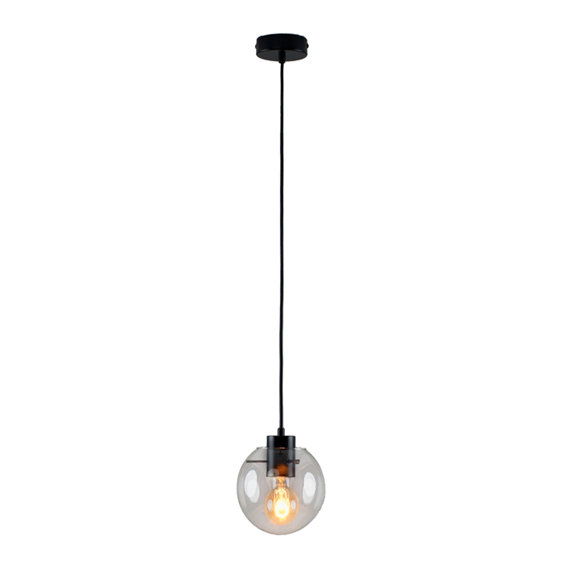Запросить индивидуальное предложениеПодвесной светильник в современном стиле с плафоном из прозрачного стекла и арматурой черного цвета. Диаметр стеклянного плафона 15 см, в качестве источника света могут быть использованы лампы накаливания или LED с цоколем Е27.