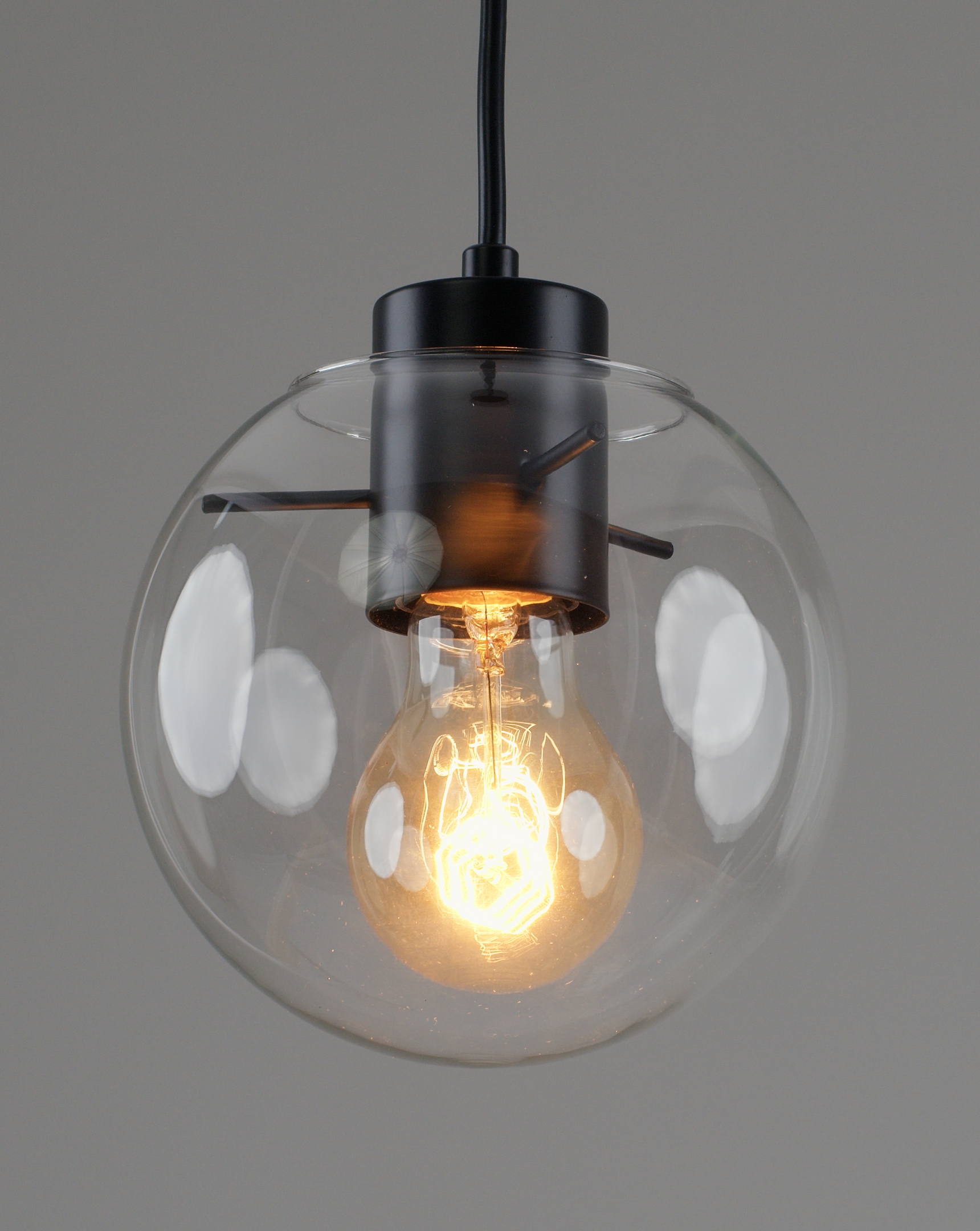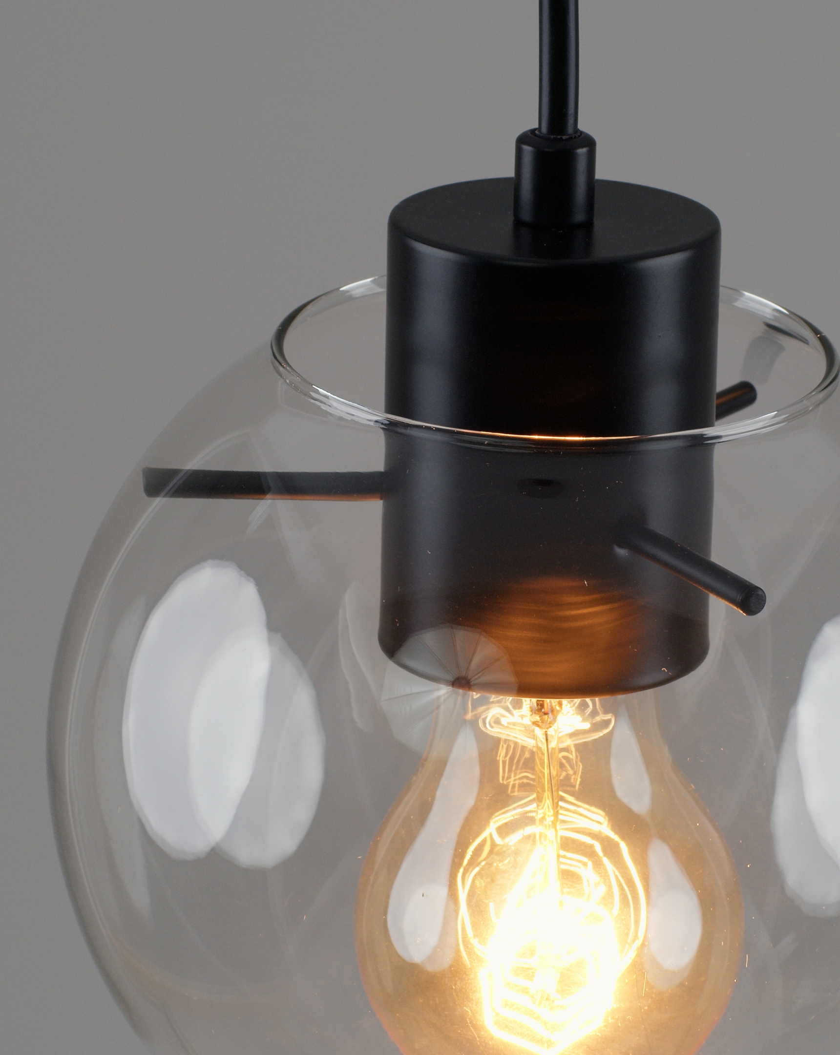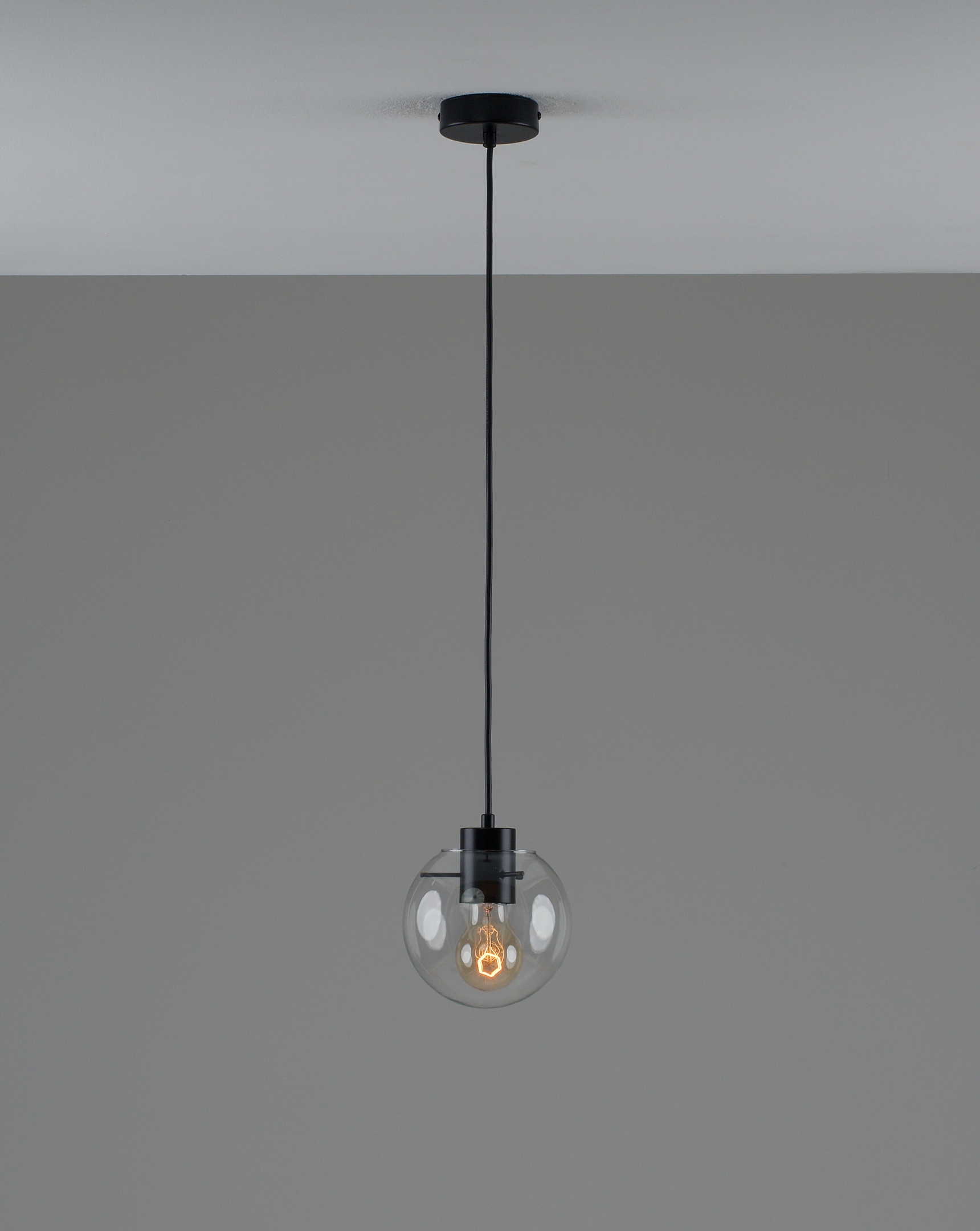 Запросить индивидуальное предложениеПодвесной светильник в современном стиле с плафоном из прозрачного стекла и арматурой черного цвета. Диаметр стеклянного плафона 15 см, в качестве источника света могут быть использованы лампы накаливания или LED с цоколем Е27.