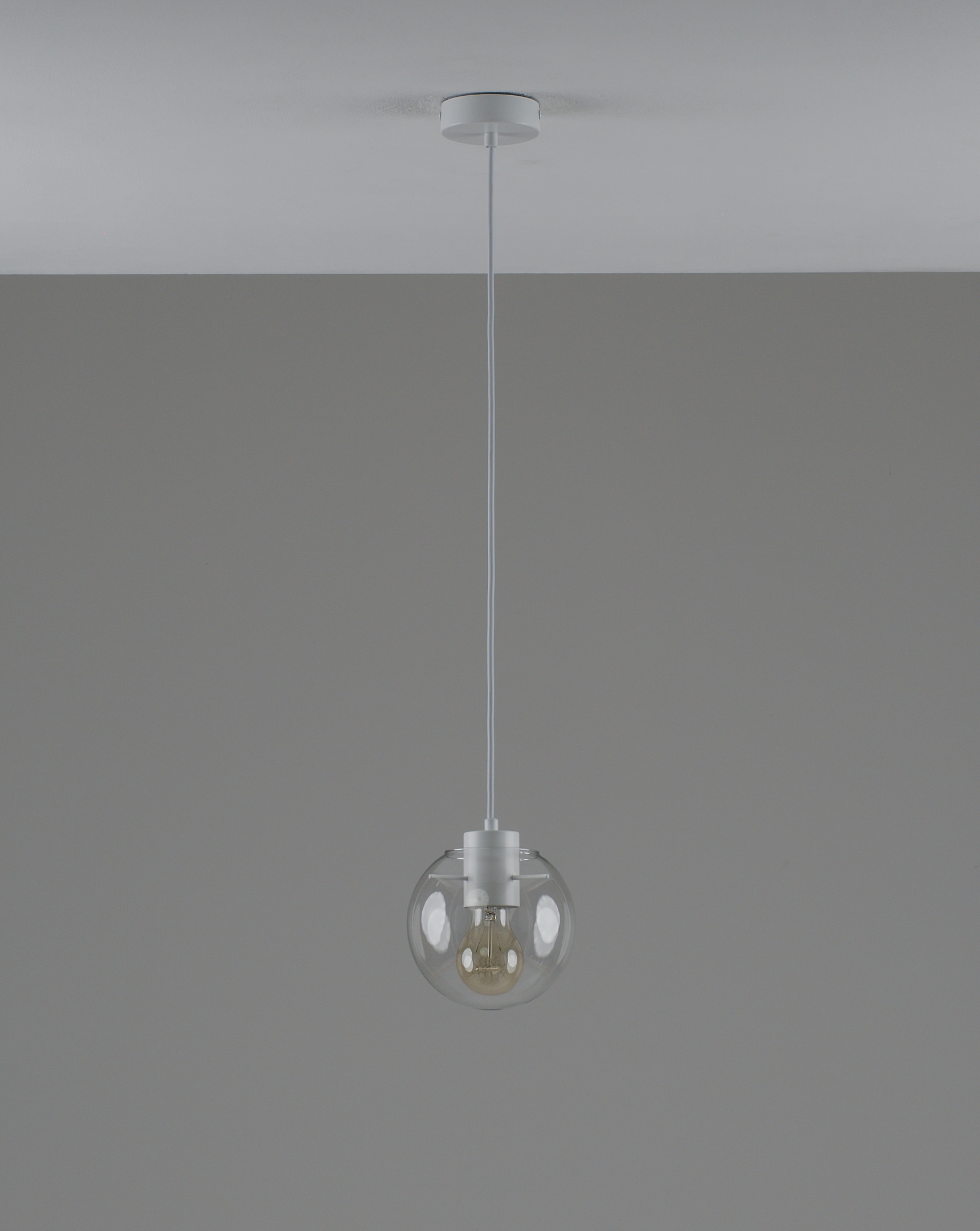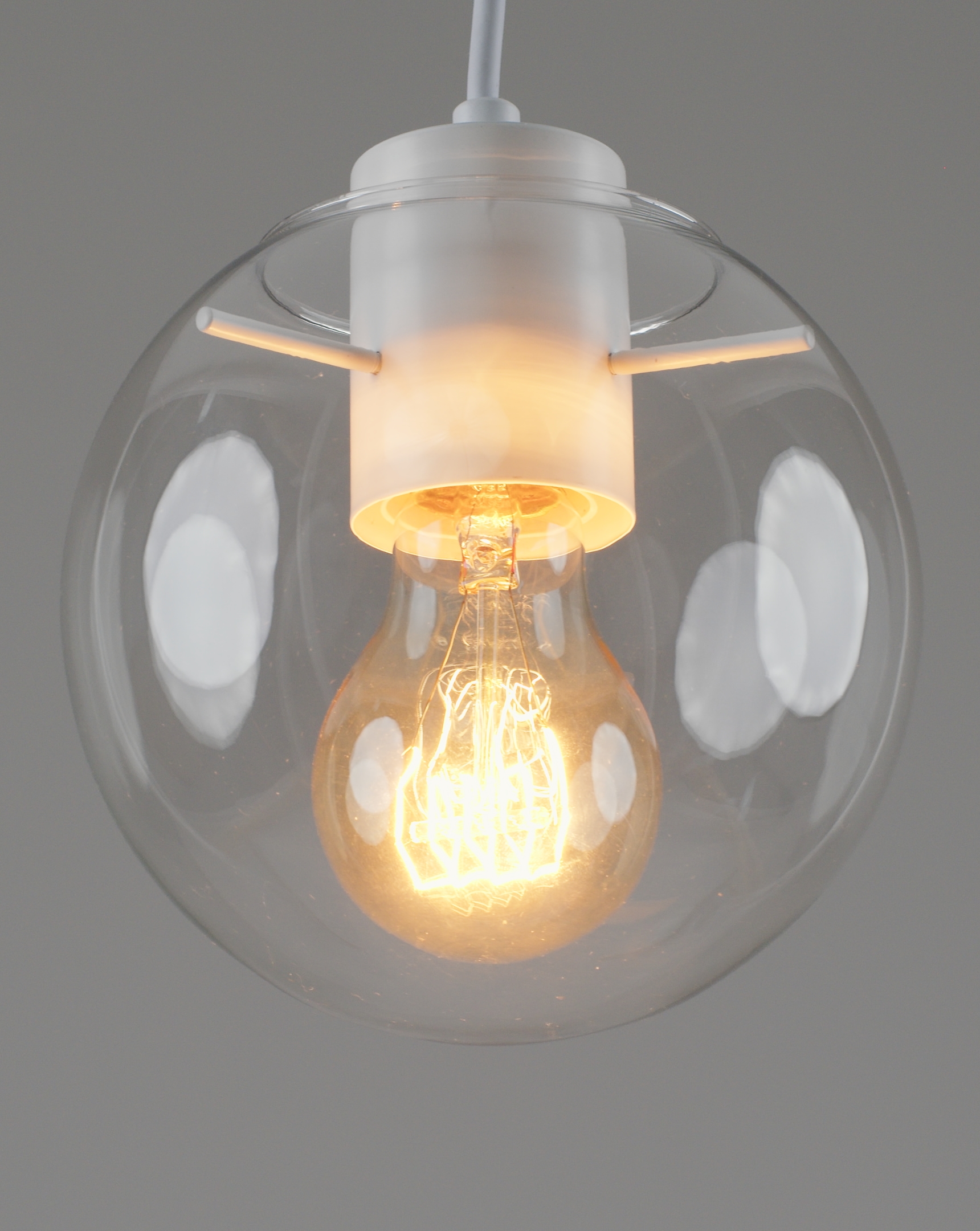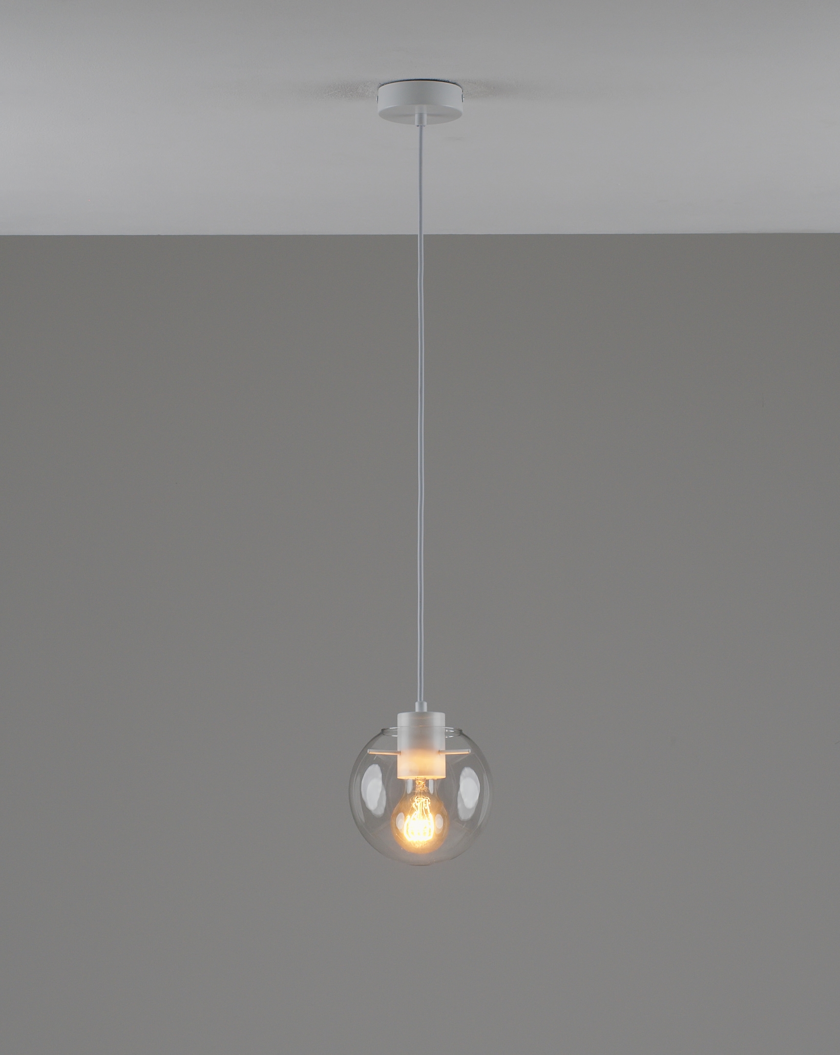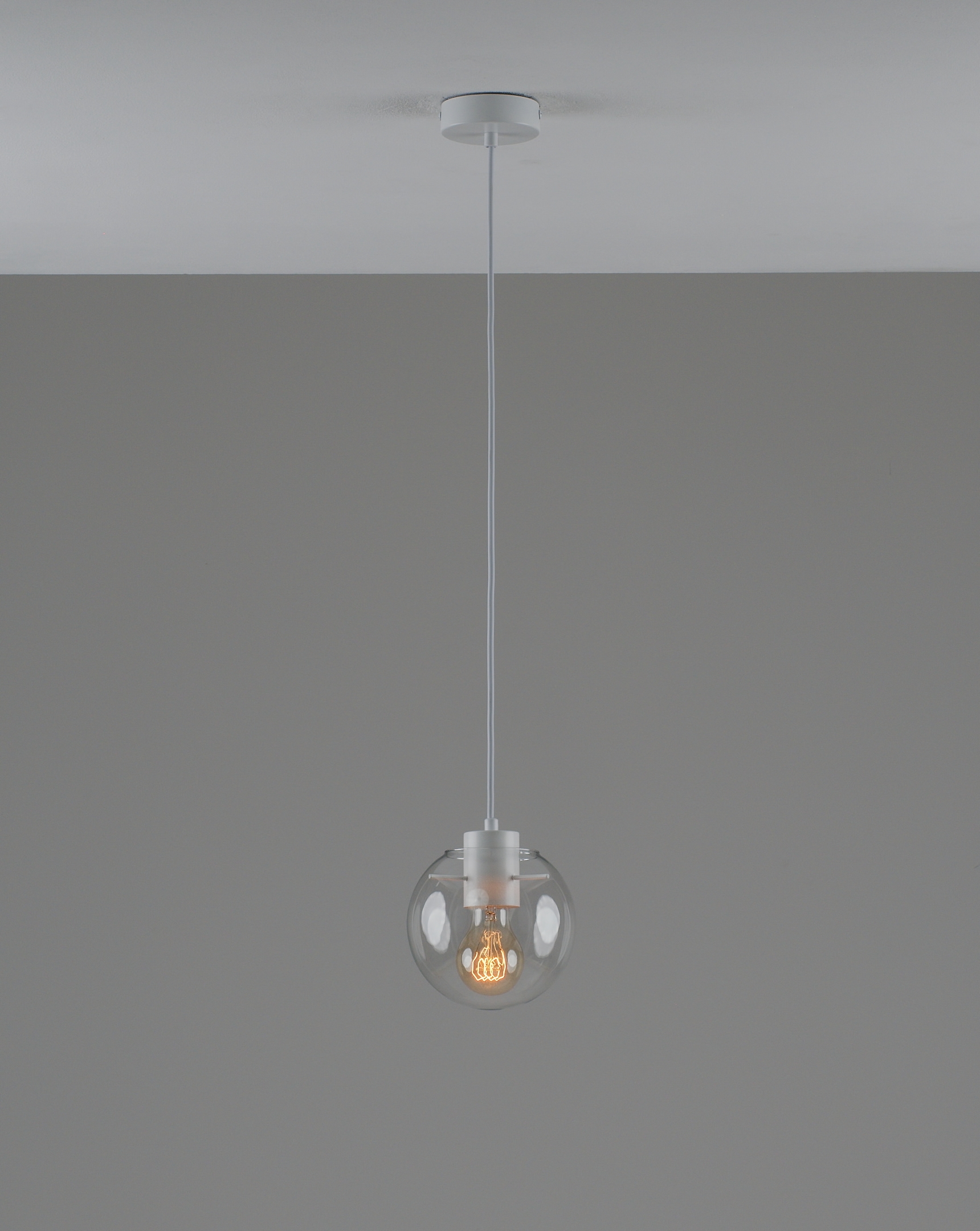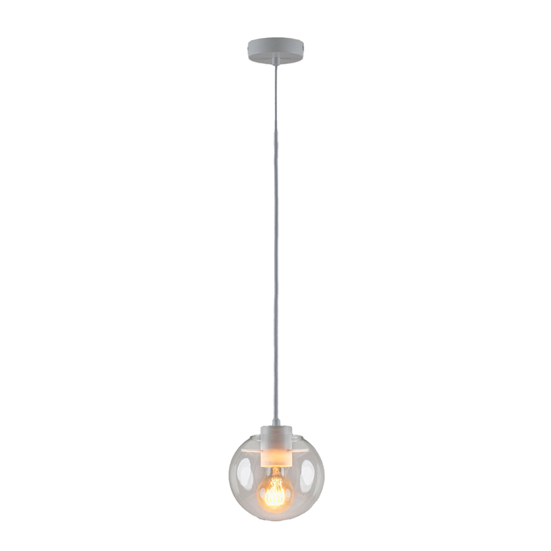 Запросить индивидуальное предложениеПодвесной светильник в современном стиле с плафоном из прозрачного стекла и арматурой белого цвета. Диаметр стеклянного плафона 15 см, в качестве источника света могут быть использованы лампы накаливания или LED с цоколем Е27.
