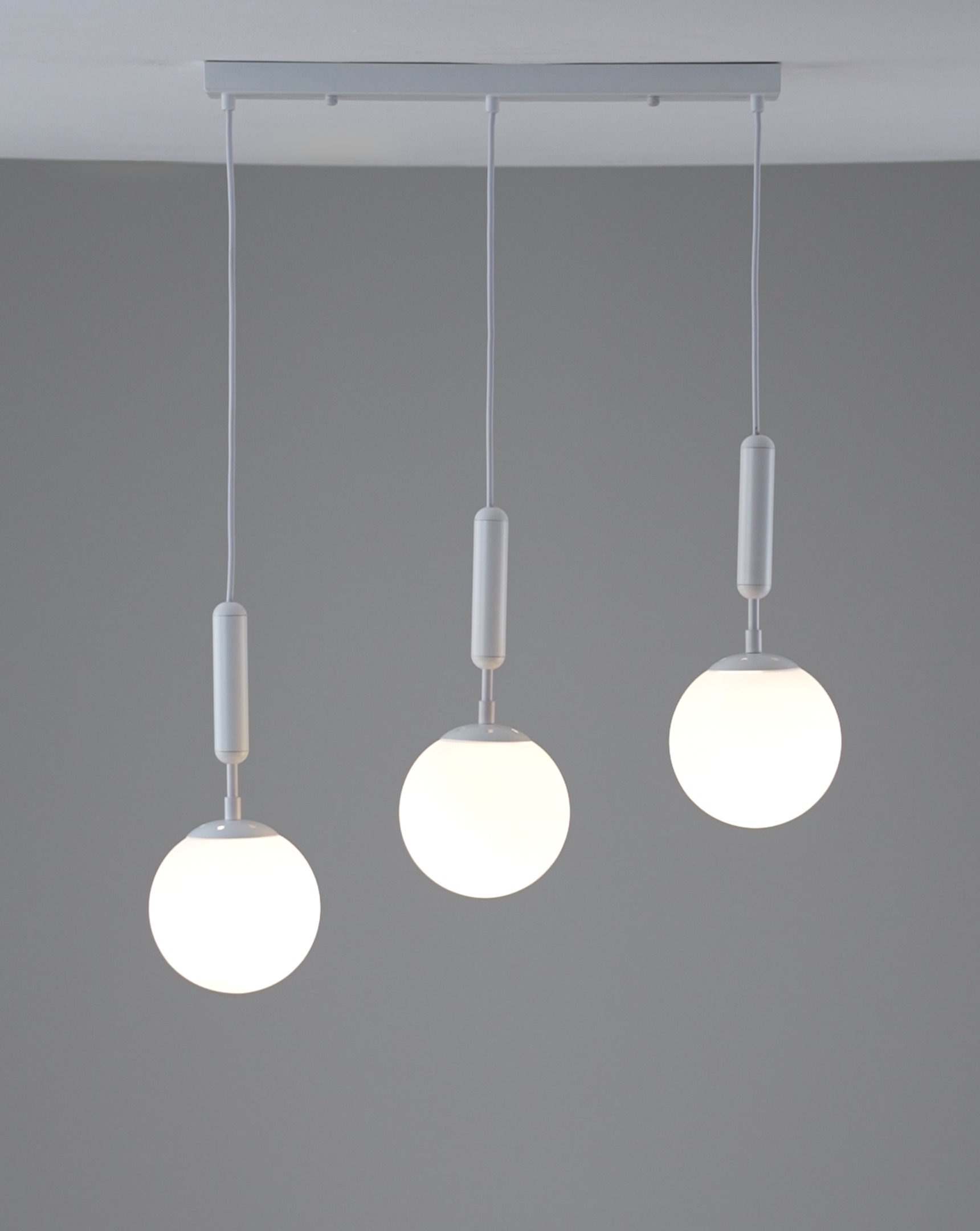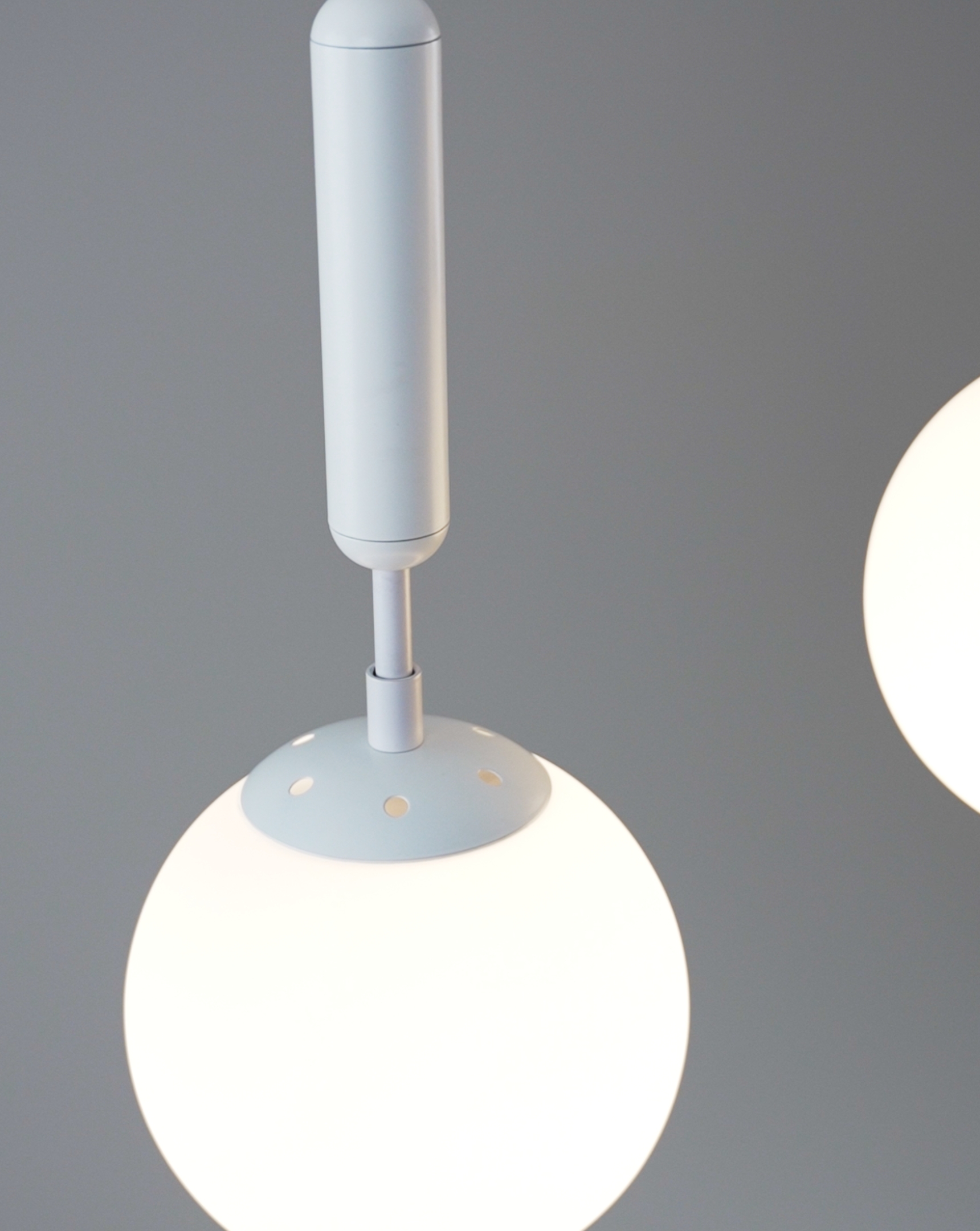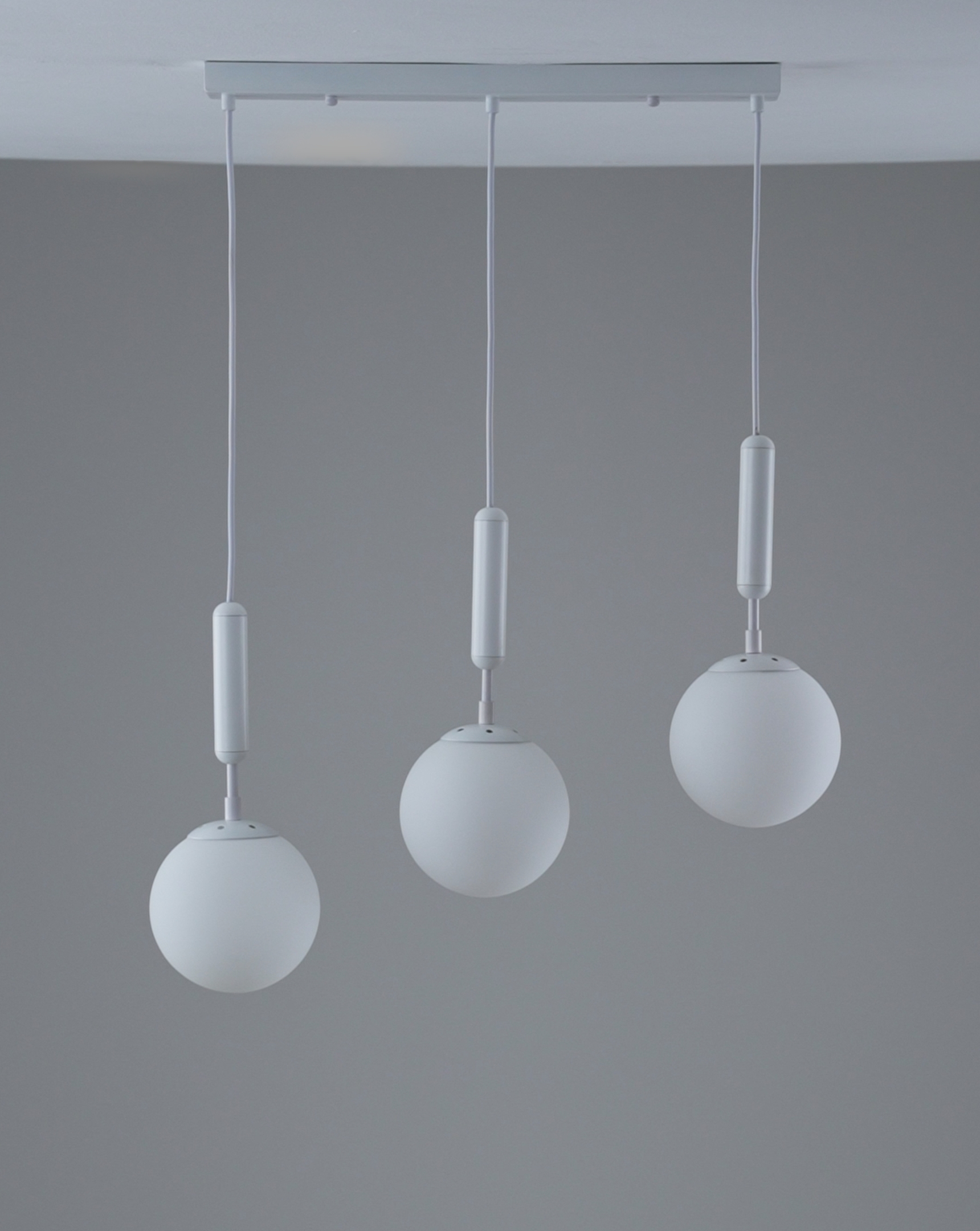 Запросить индивидуальное предложениеПодвесной светильник из коллекции Scrumbel. Металлический каркас белого цвета гармонично сочетается с матовыми плафонами в форме шара. Высота светильника 120 см., отличное решение для высоких потолков. Площадь освещения составляет 9 м². Данная модель сможет дополнить любой современный интерьер дома и подойдёт для освещения спальни, кухни, холла или гостиной комнаты. При монтаже светильника, плафоны можно отрегулировать по высоте.