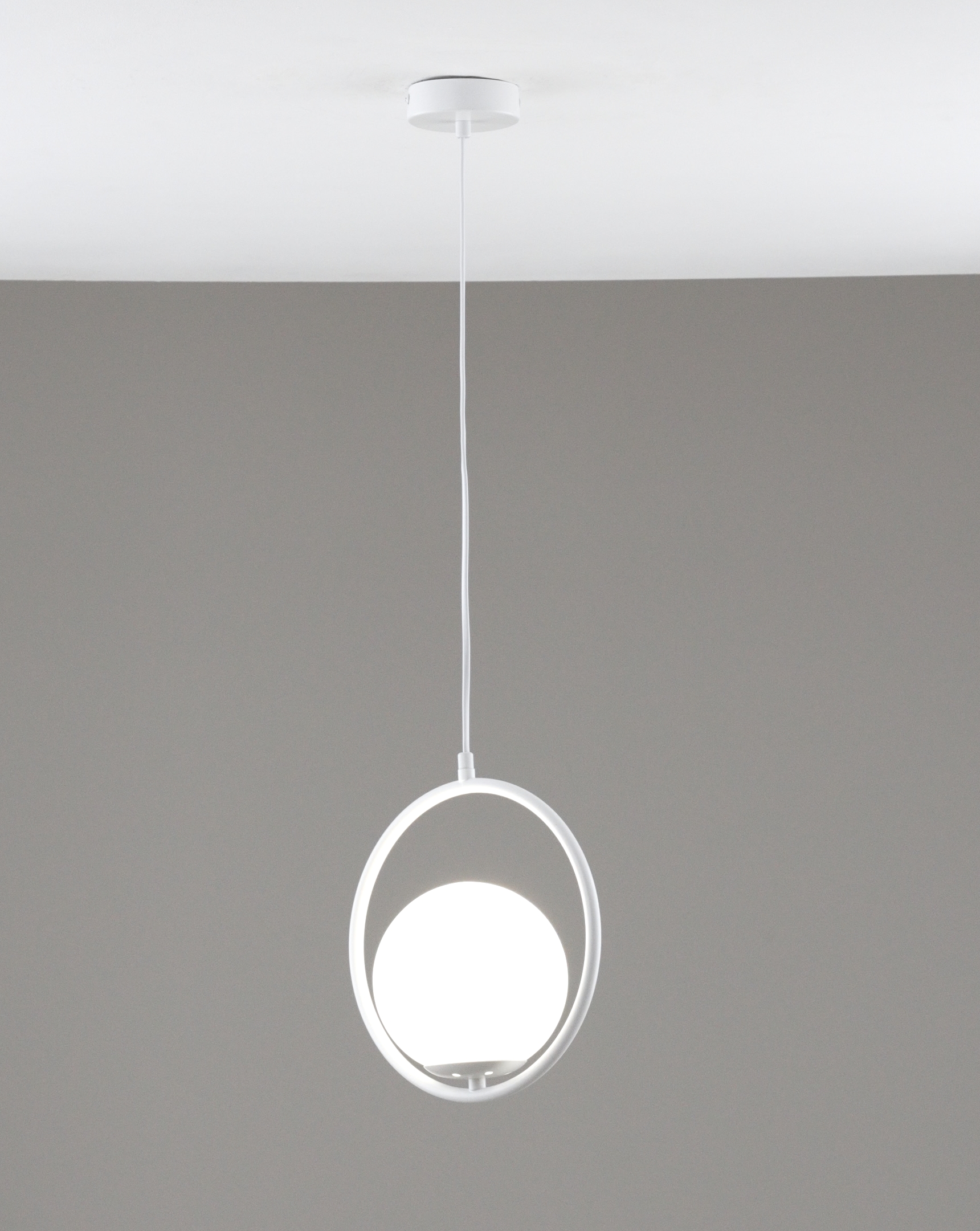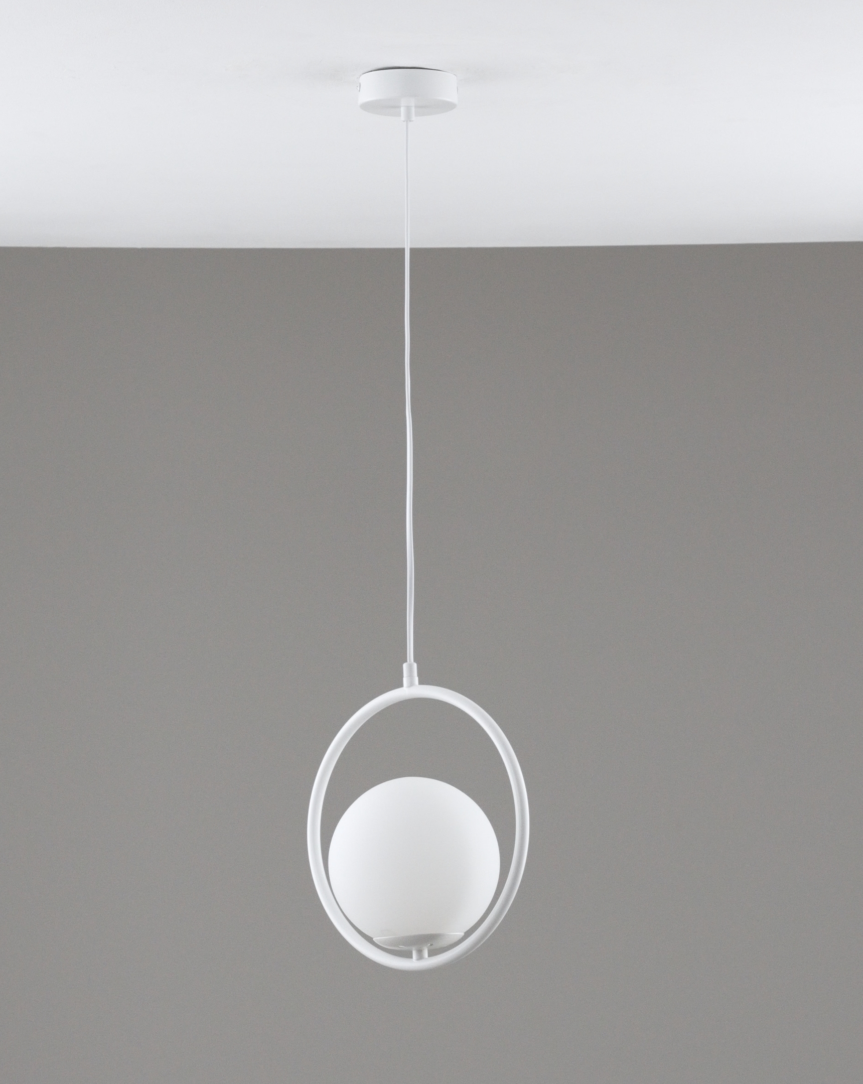 Каркас выполнен из металла в простом и лаконичном стиле, гармонично сочетается со сферичным плафоном. Конструкция надежно крепится к потолку на планку.