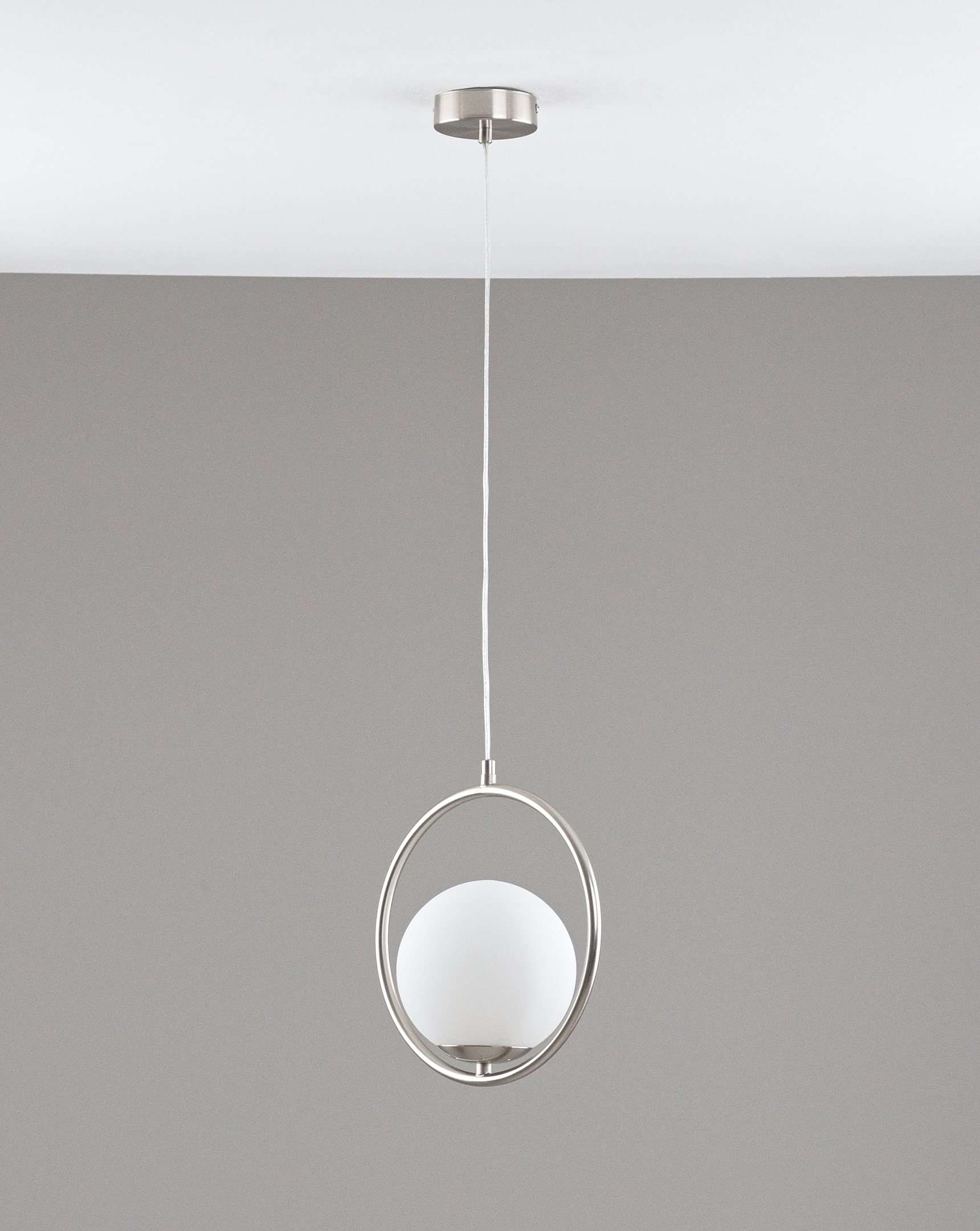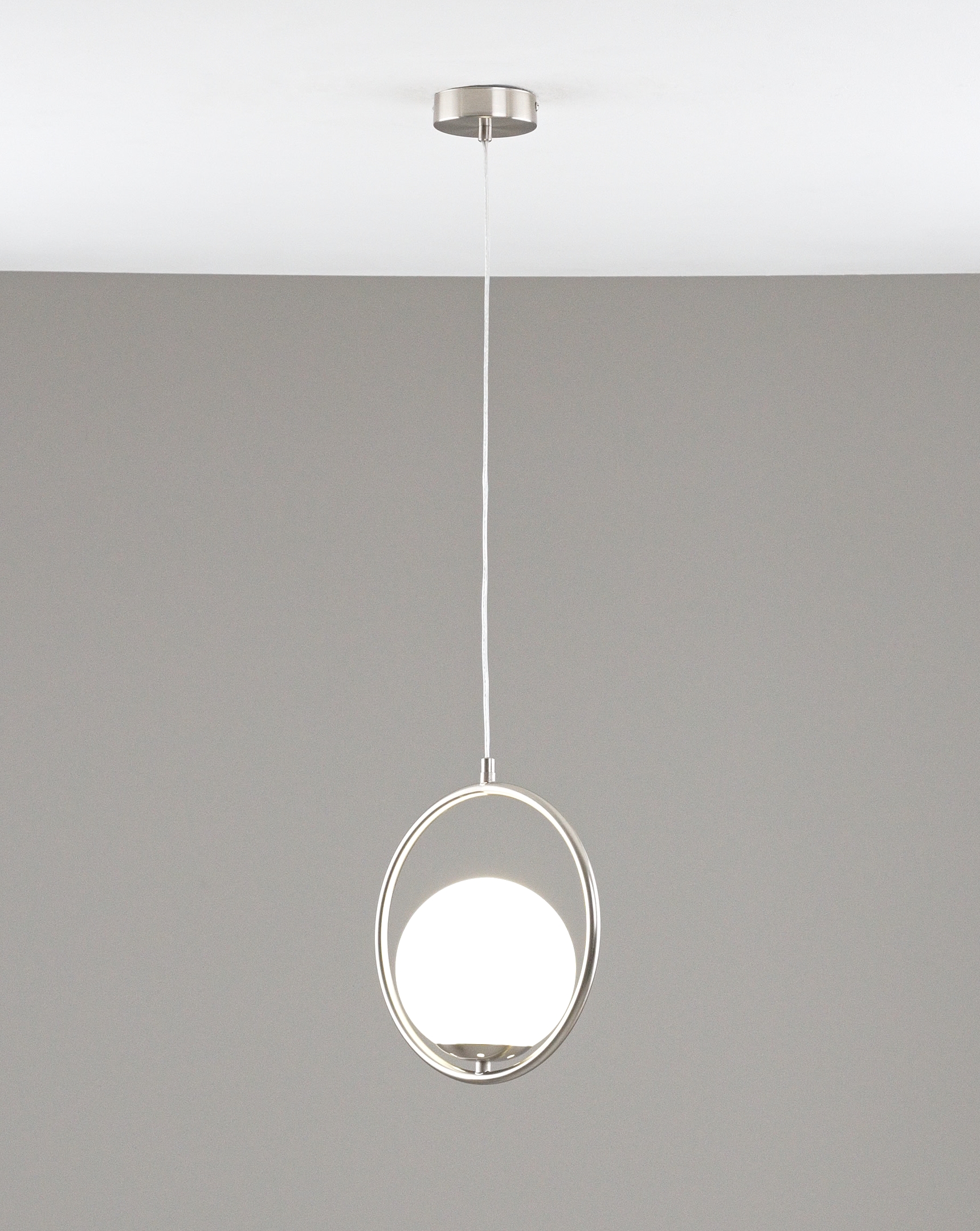 Стеклянный матовый плафон мягко рассеивает свет для комфортного освещения. В качестве источника света подойдут лампы с цоколем E27.