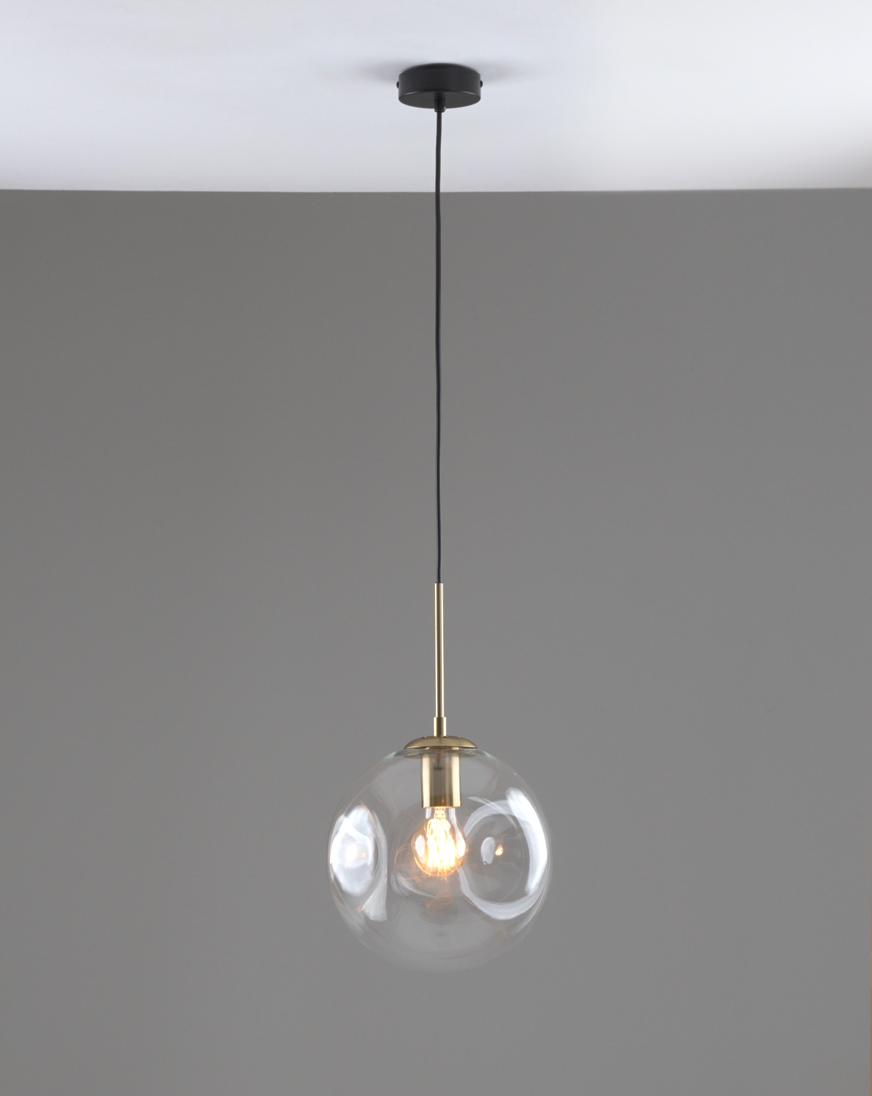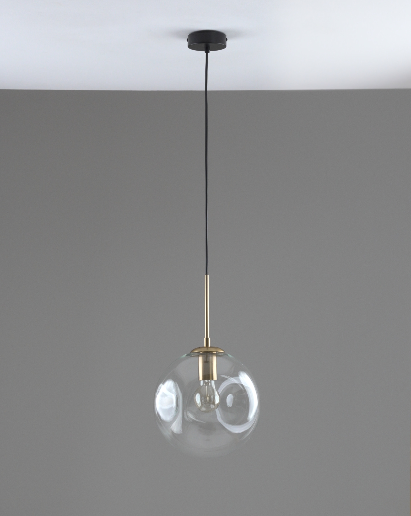 Запросить индивидуальное предложениеСовременный подвесной светильник Amo. Стеклянный плафон диаметром 25 см обеспечит комфортное и оригинальное освещение. В качестве источника света подойдут лампы накаливания или LED с цоколем Е27. Светильник надежно и просто крепится к потолку с помощью крепежной планки. Небольшая площадь освещения в 3 м² идеально подойдёт для кухни, прихожей, обеденной зоны и дополнит любой интерьер в современном силе. При монтаже светильника, плафон можно отрегулировать по высоте.