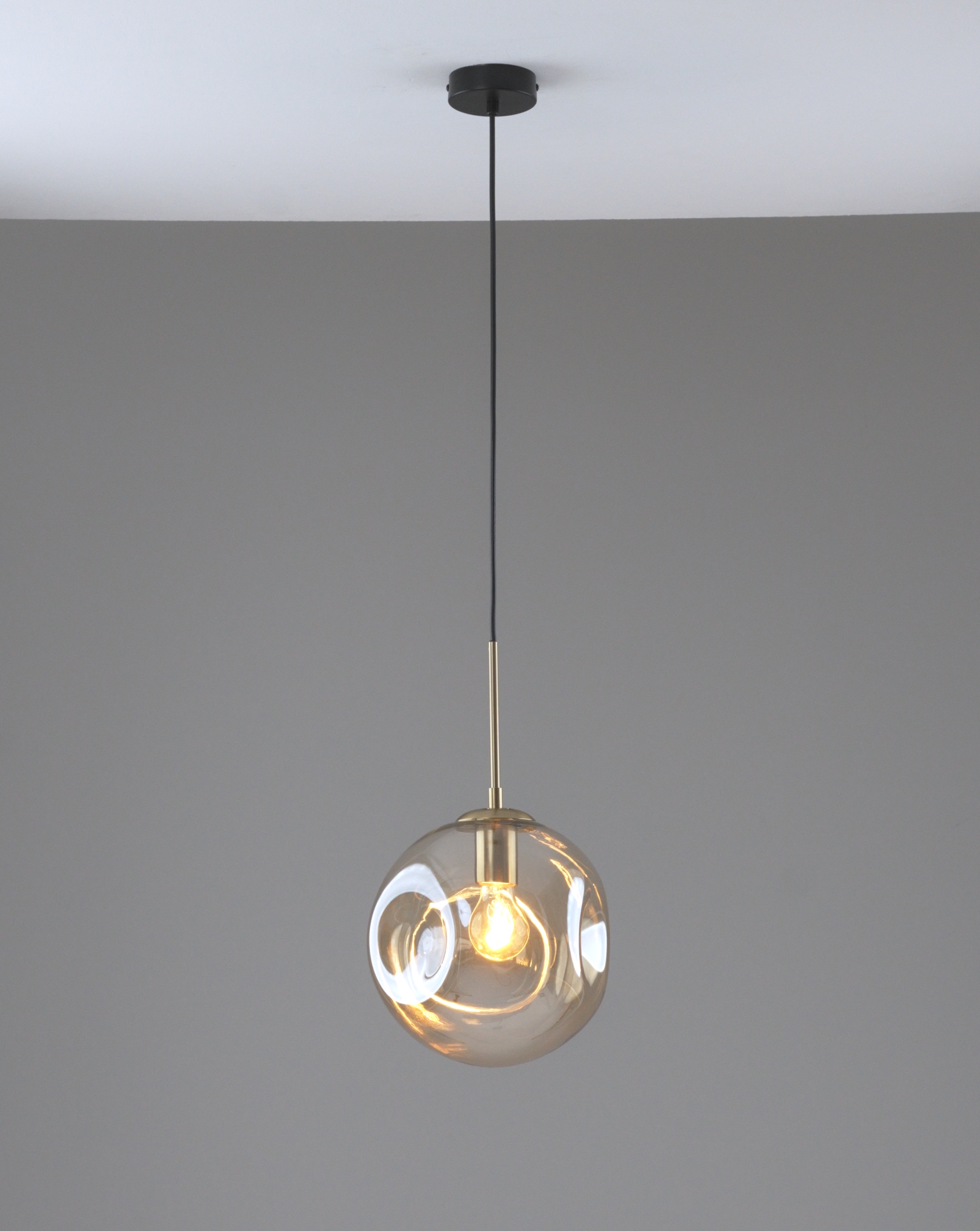 Запросить индивидуальное предложениеСовременный подвесной светильник Amo. Стеклянный плафон диаметром 25 см обеспечит комфортное и оригинальное освещение. В качестве источника света подойдут лампы накаливания или LED с цоколем Е27. Светильник надежно и просто крепится к потолку с помощью крепежной планки. Небольшая площадь освещения в 3 м² идеально подойдёт для кухни, прихожей, обеденной зоны и дополнит любой интерьер в современном силе. При монтаже светильник можно отрегулировать по высоте.