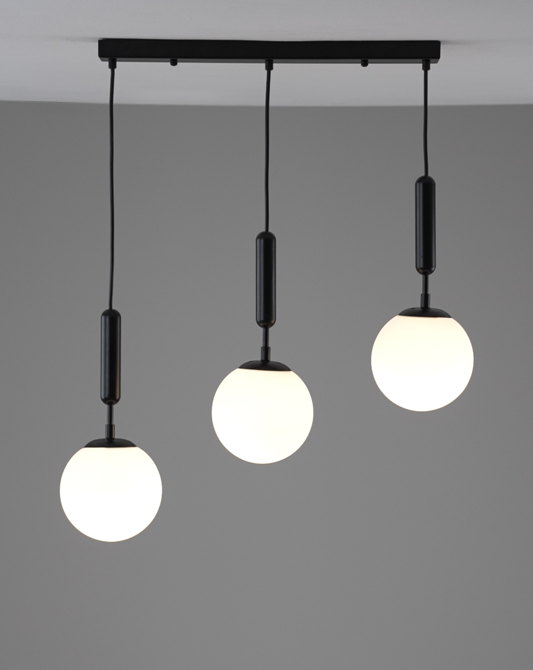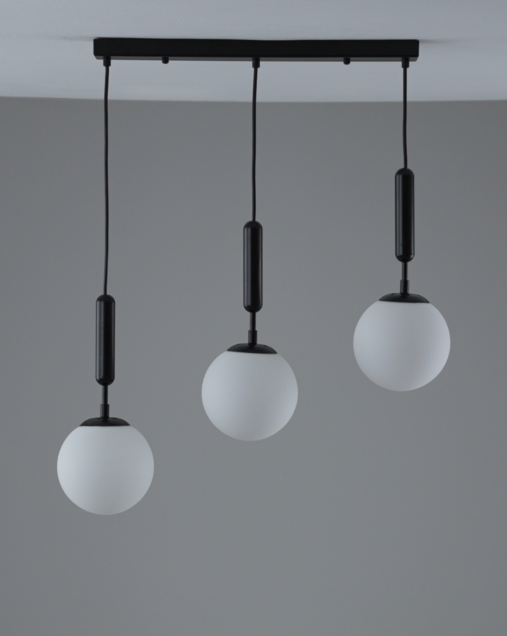 Запросить индивидуальное предложениеПодвесной светильник из коллекции Scrumbel. Металлический каркас черного цвета гармонично сочетается с матовыми плафонами в форме шара. Высота светильника 120 см., отличное решение для высоких потолков. Площадь освещения составляет 9 м². Данная модель сможет дополнить любой современный интерьер дома и подойдёт для освещения спальни, кухни, холла или гостиной комнаты. При монтаже светильника, плафоны можно отрегулировать по высоте.