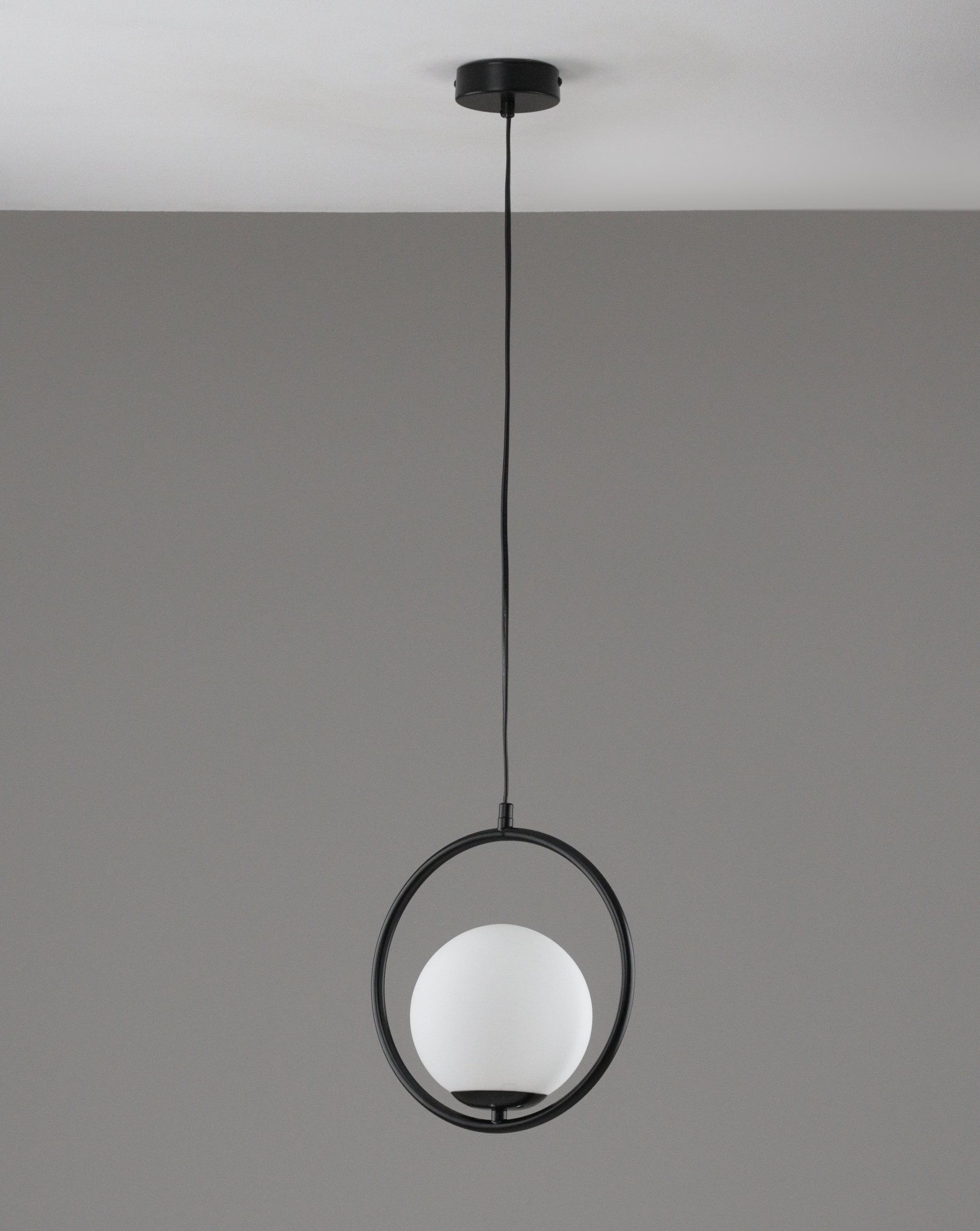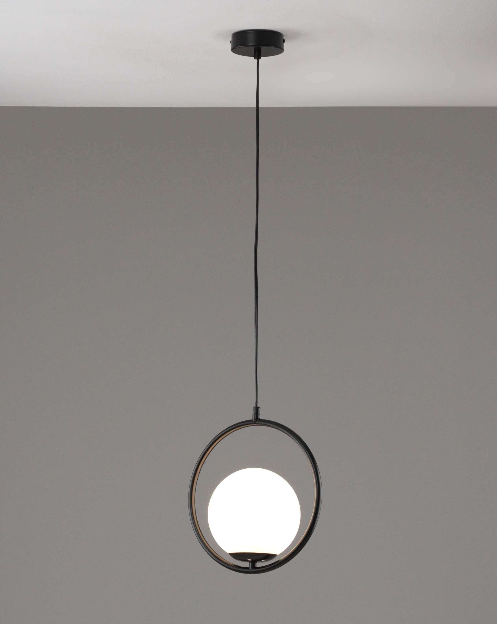 Каркас выполнен из металла в простом и лаконичном стиле, гармонично сочетается со сферичным плафоном. Конструкция надежно крепится к потолку на планку.