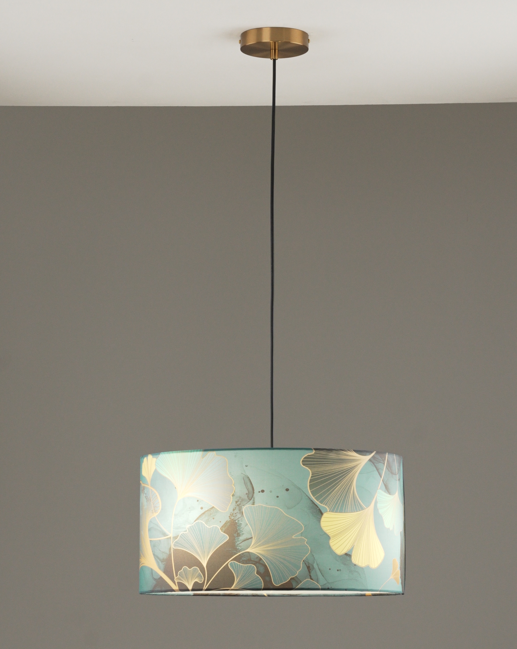 Эстетика и функциональность Светильник из коллекции Gingko от итальянского бренда Moderli — это не просто источник света, а декоративный элемент, который преобразит любой интерьер. Плафон цилиндрической формы изготовлен из прочной ткани с авторским принтом в виде листьев гинкго на синем фоне. Эффектный рисунок в сочетании с золотистыми деталями придаёт модели изысканный вид, идеально вписывающийся в дизайнерские пространства.