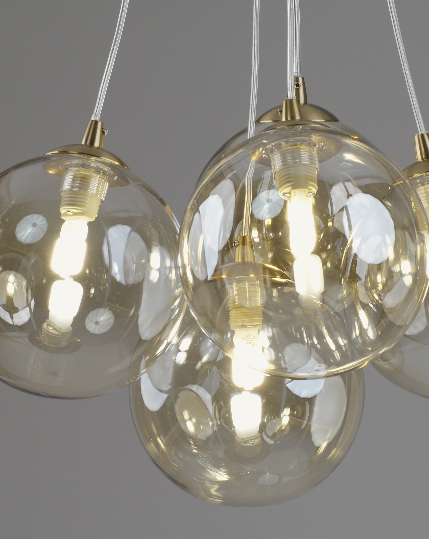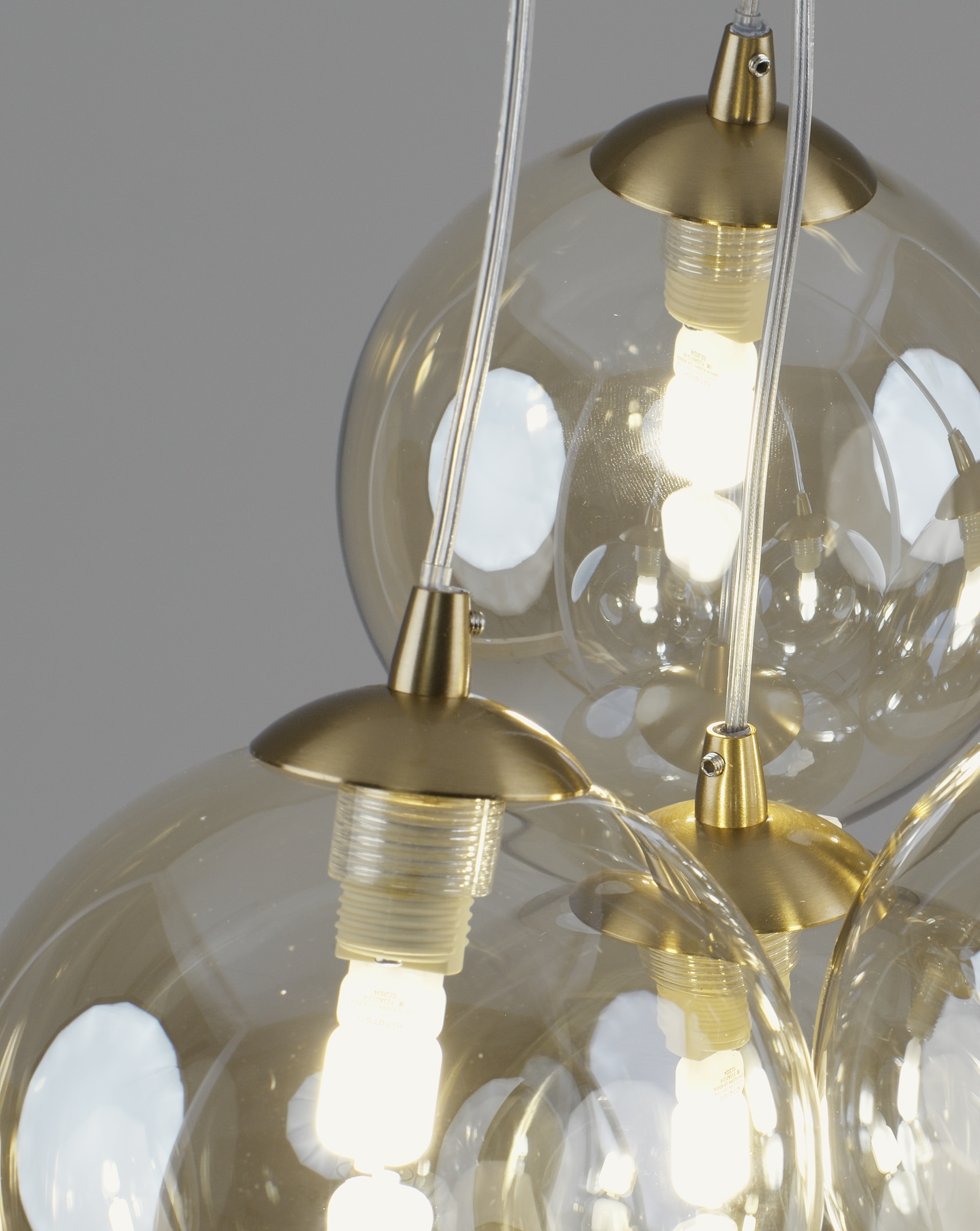 Корпус выполнен из металла с глянцевым золотым покрытием, которое придаёт конструкции благородный блеск и акцентирует внимание на дизайнерском замысле. Прозрачные стеклянные плафоны делают свет мягким, равномерным и уютным. Светильник идеально вписывается в стиль модерн, минимализм или современную классику.