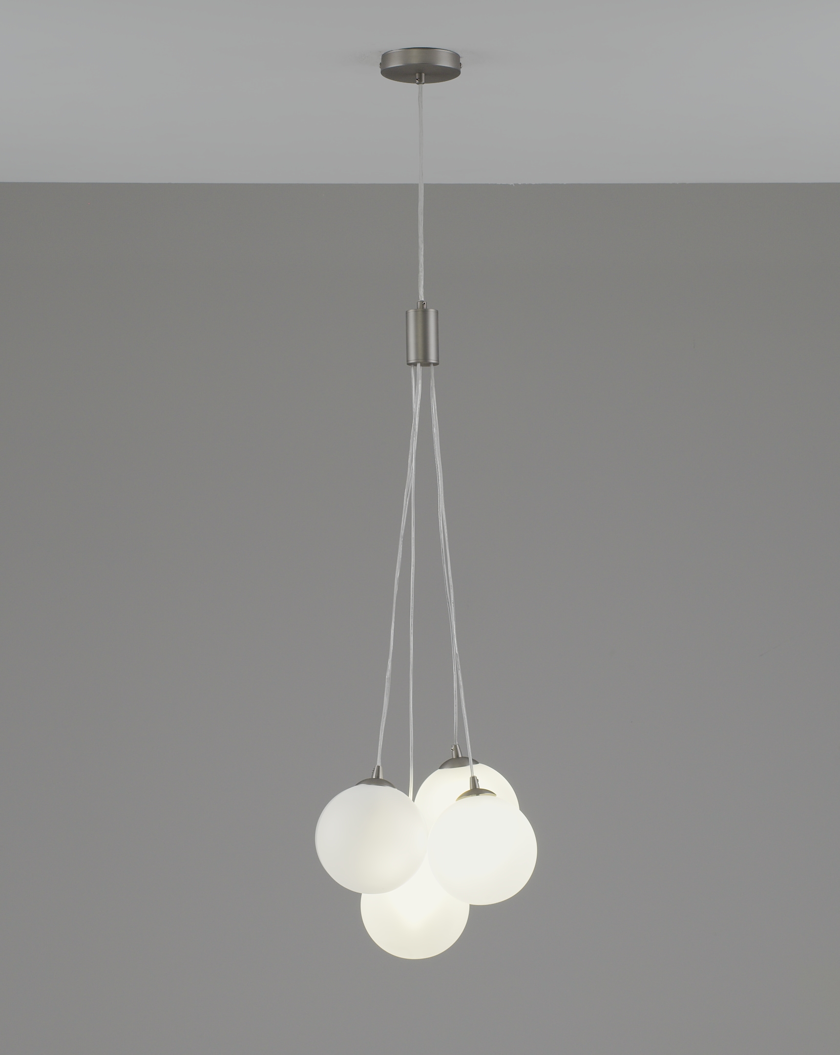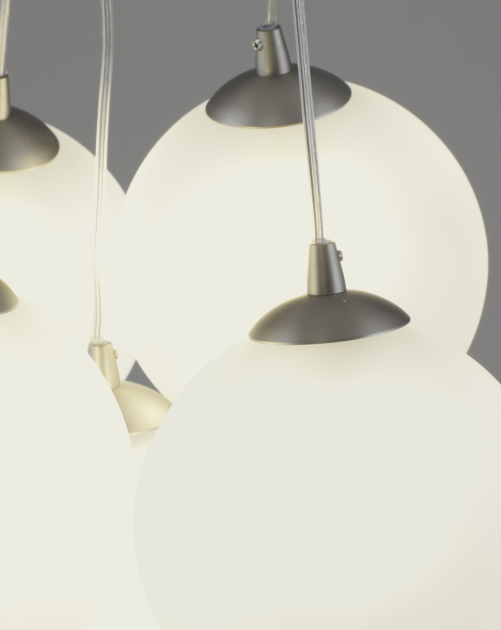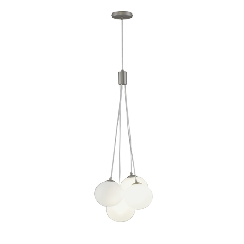 Основа выполнена из металла с матовым хромированным покрытием — устойчивым к царапинам и отпечаткам. Плафоны из матового стекла равномерно распределяют свет, делая освещение мягким и не слепящим.
